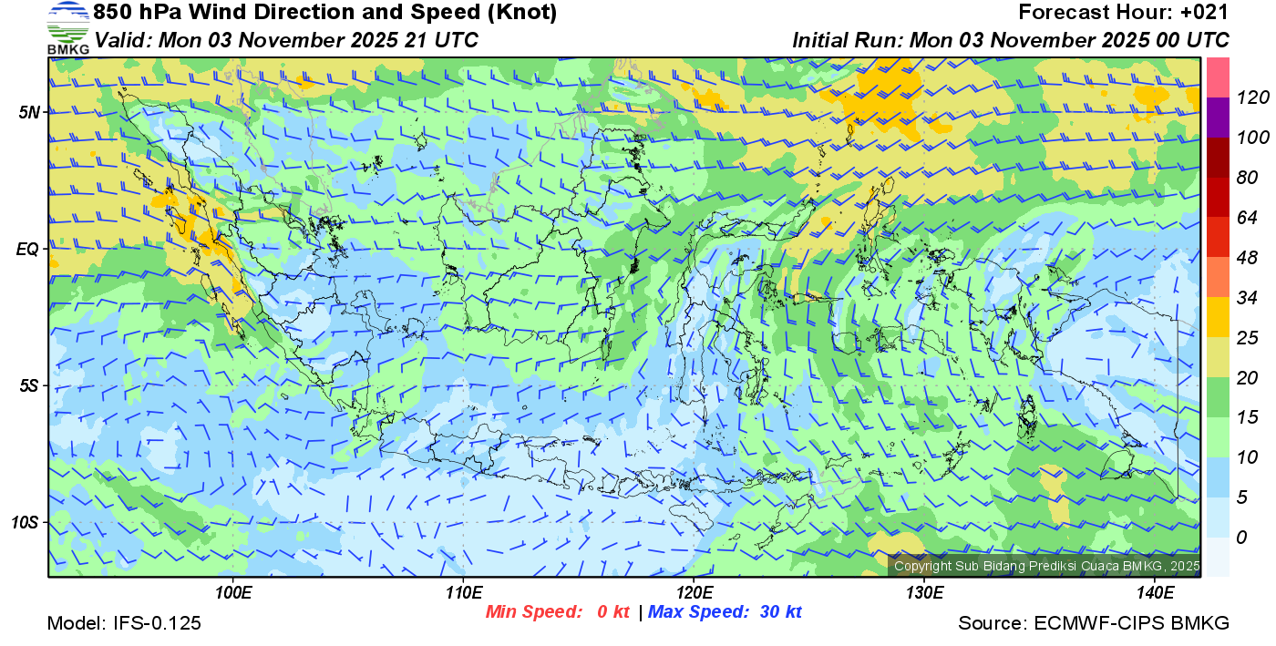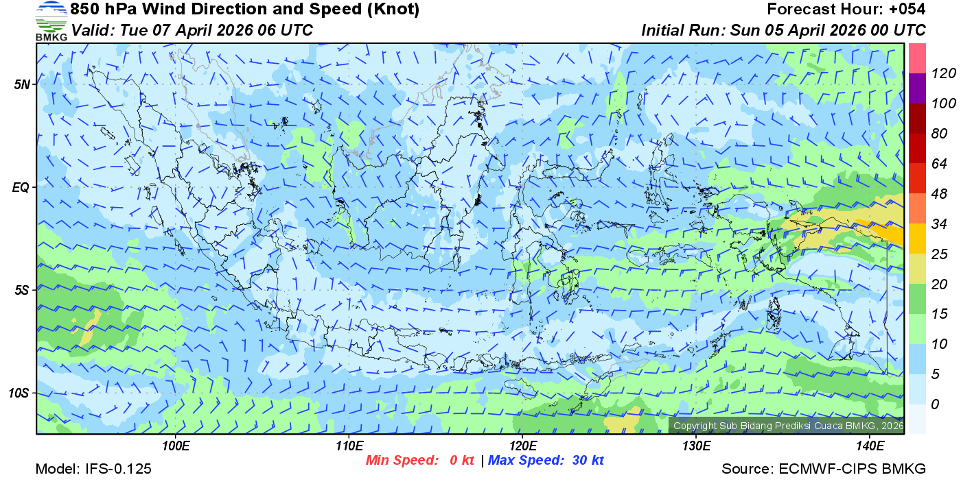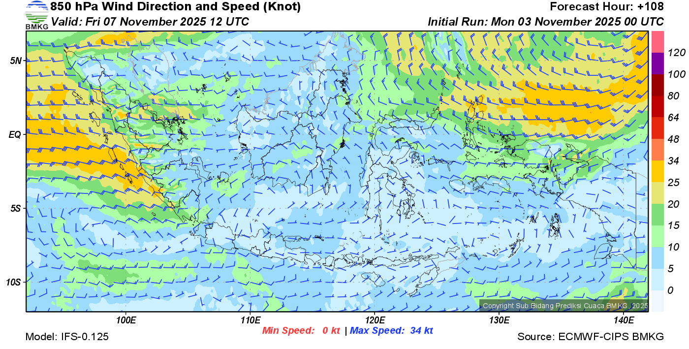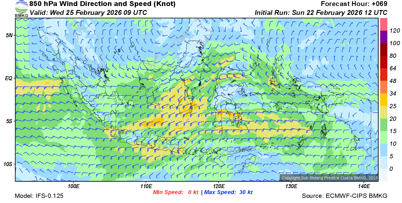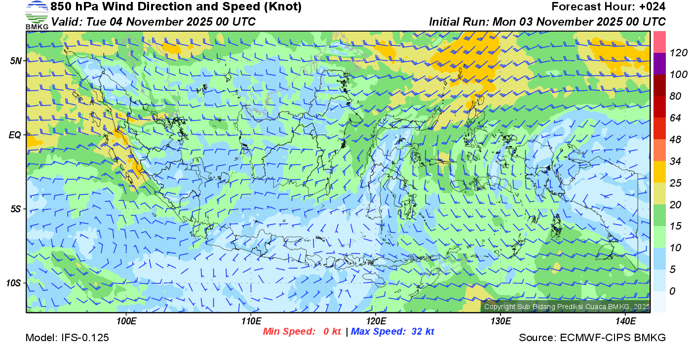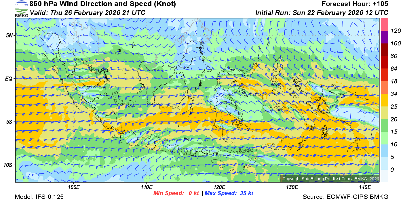 Prakiraan Angin Lapisan 850 Gunung Awu