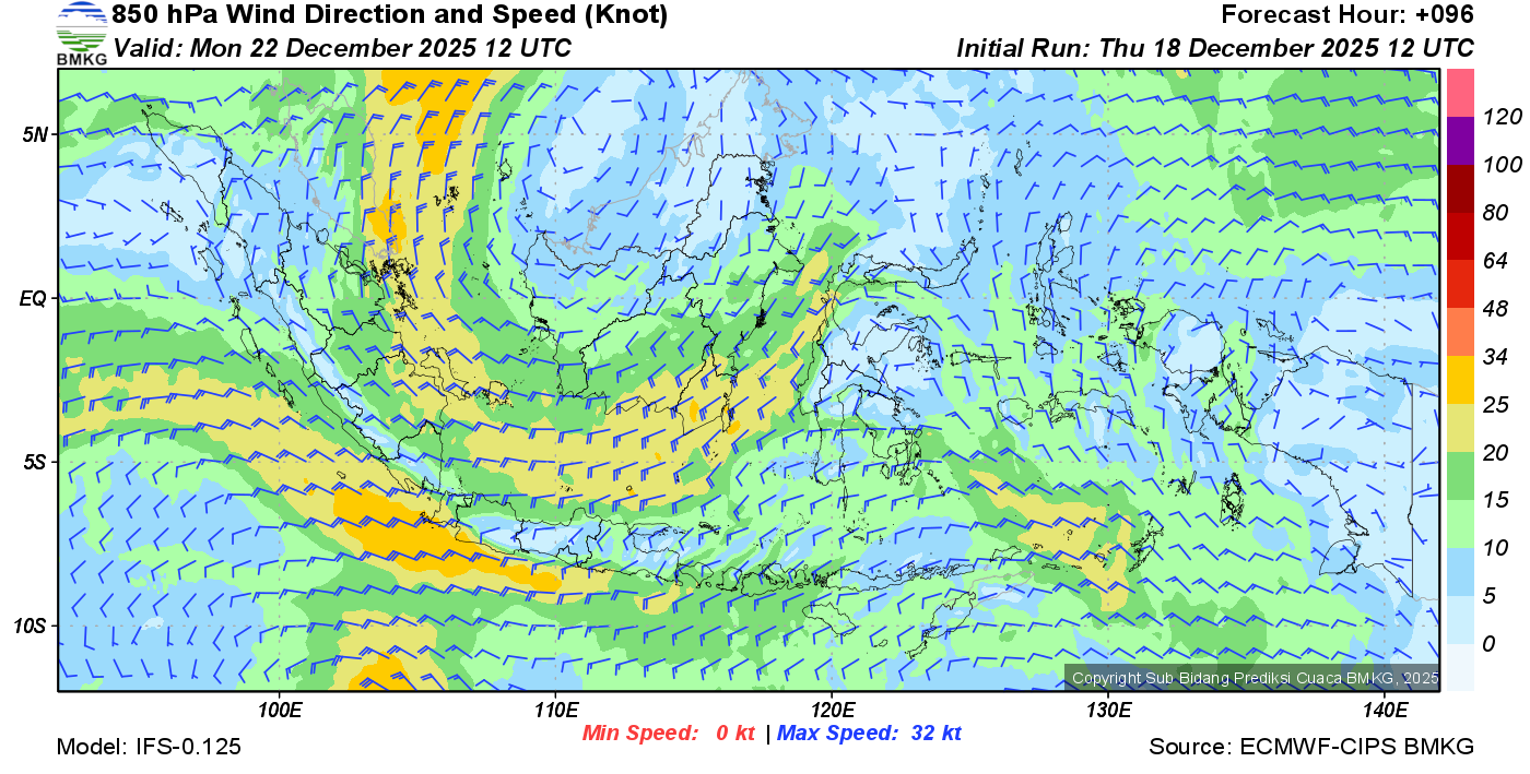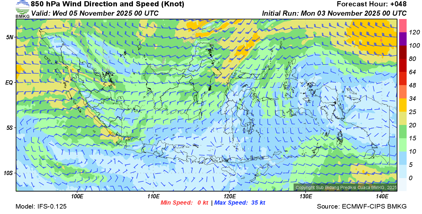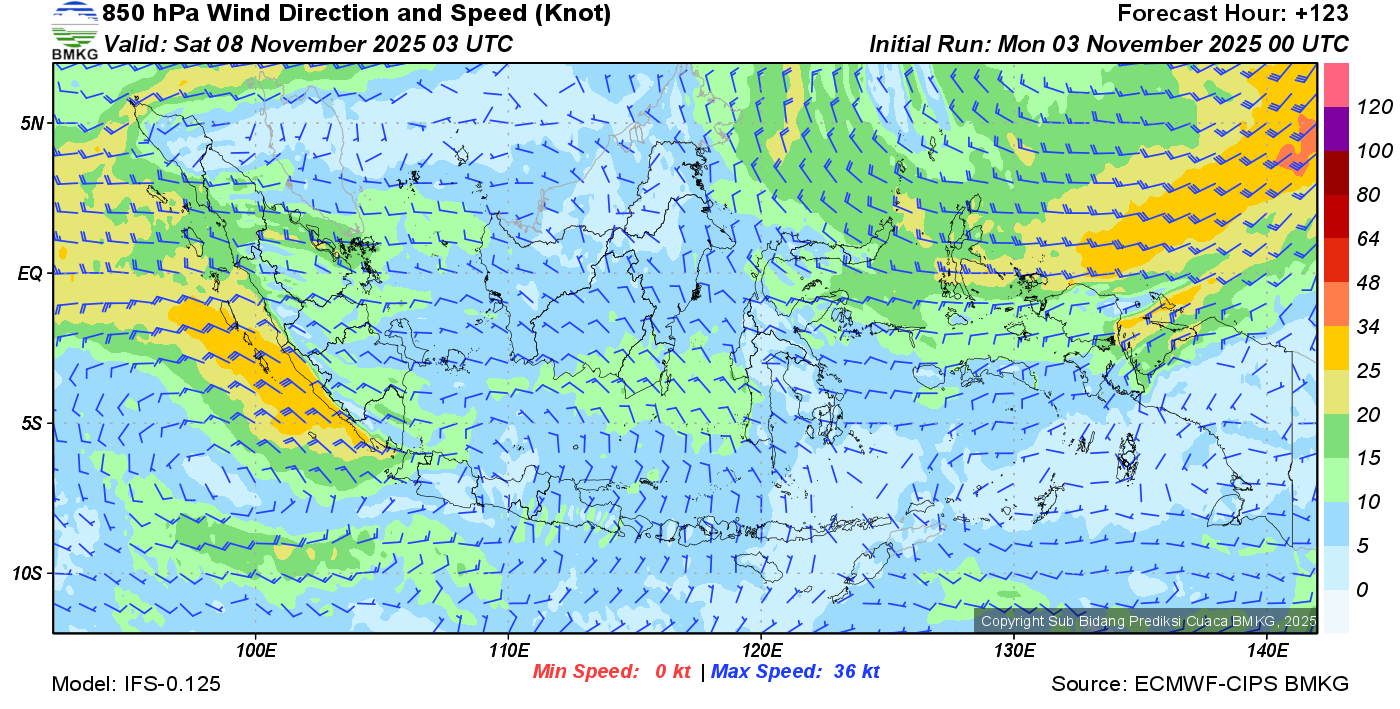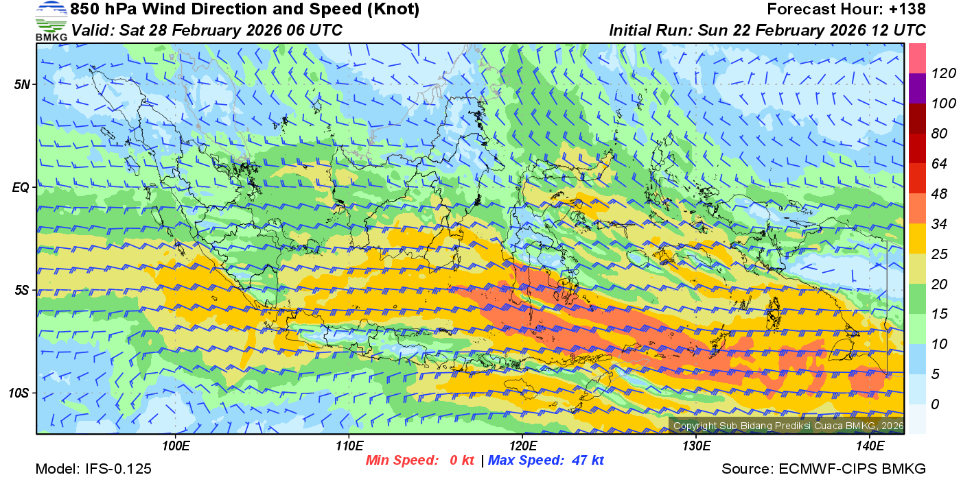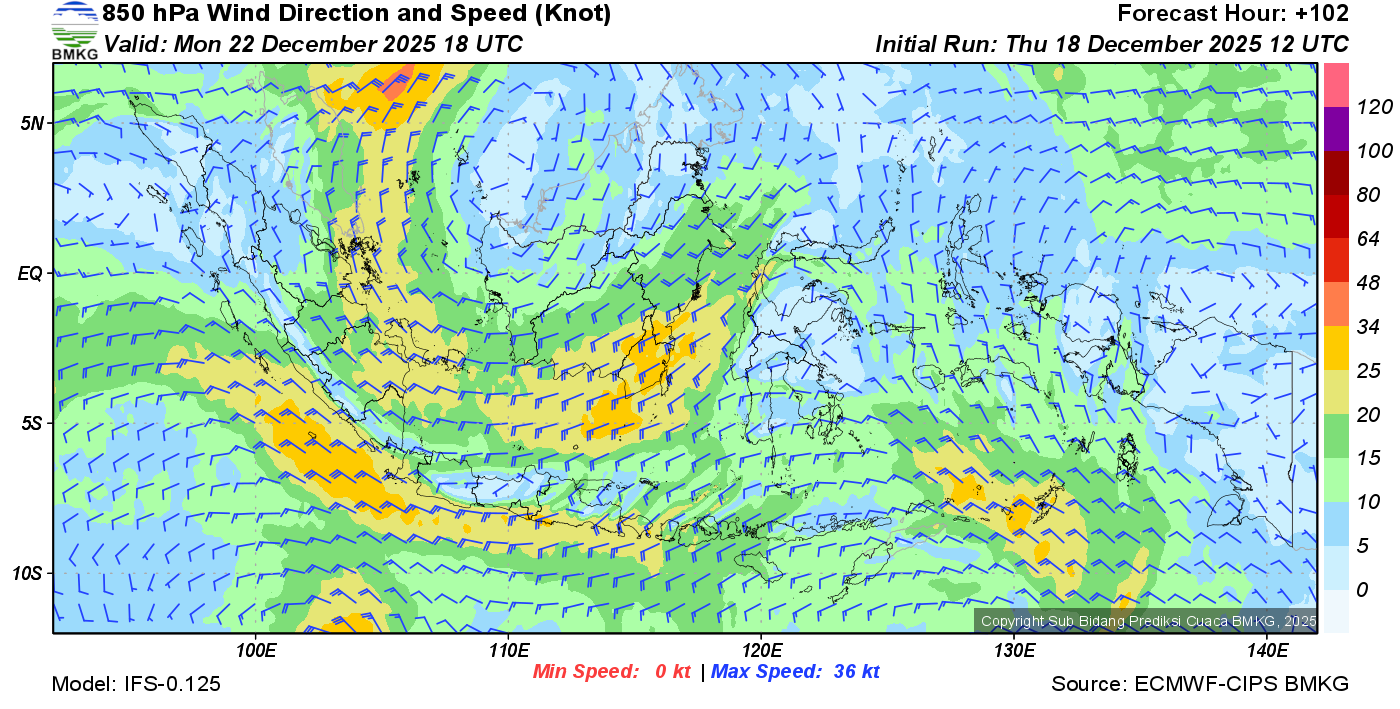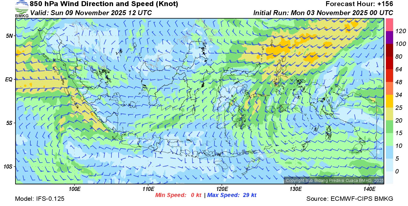 Prakiraan Angin Lapisan 850 Gunung Awu