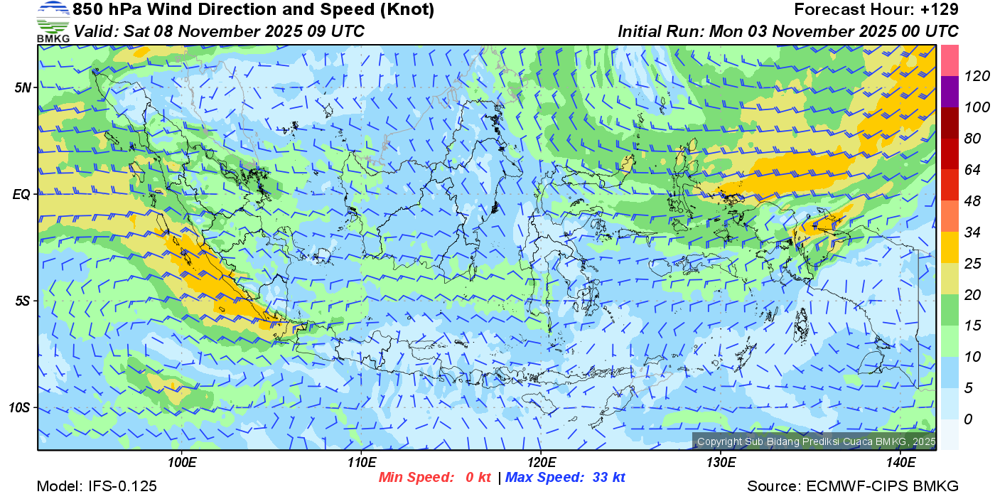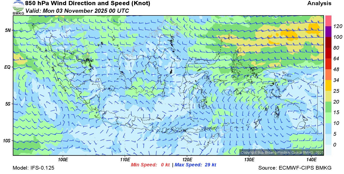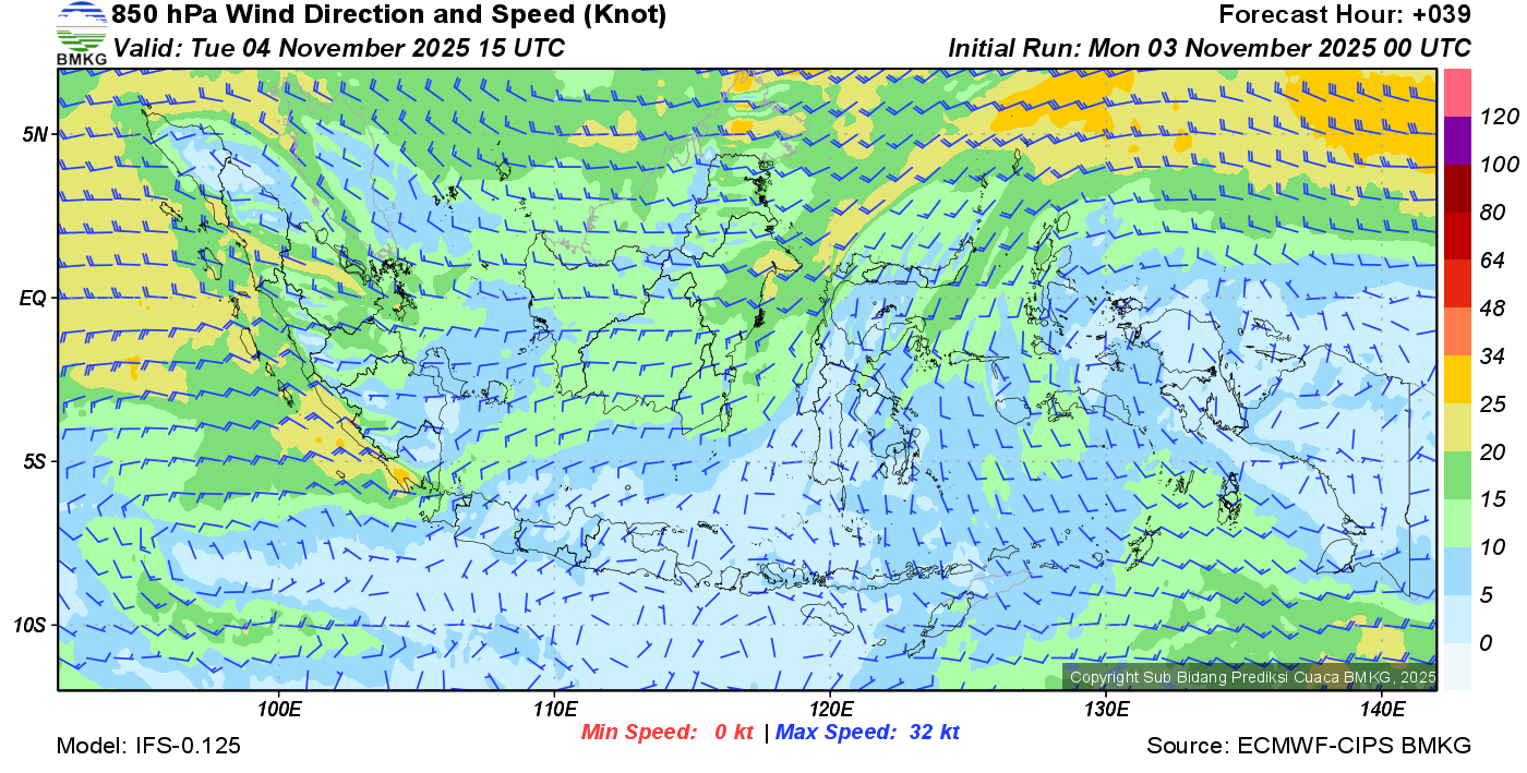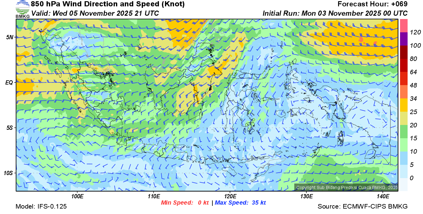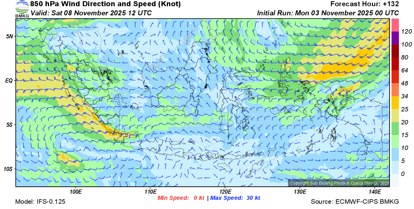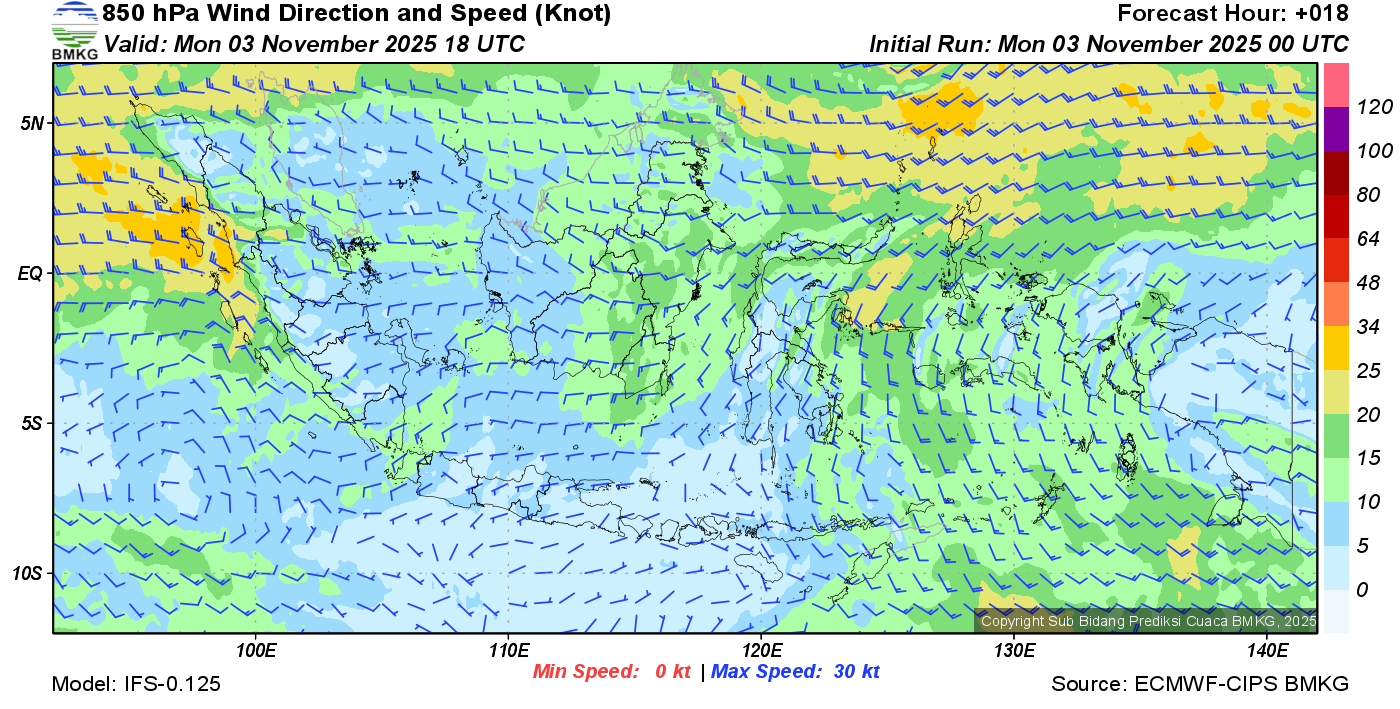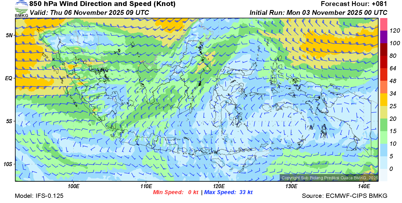 Prakiraan Angin Lapisan 850 Gunung Awu