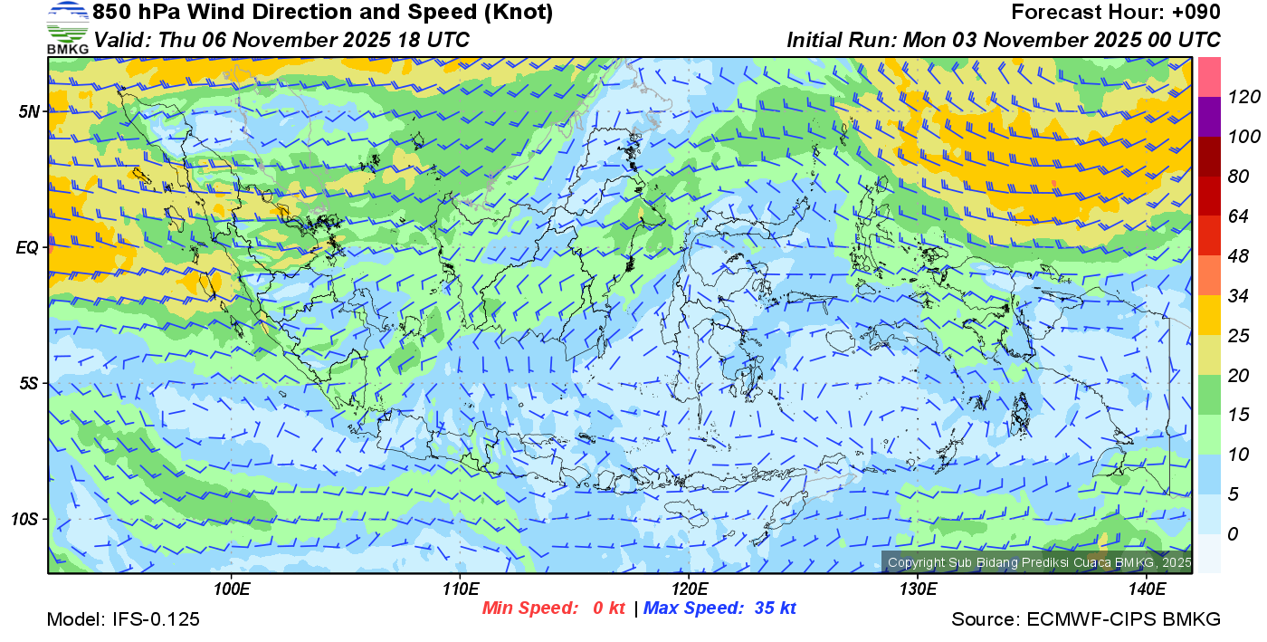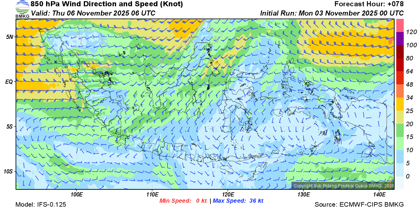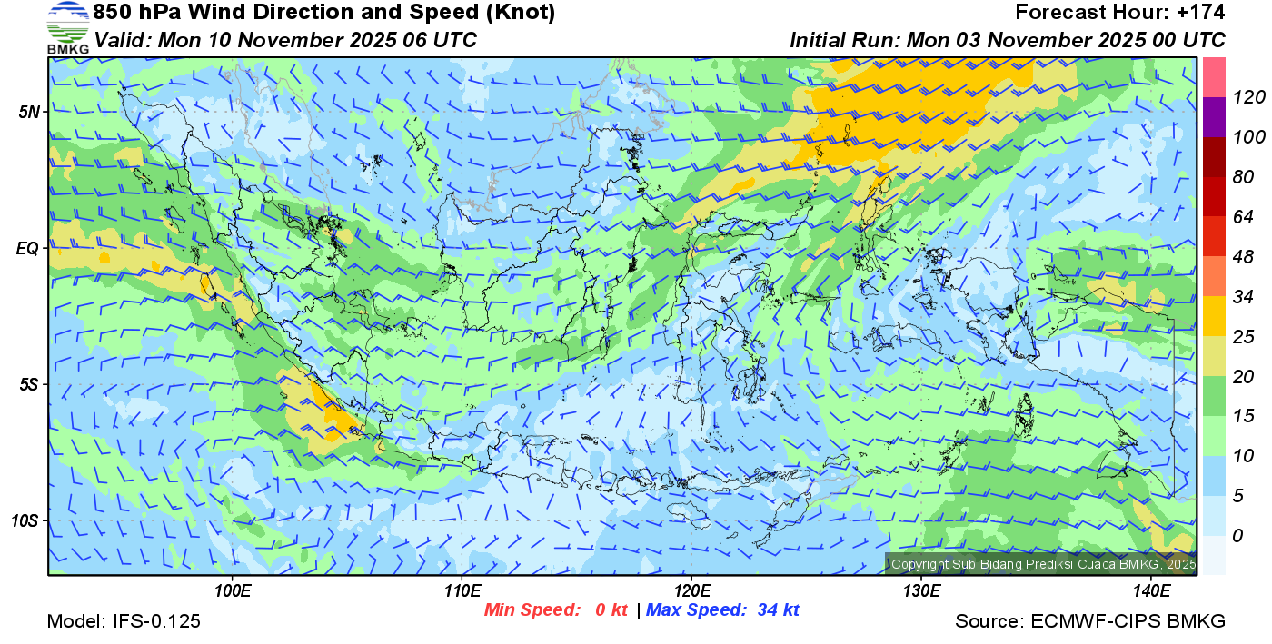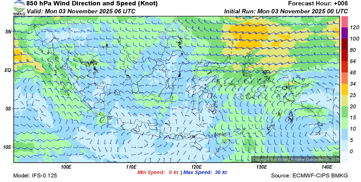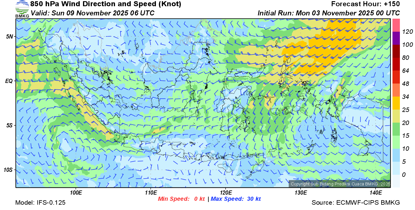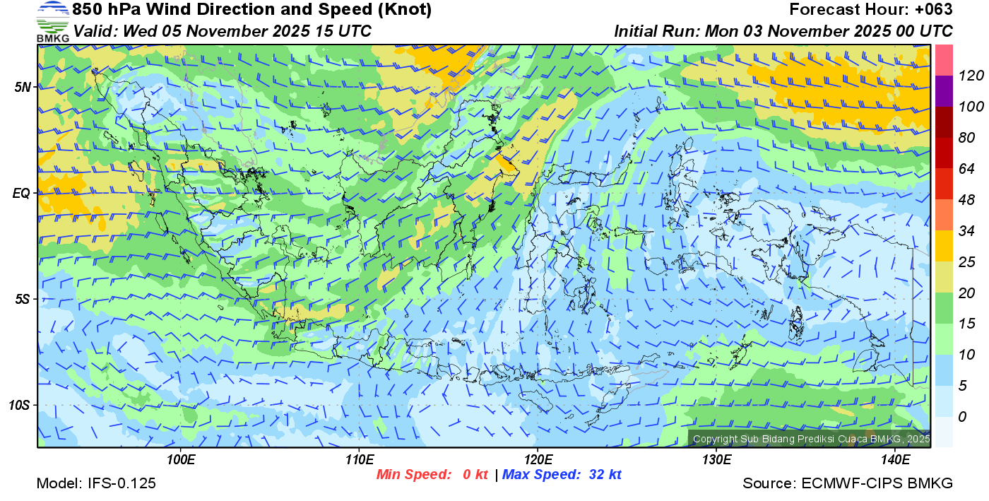 Prakiraan Angin Lapisan 850 Gunung Awu