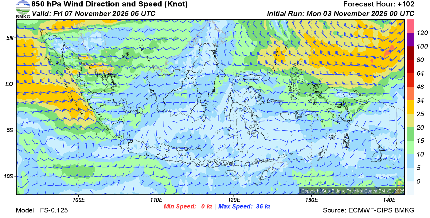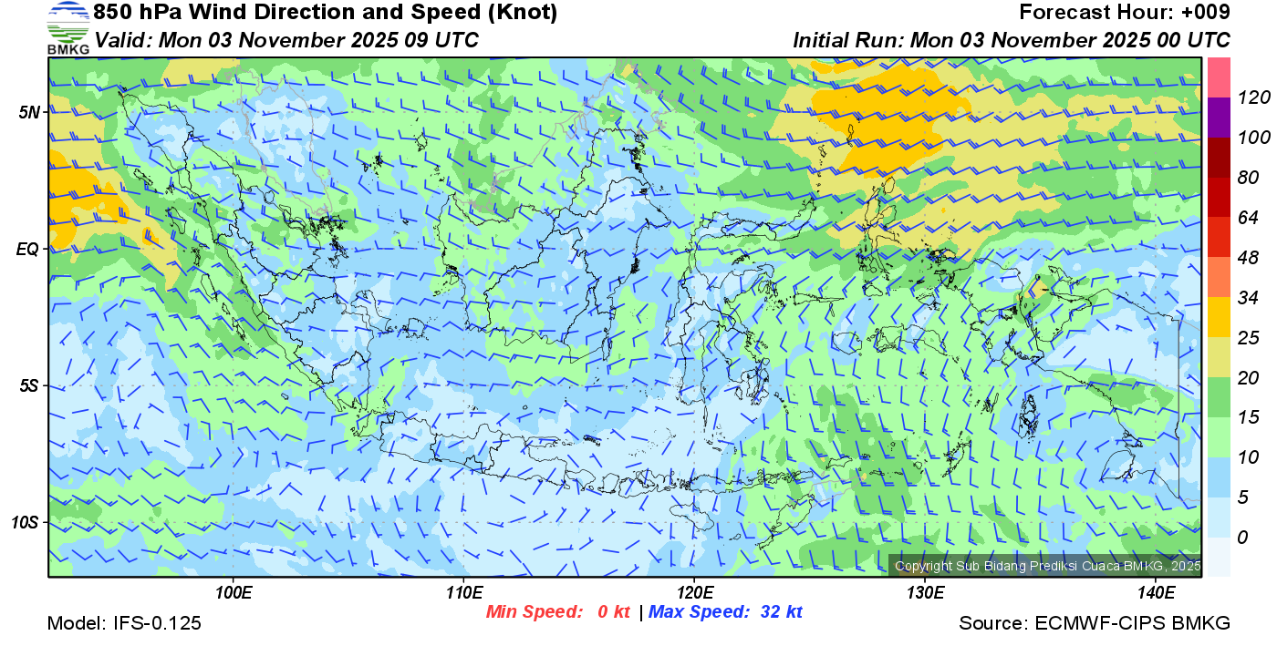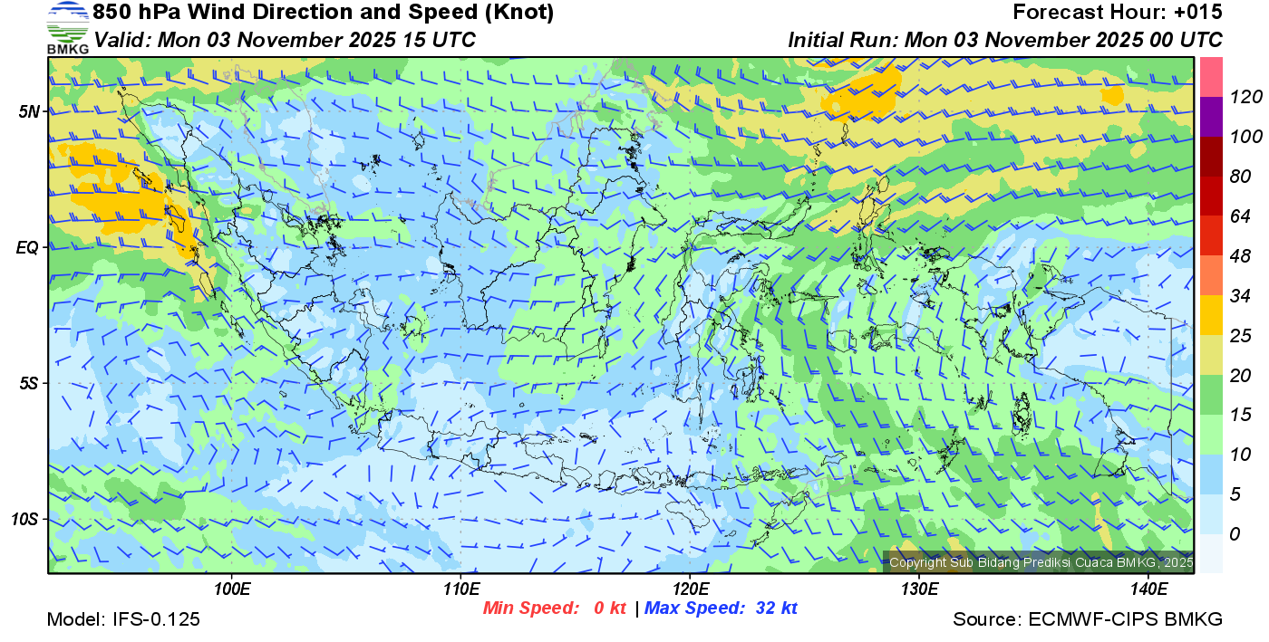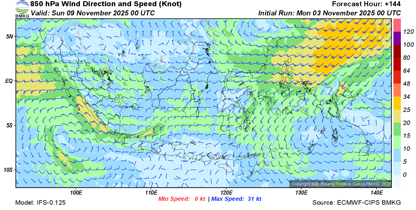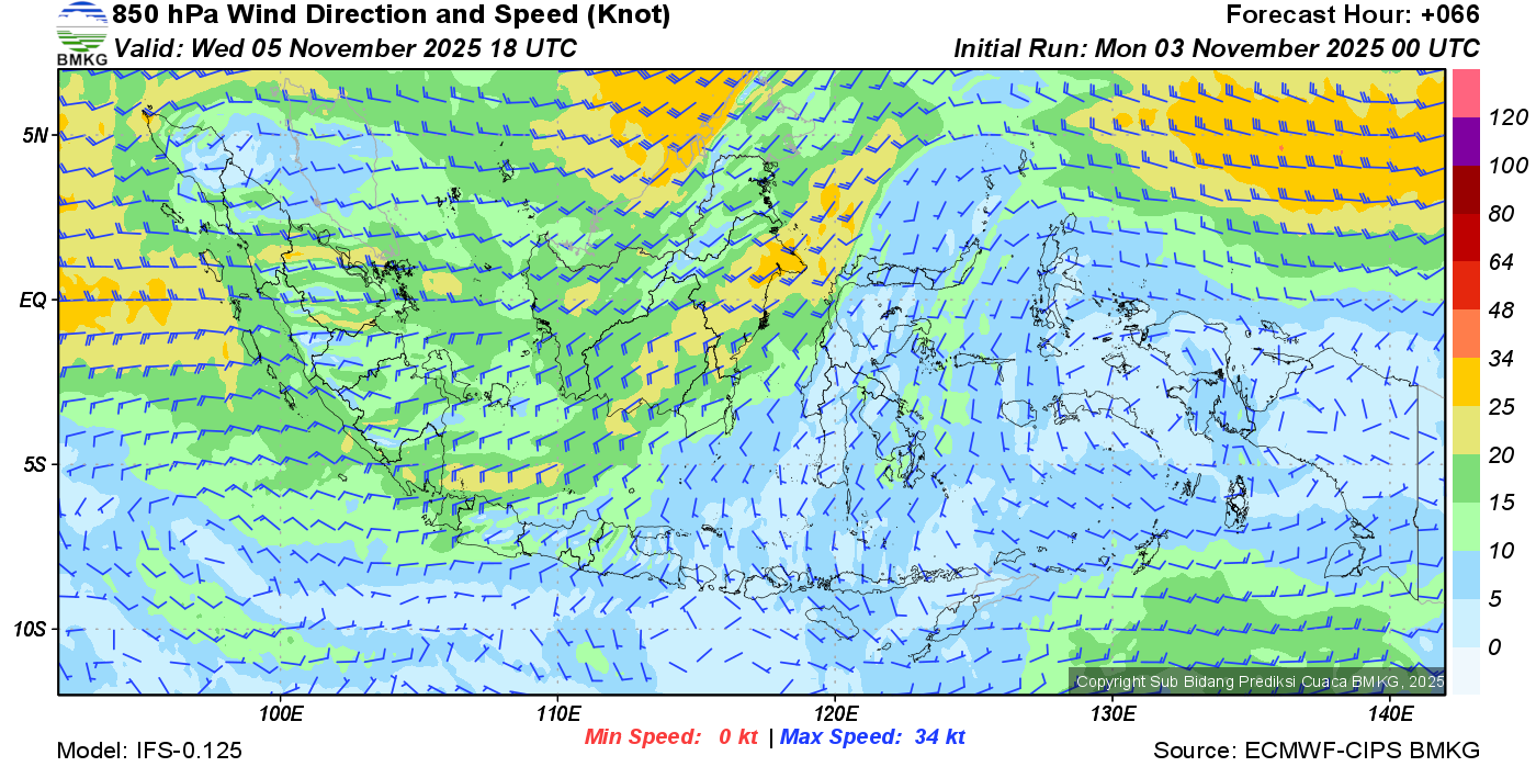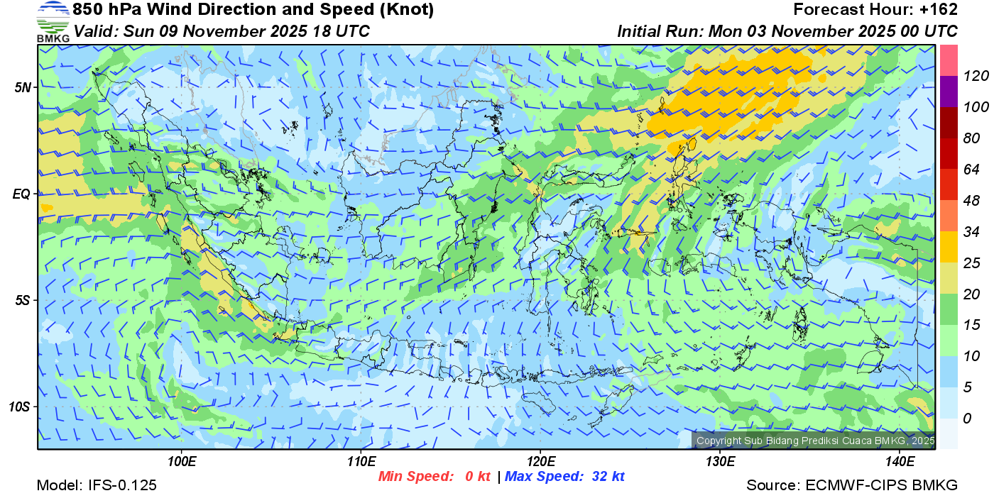 Prakiraan Angin Lapisan 850 Gunung Awu