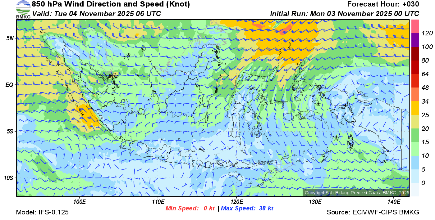Prakiraan Angin Lapisan 925 Gunung Awu