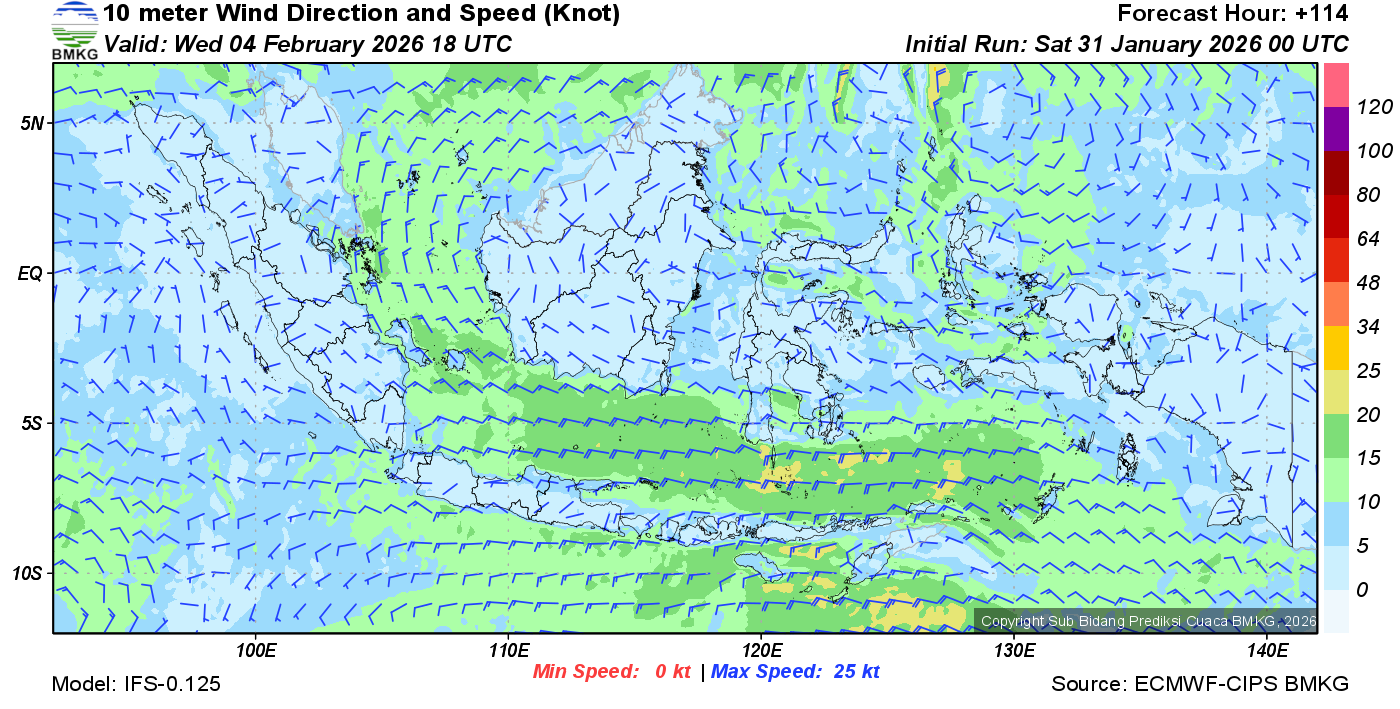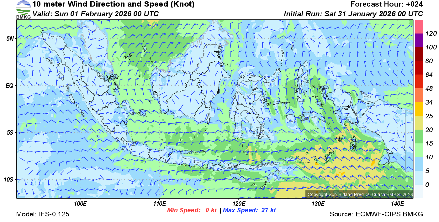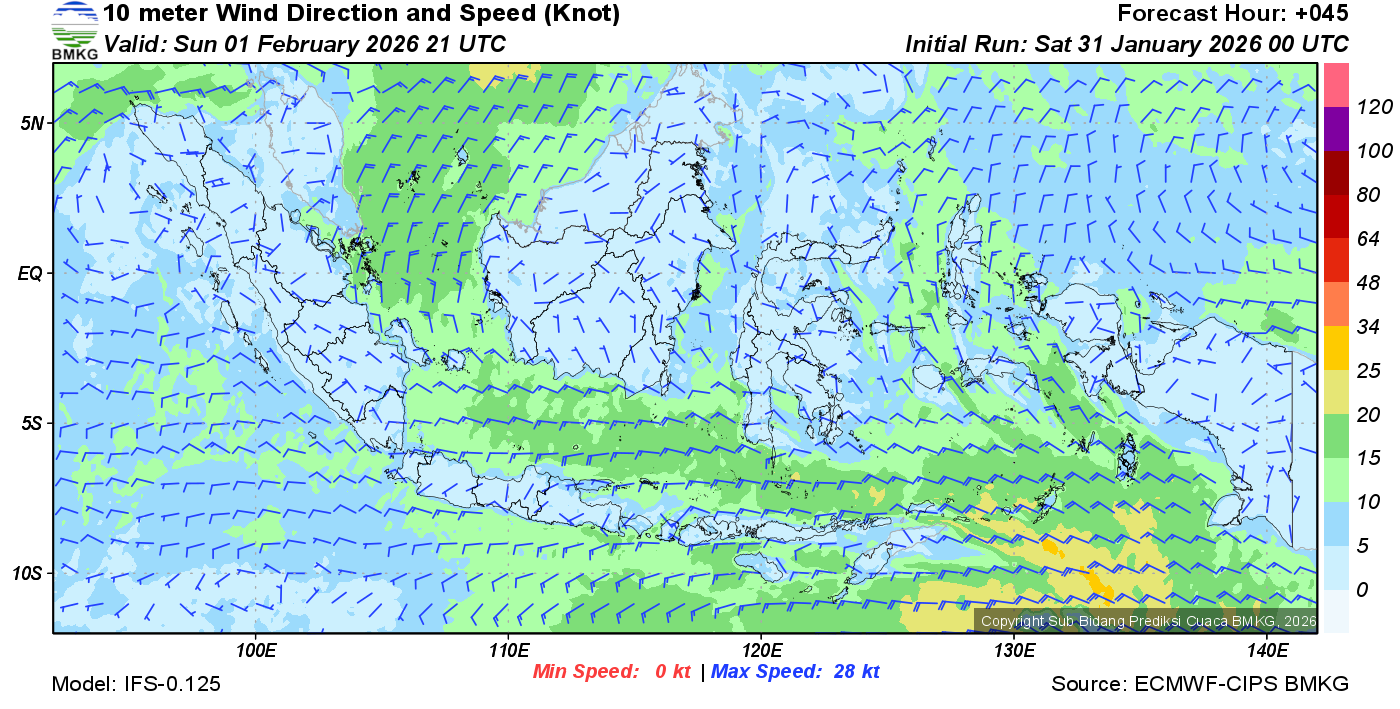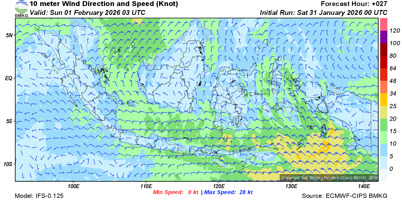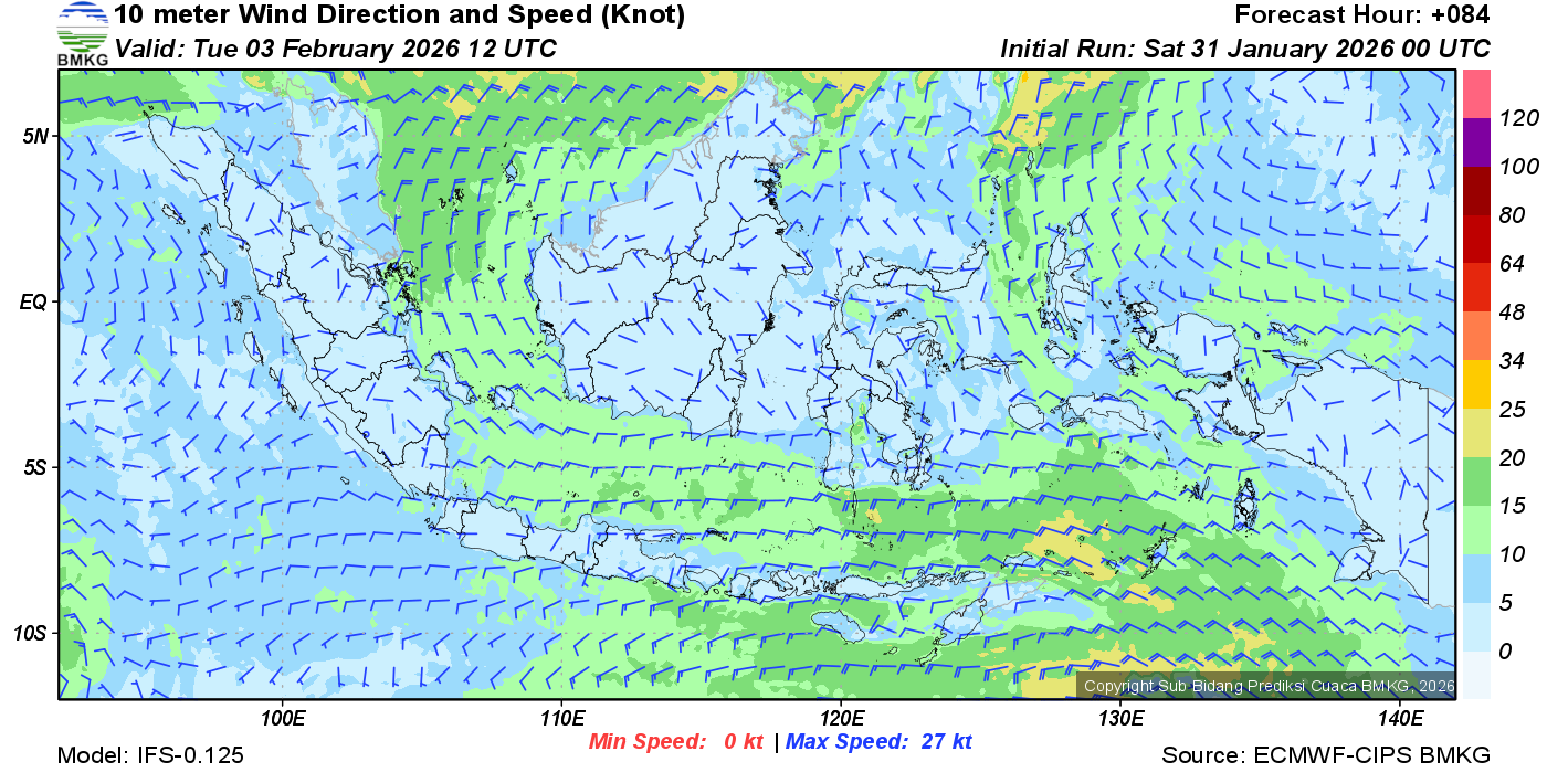 Prakiraan Angin Lapisan 10m Gunung Awu