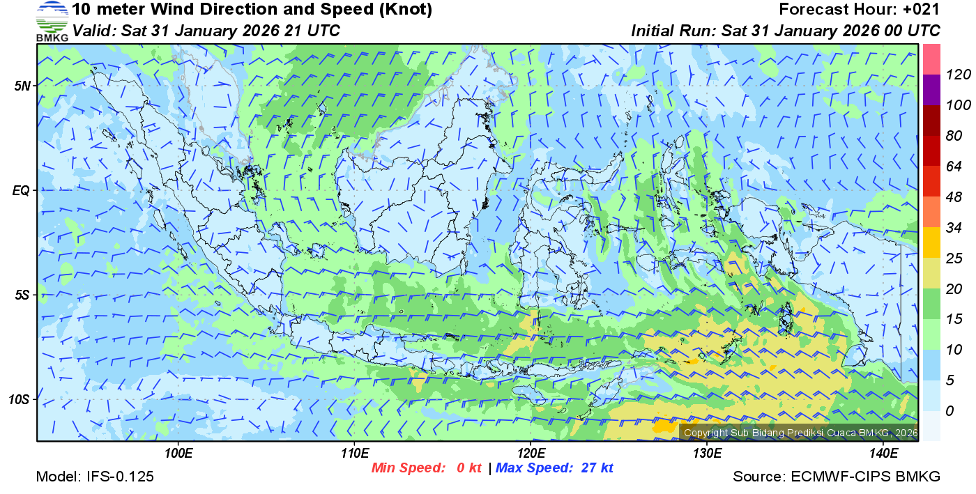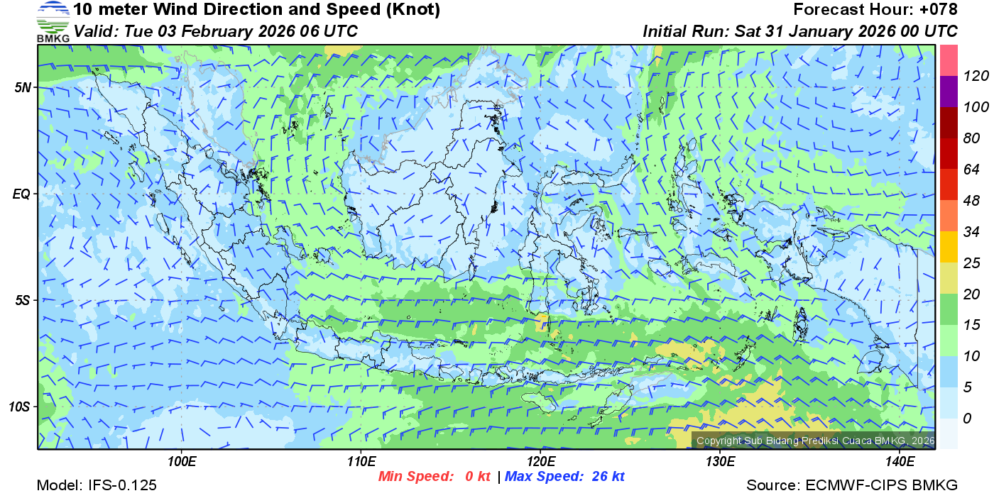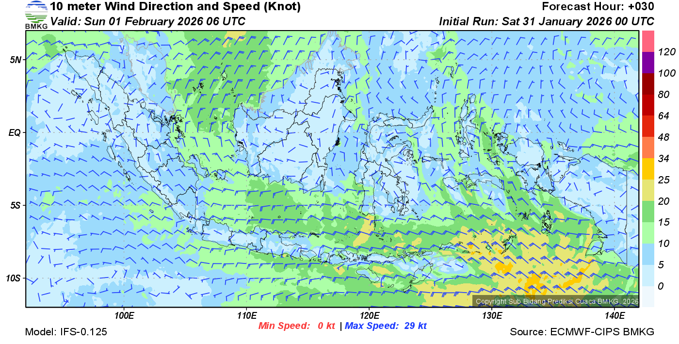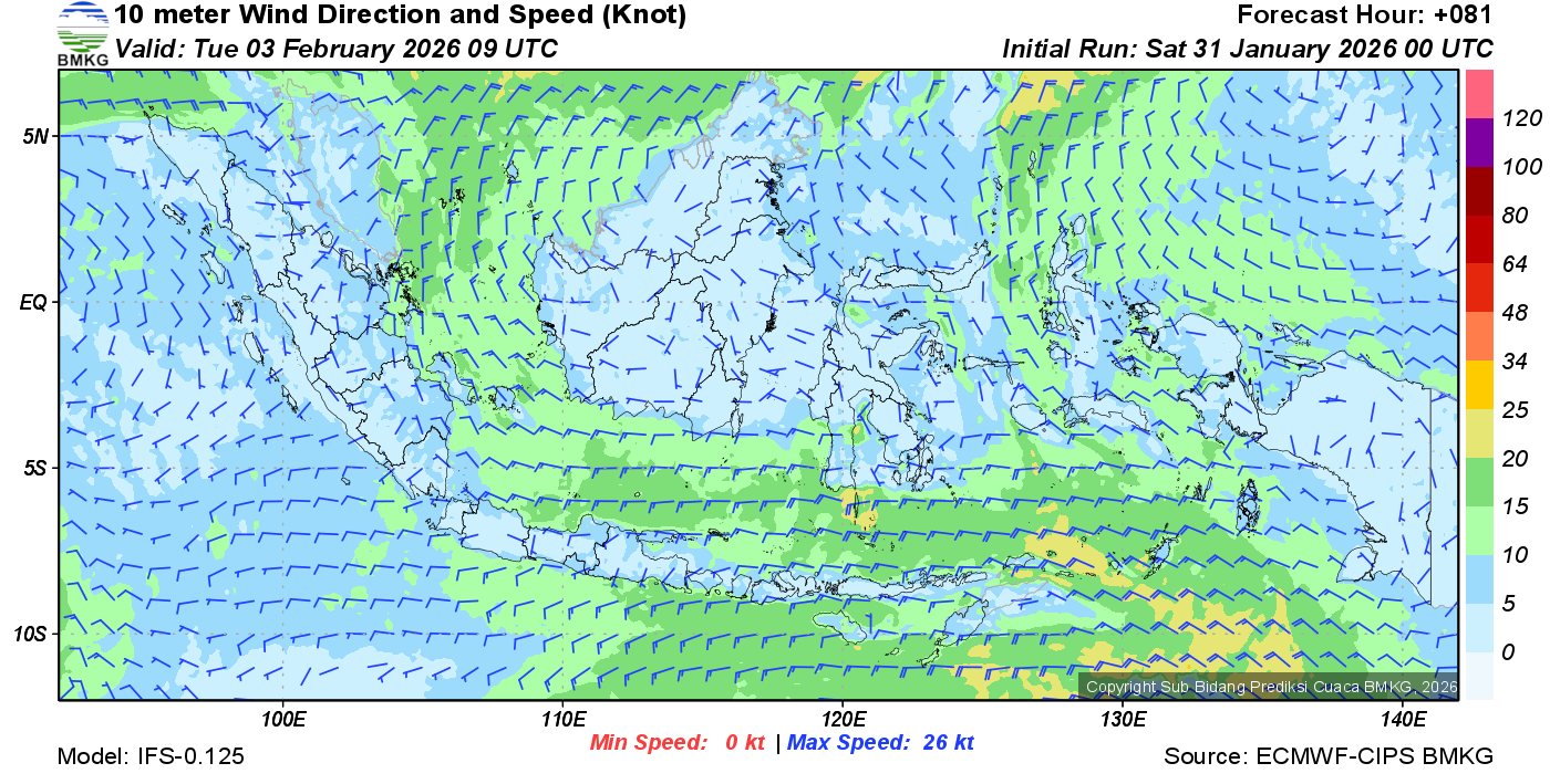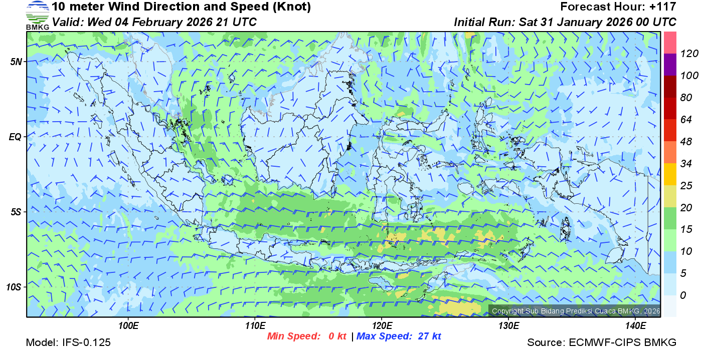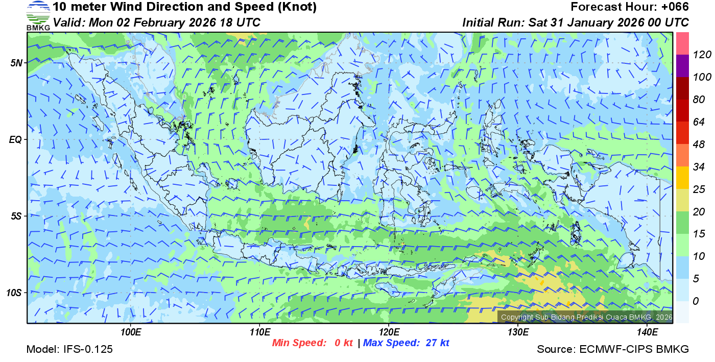 Prakiraan Angin Lapisan 10m Gunung Awu