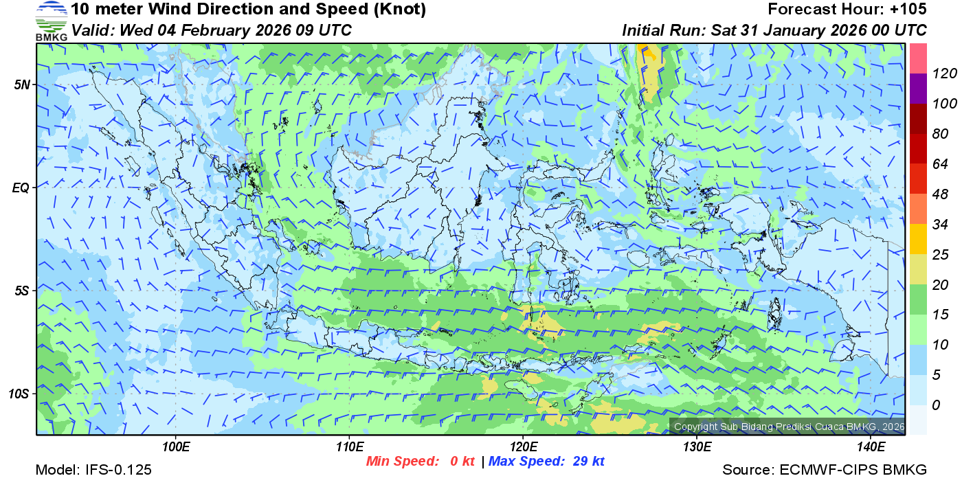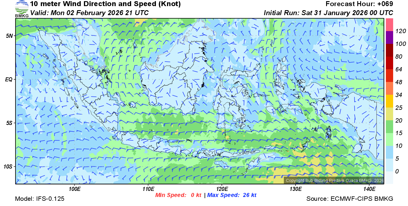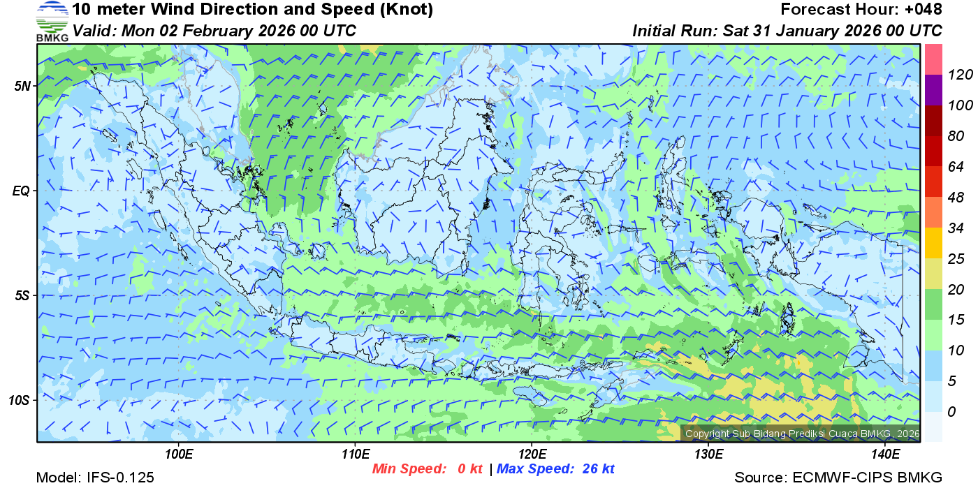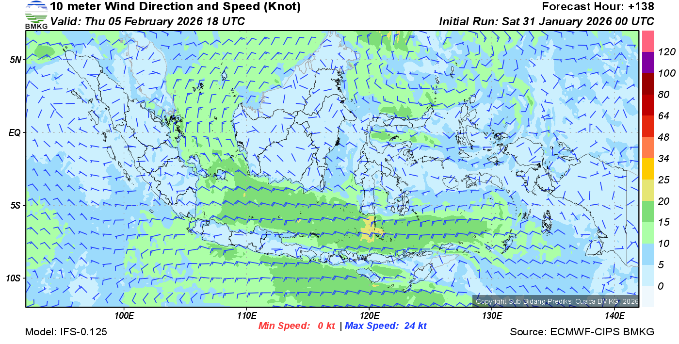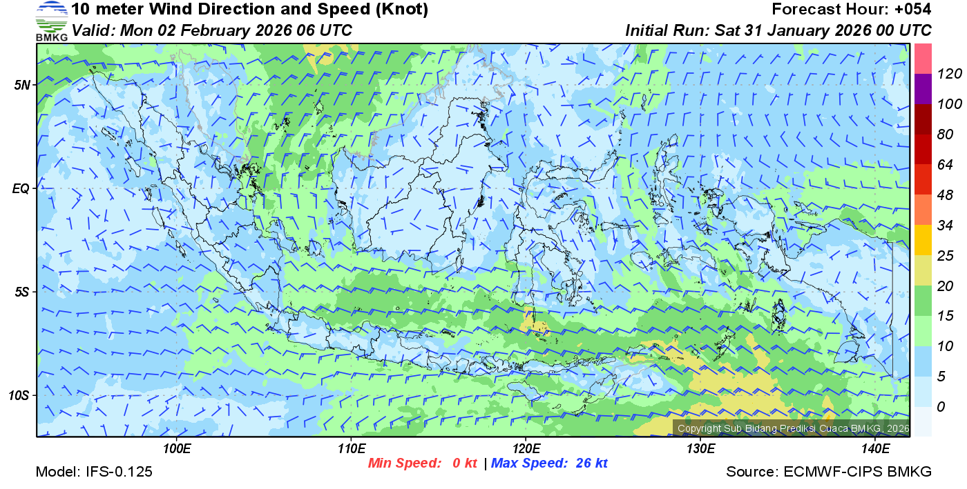 Prakiraan Angin Lapisan 10m Gunung Awu