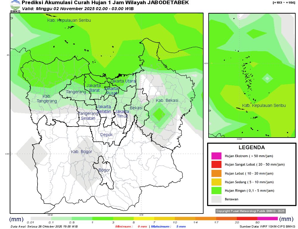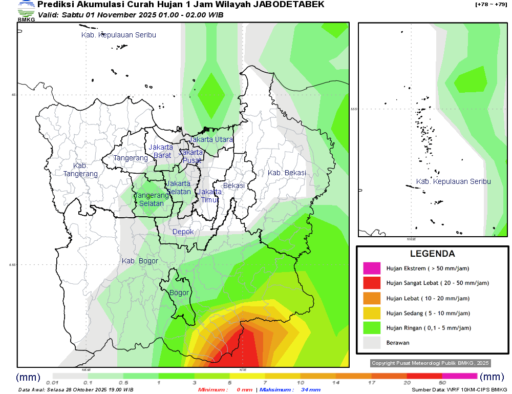 WRF Hourly Precipitation Rate Forecast Jakarta