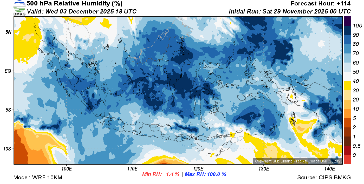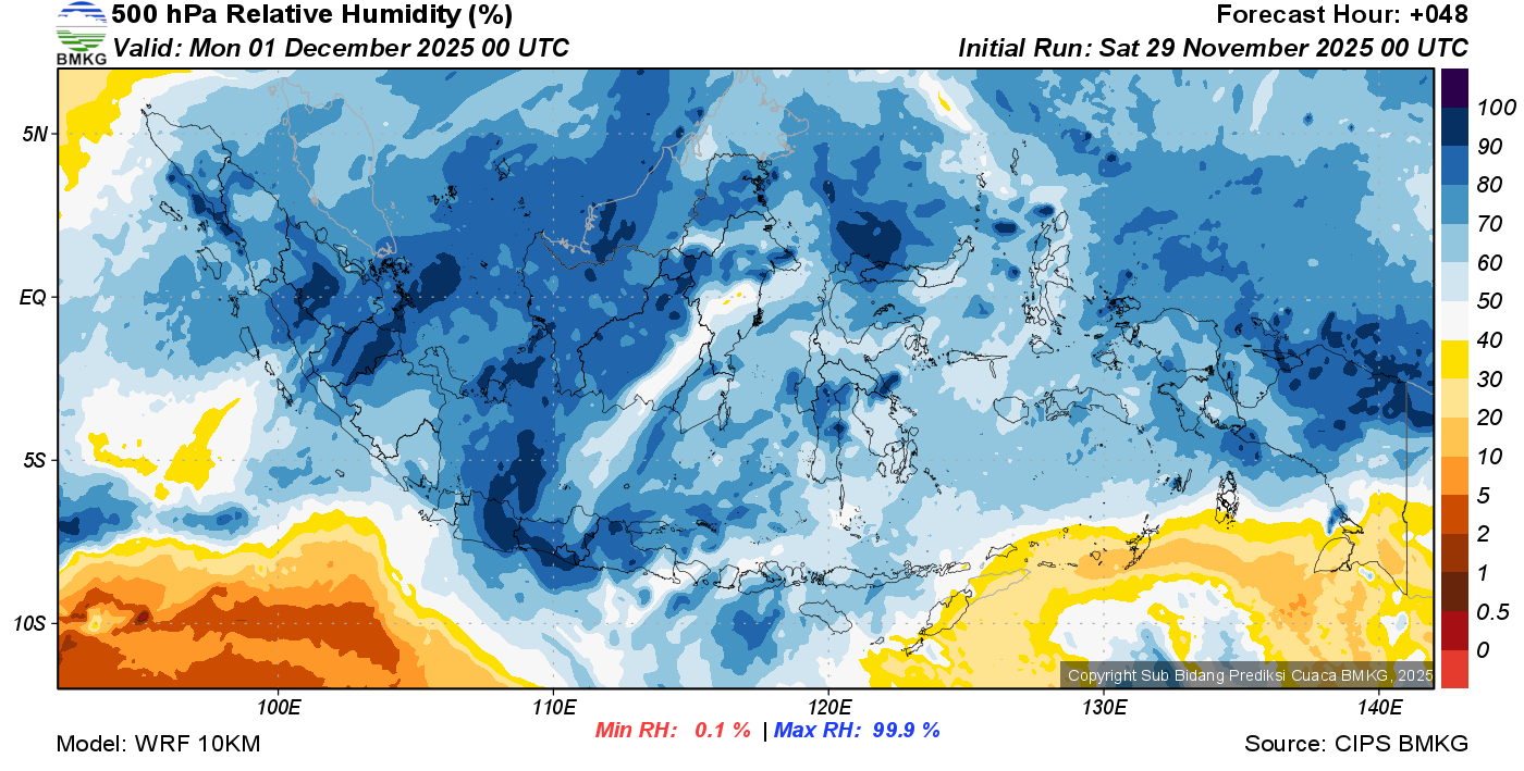 Prediksi Suhu Titik Embun 700 hPa NTT
