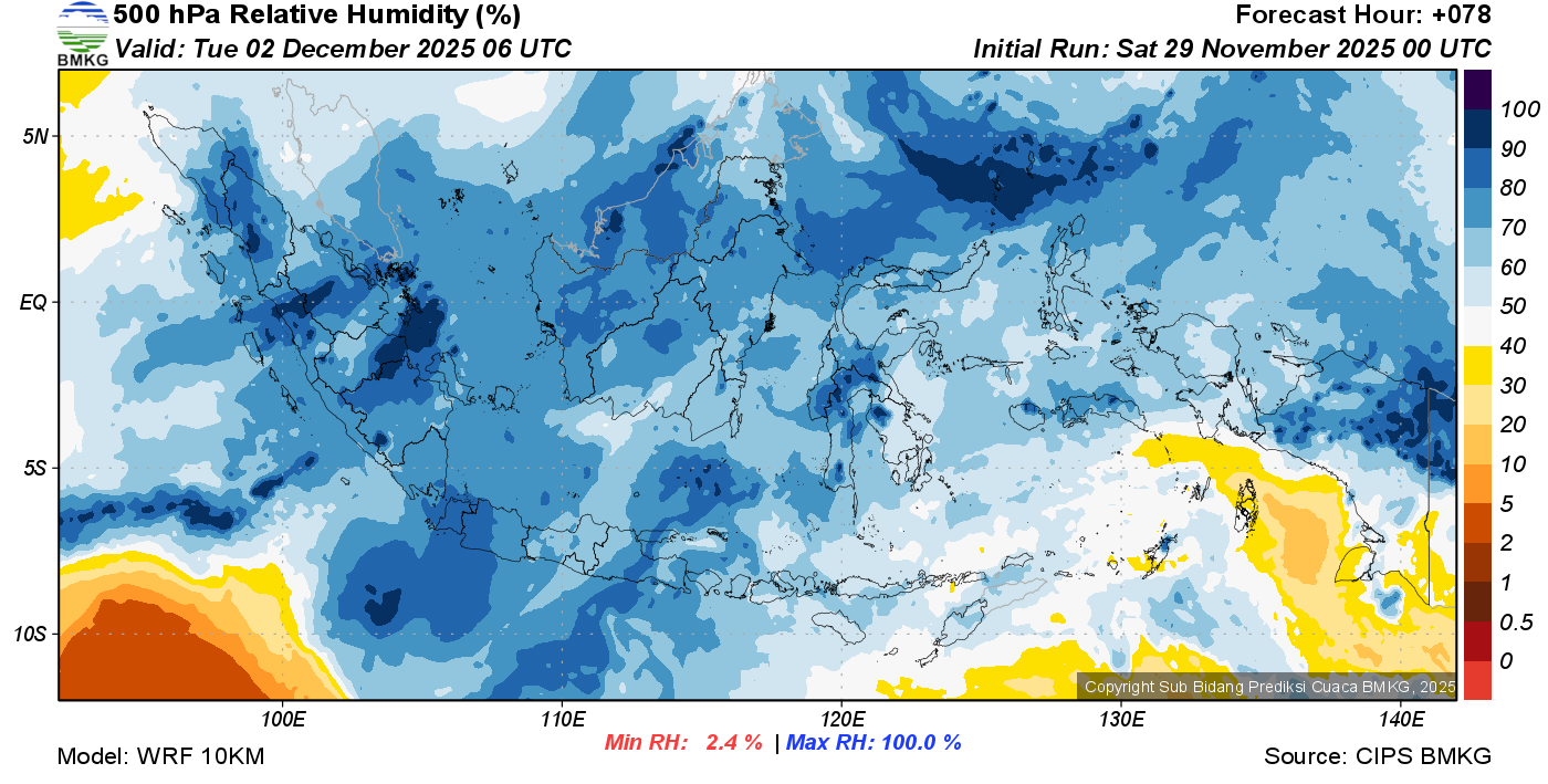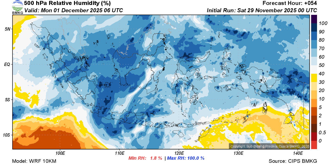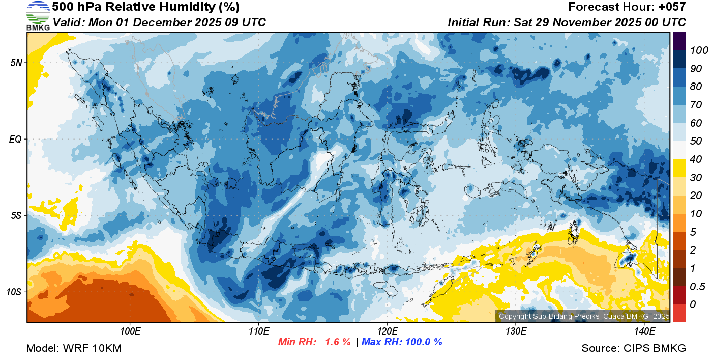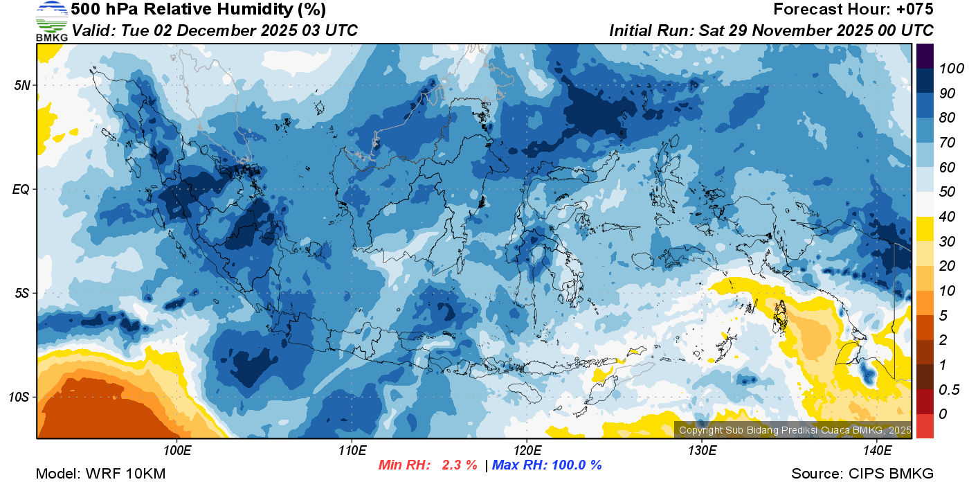 Prediksi Suhu Titik Embun 600 hPa NTT