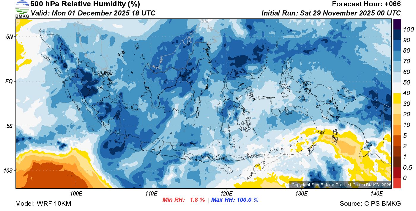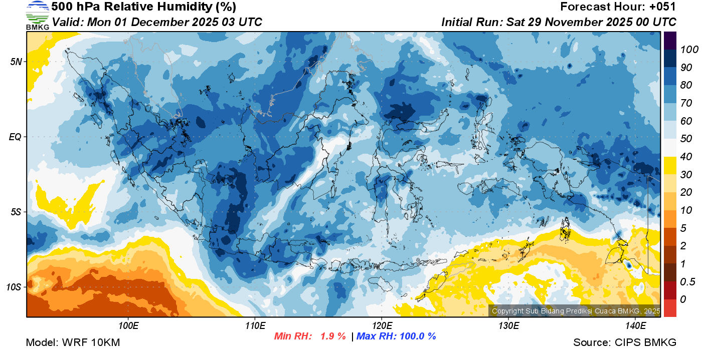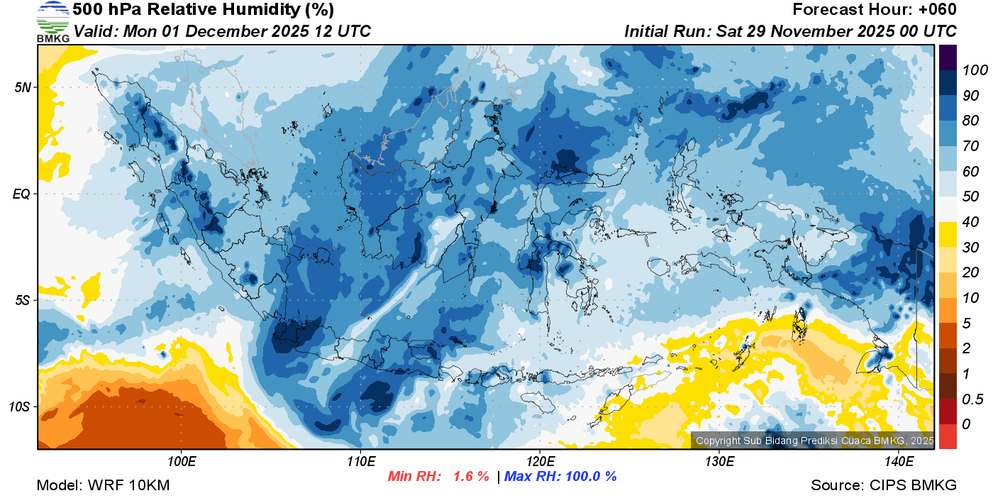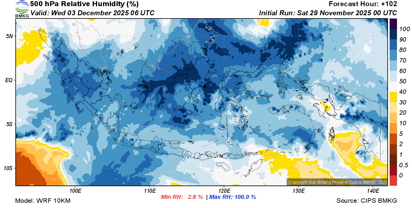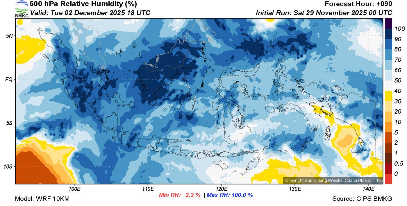 Prediksi Suhu Titik Embun 600 hPa NTT
