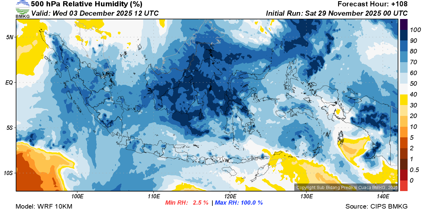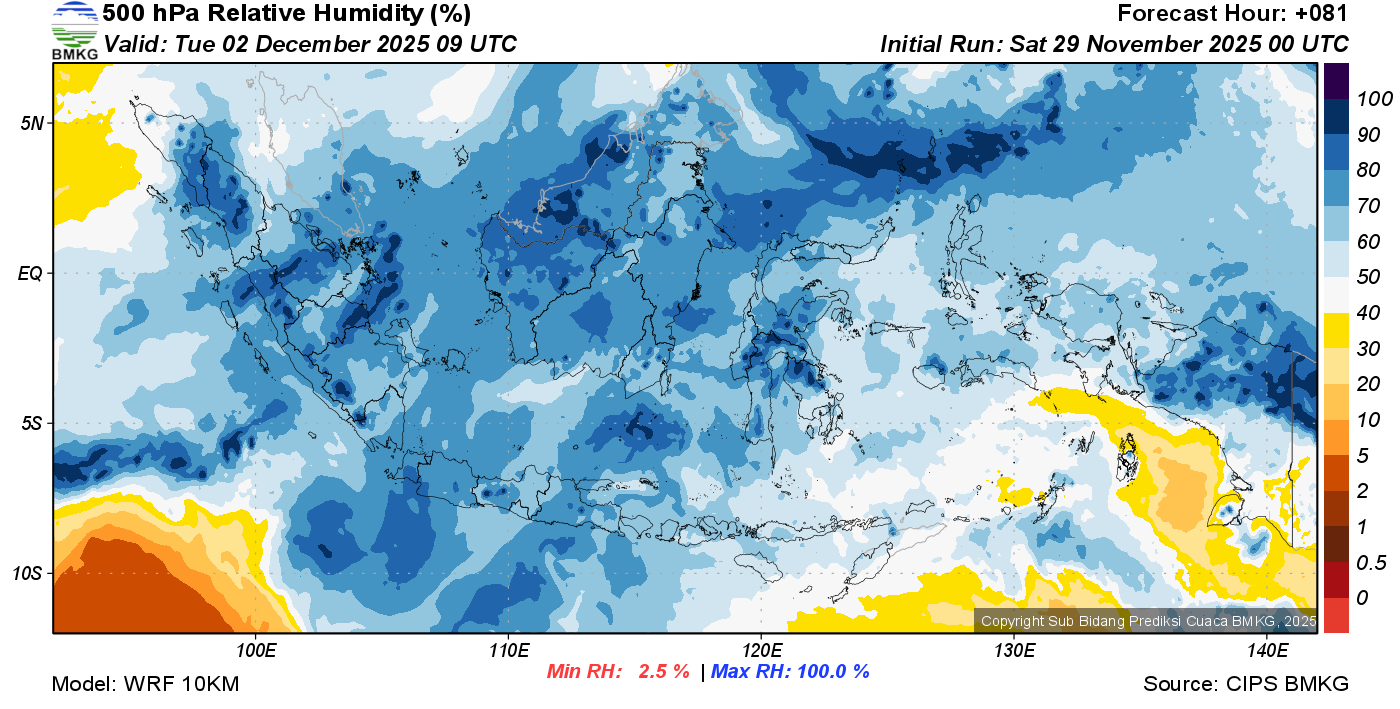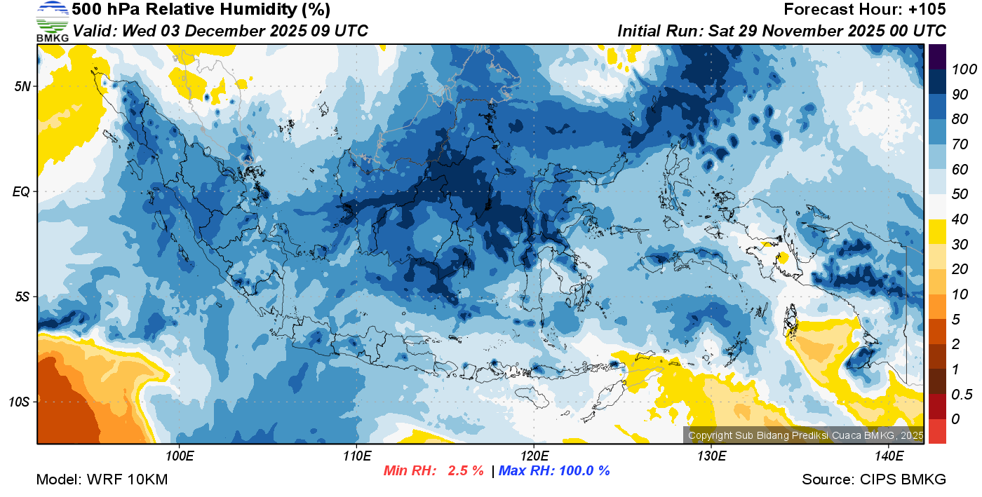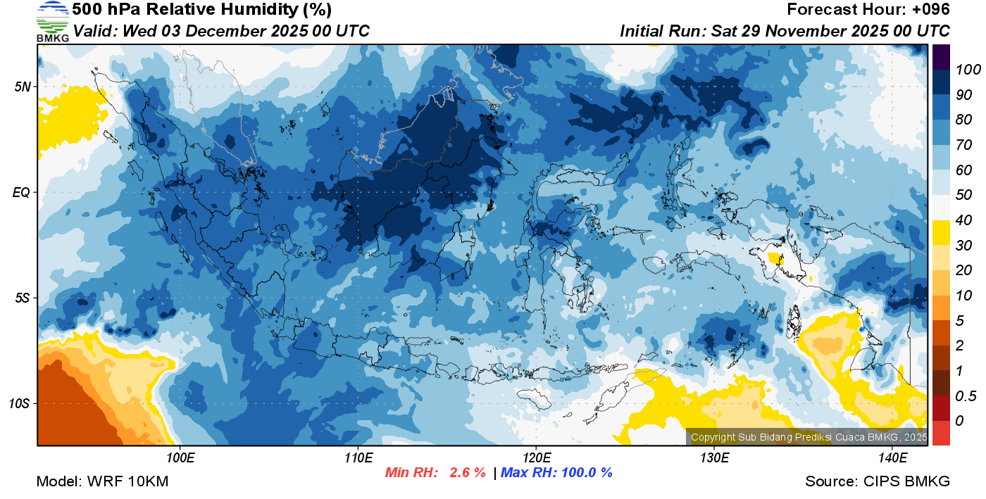 Prediksi Suhu Titik Embun 600 hPa NTT