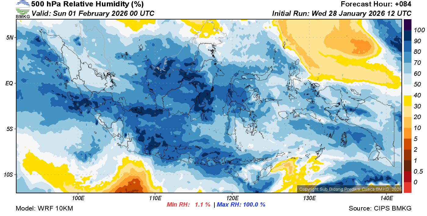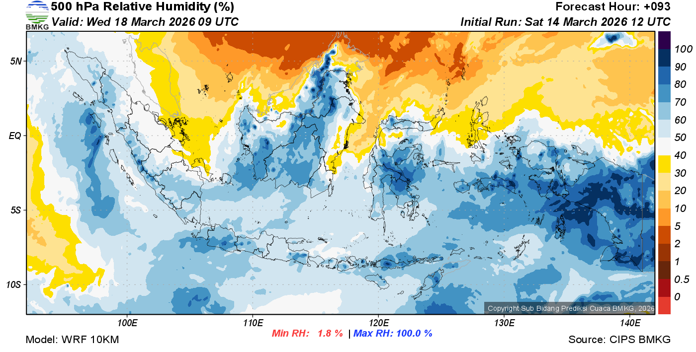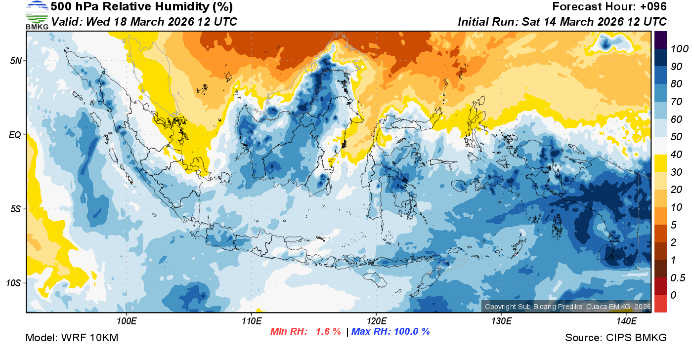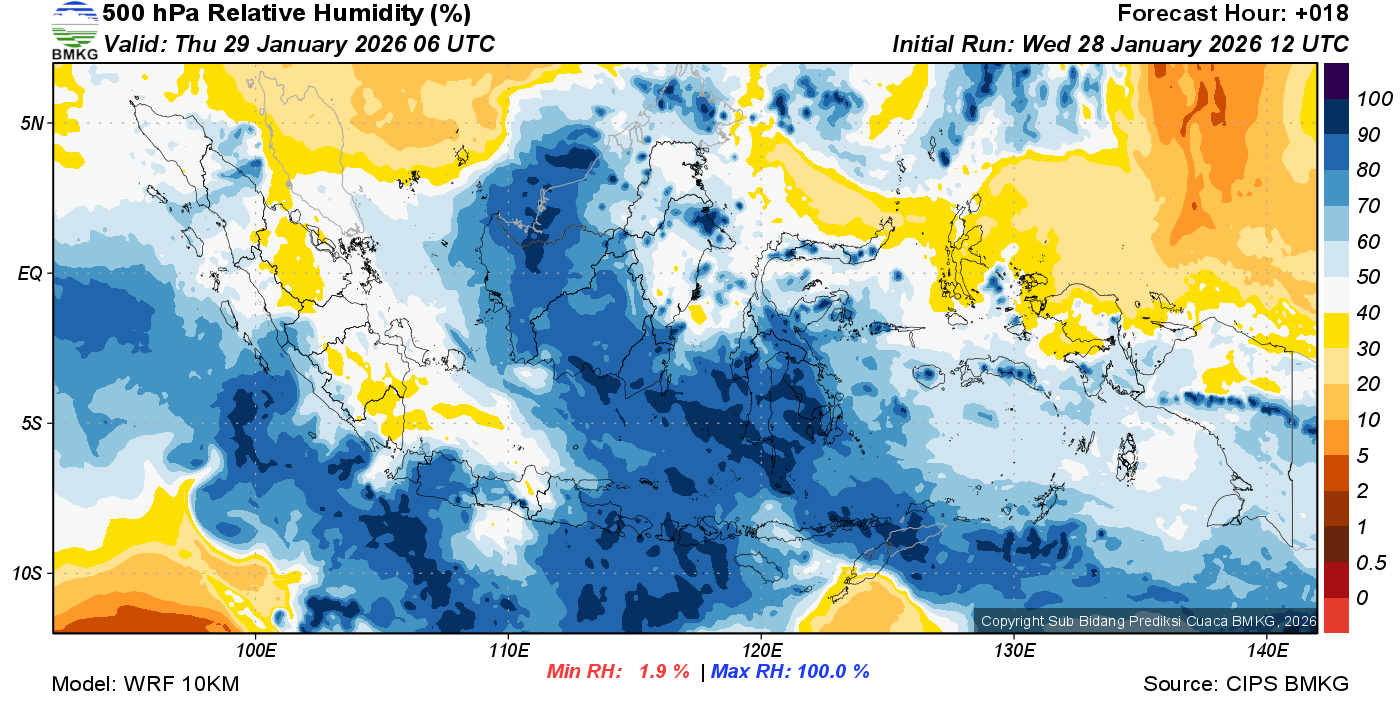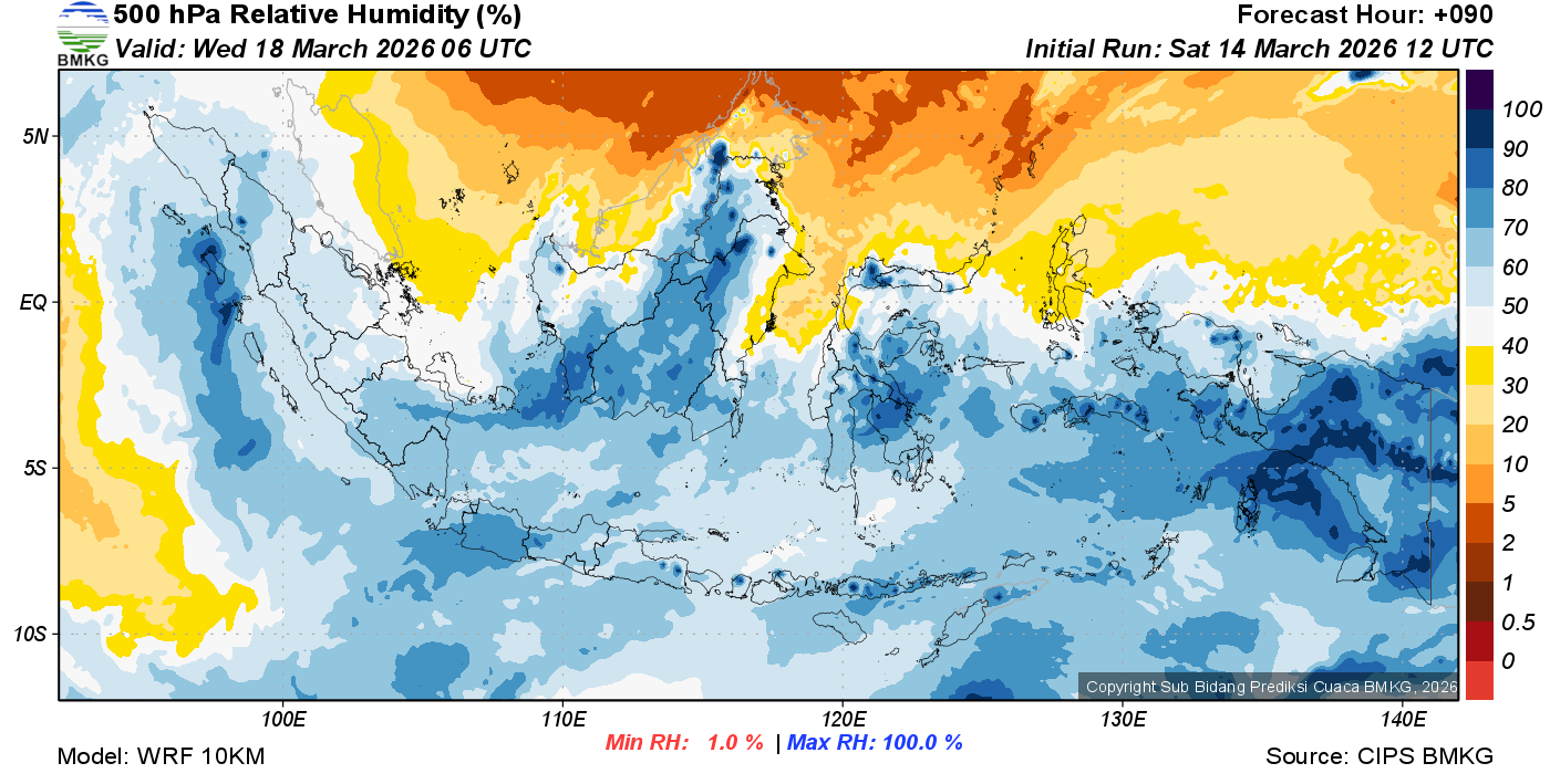 Prediksi Kelembapan 500 hPa NTT