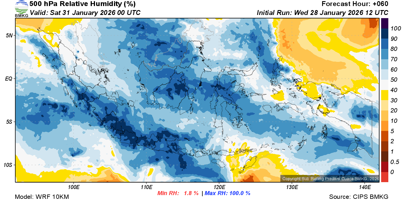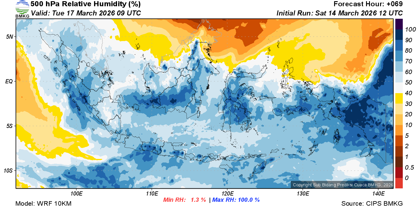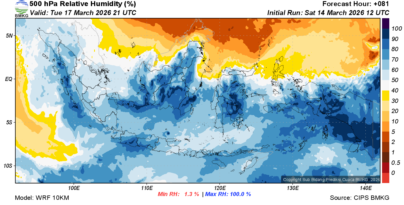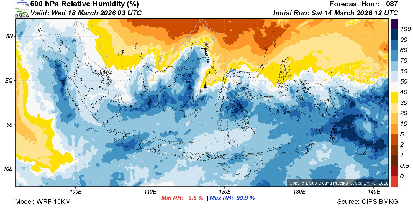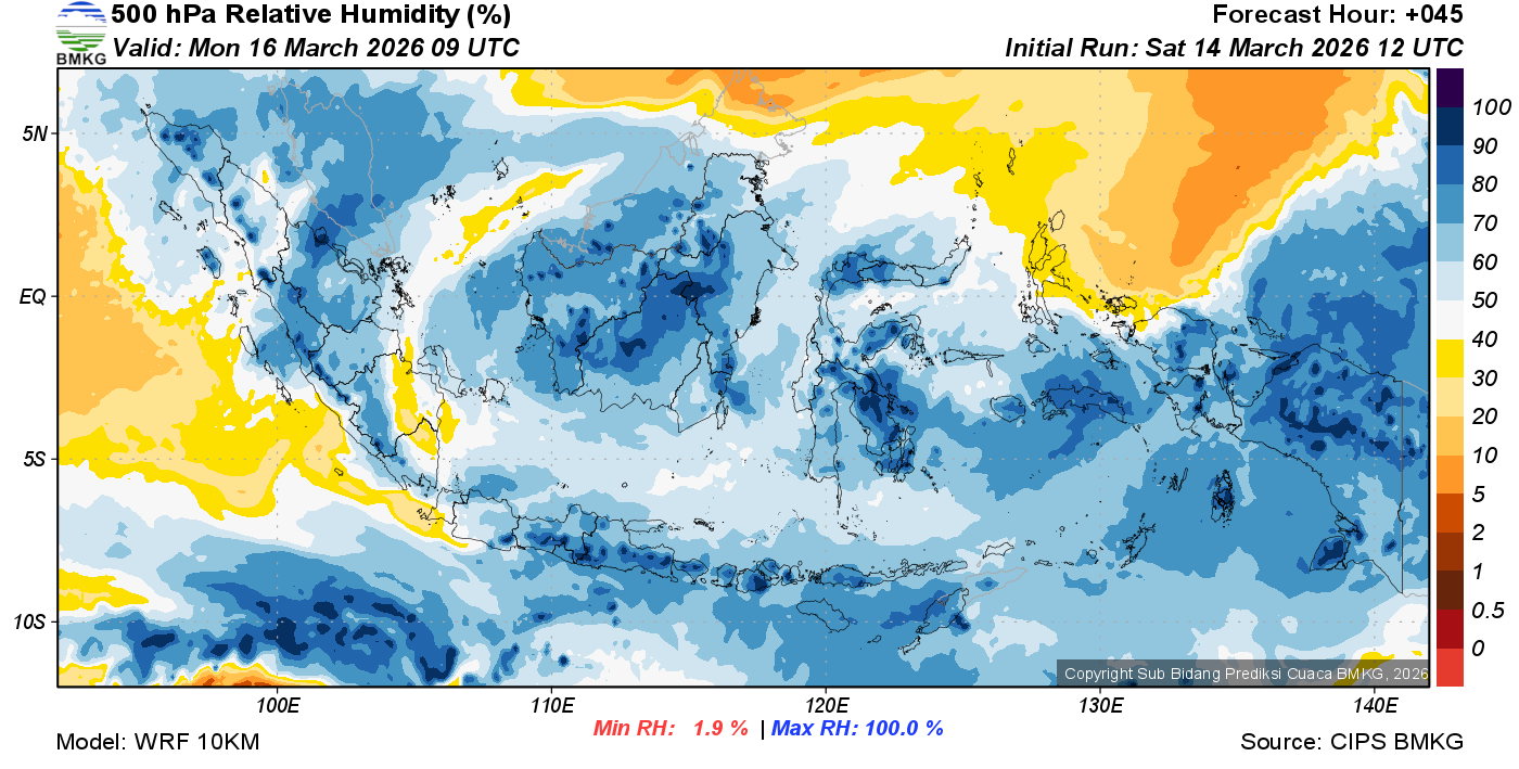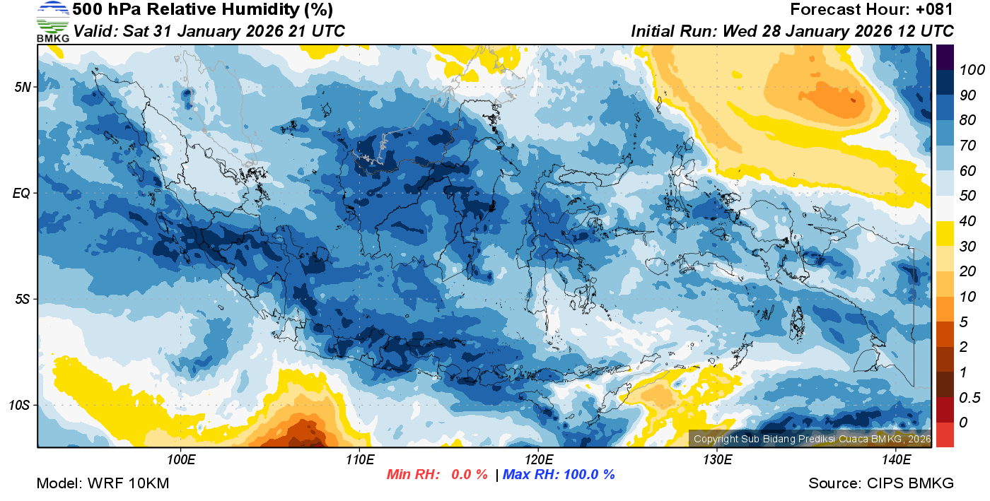 Prediksi Kelembapan 500 hPa NTT
