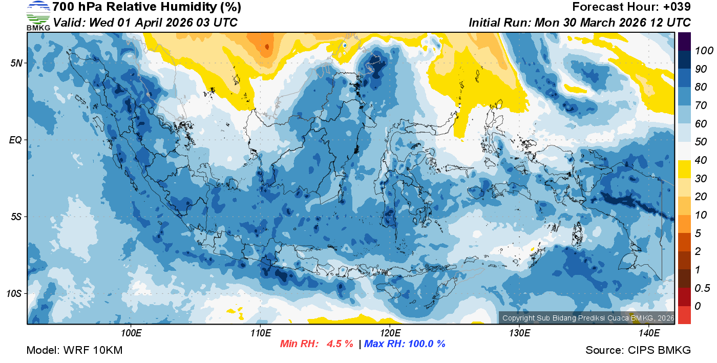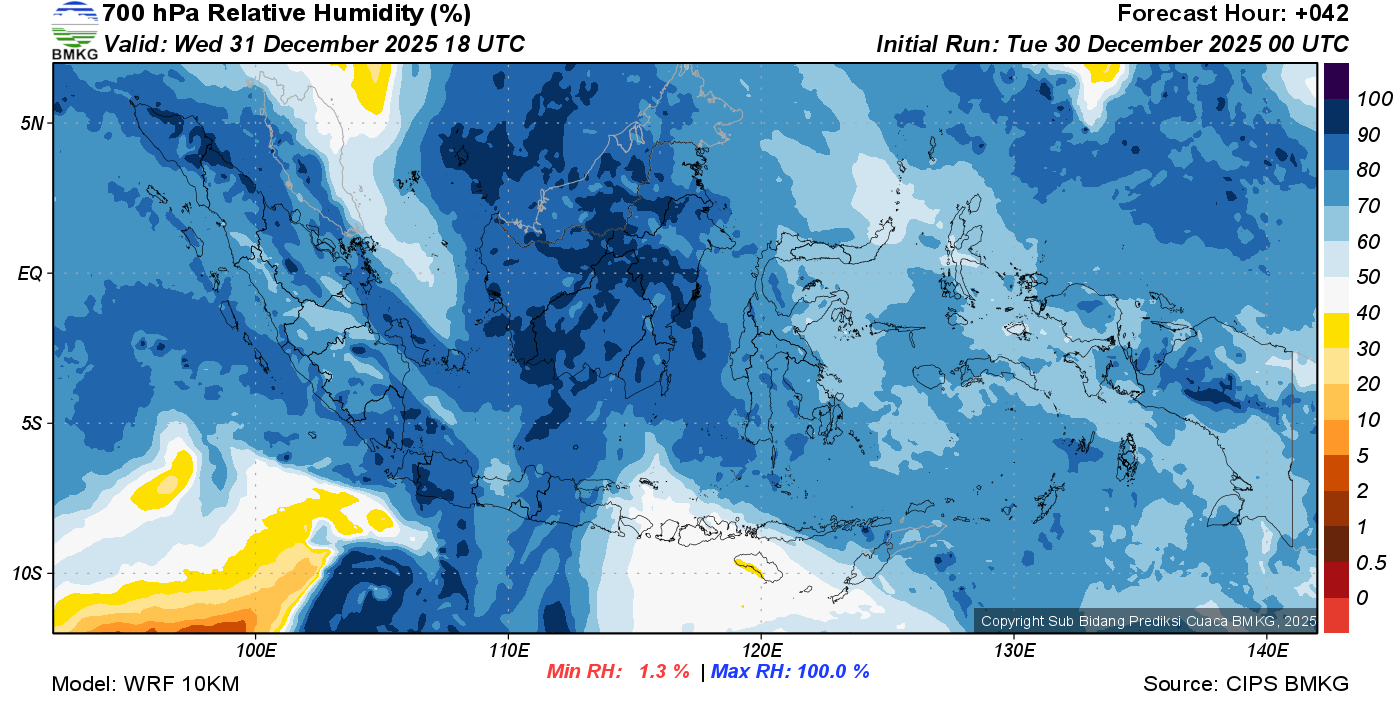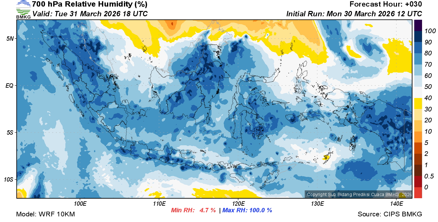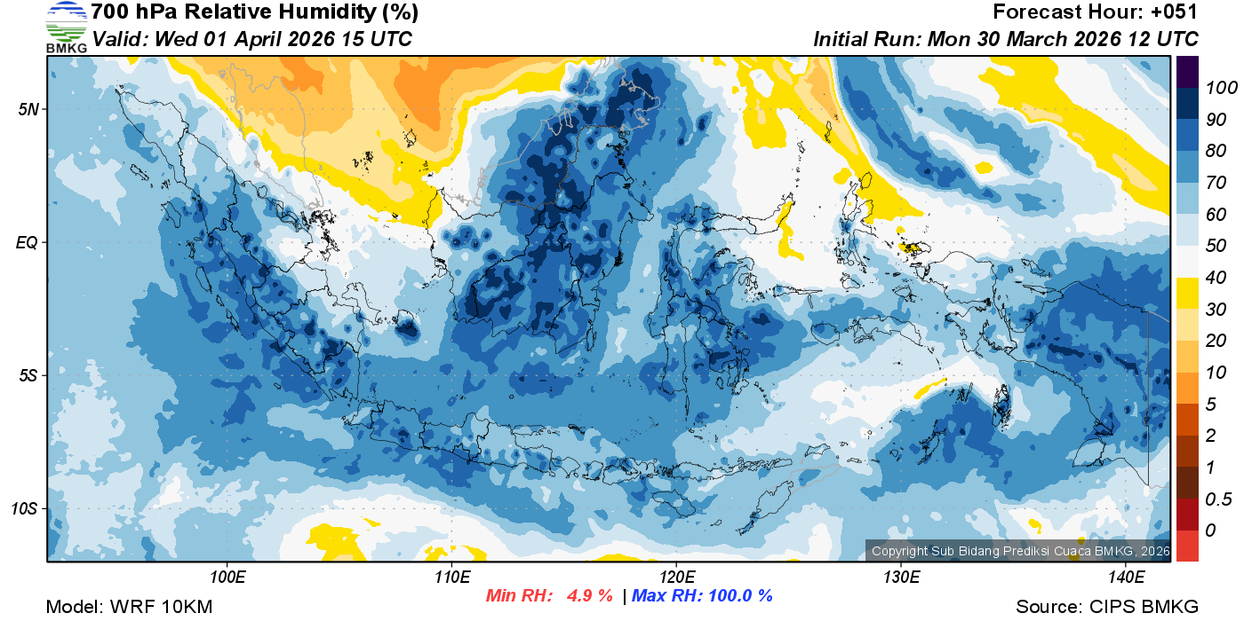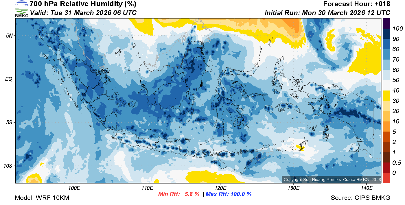 Prediksi Kelembapan 700 hPa NTT