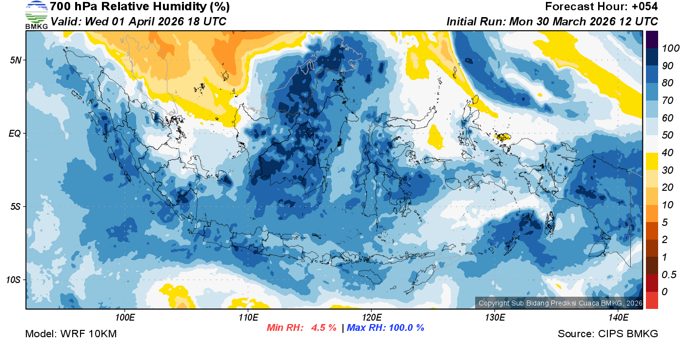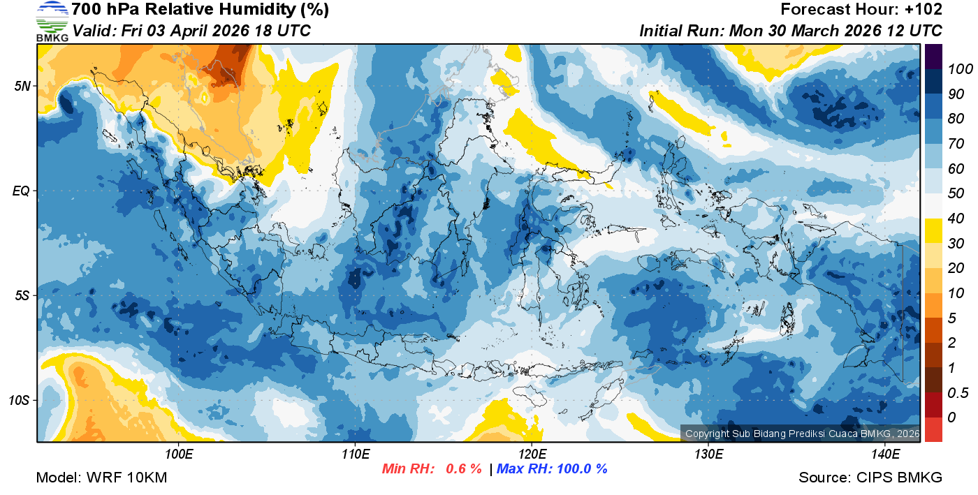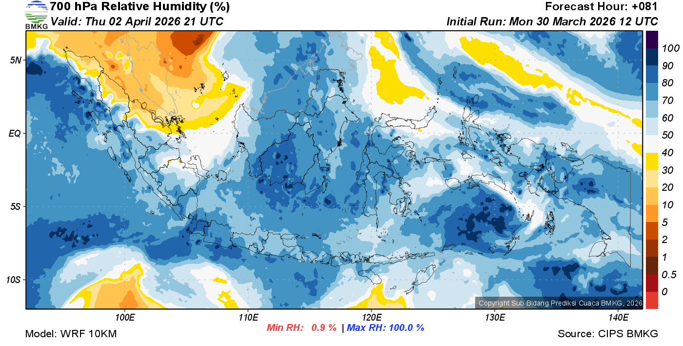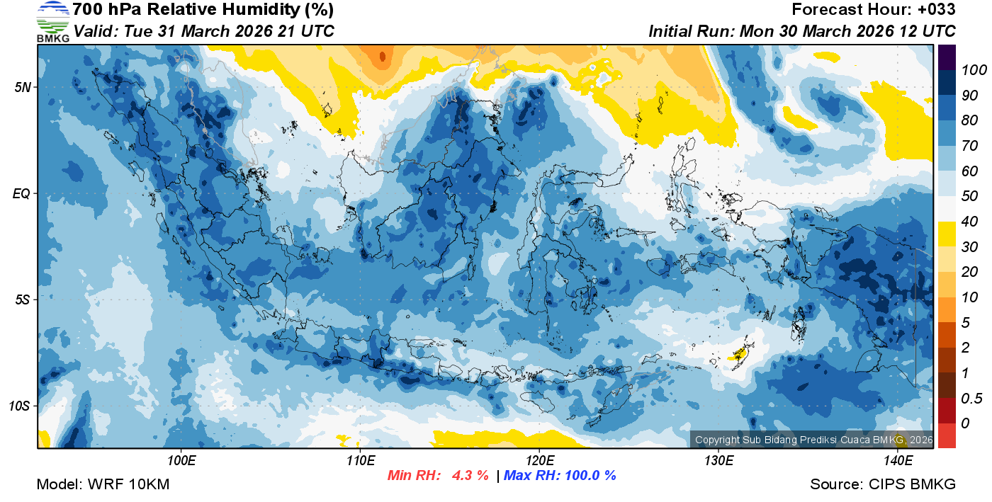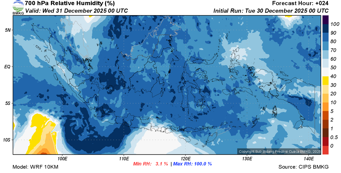 Prediksi Kelembapan 700 hPa NTT