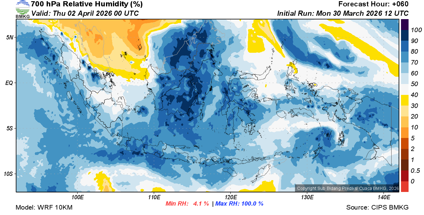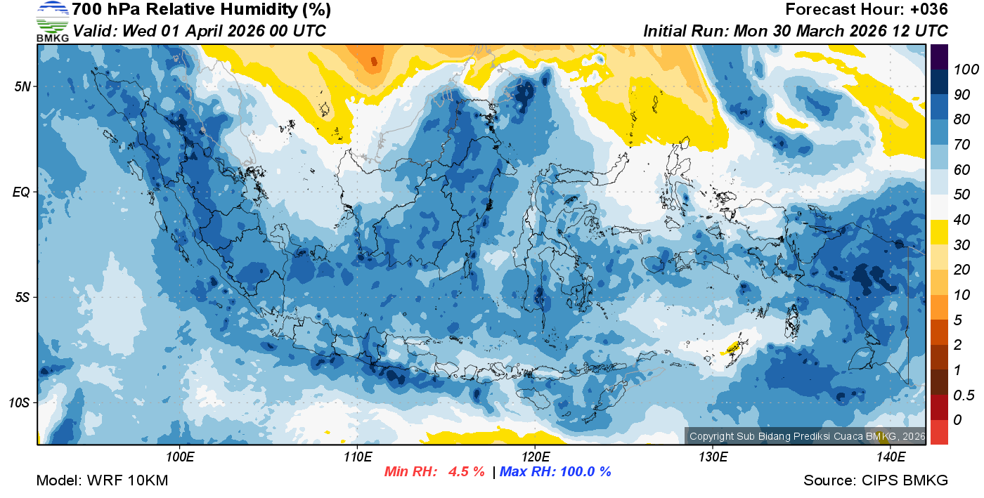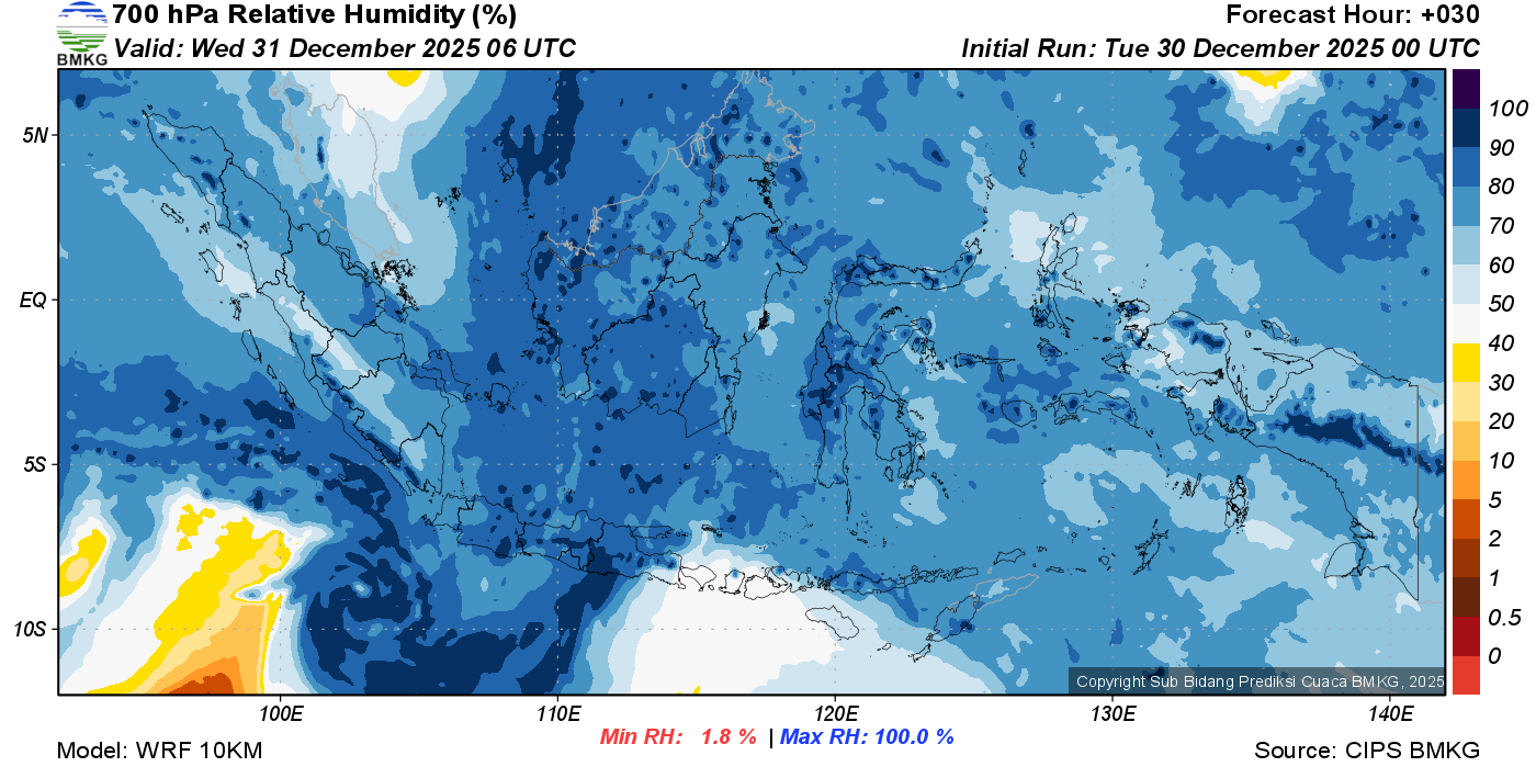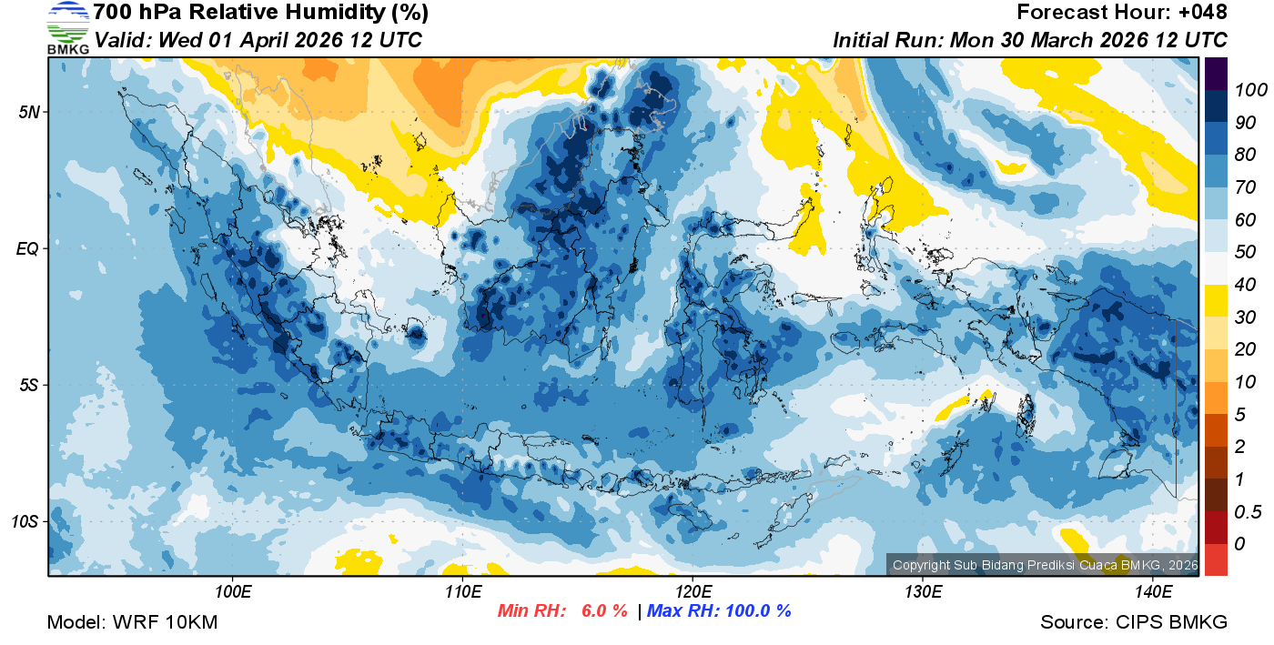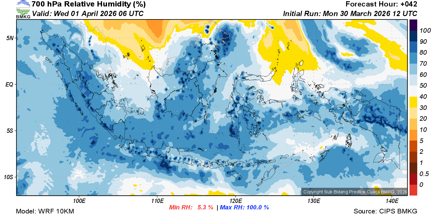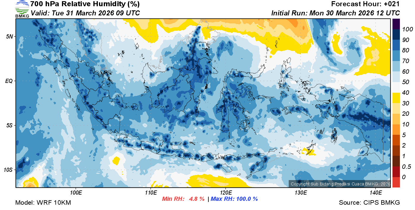 Prediksi Kelembapan 700 hPa NTT