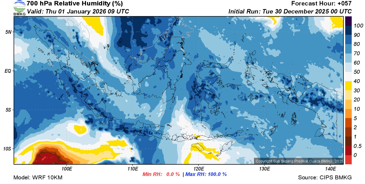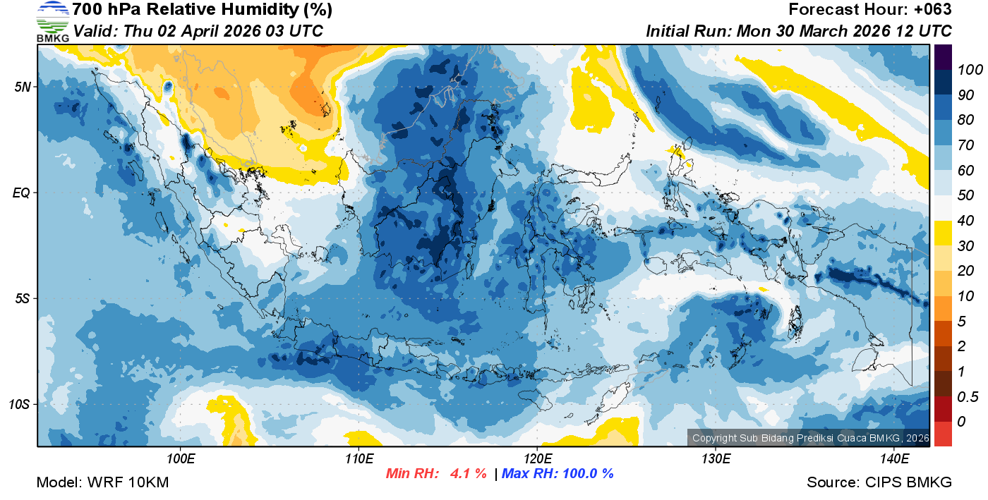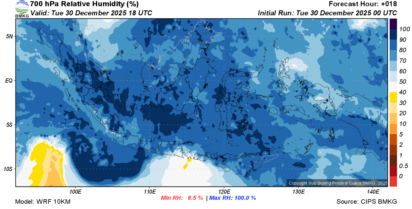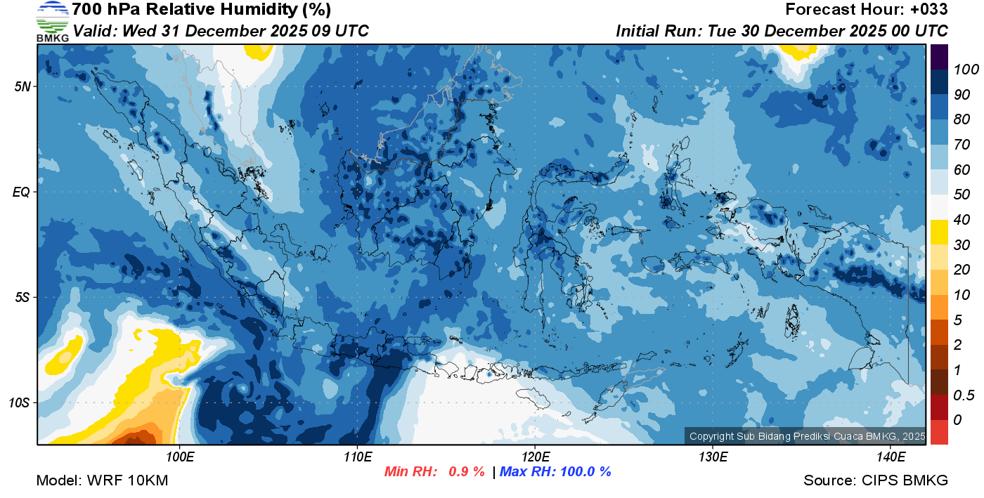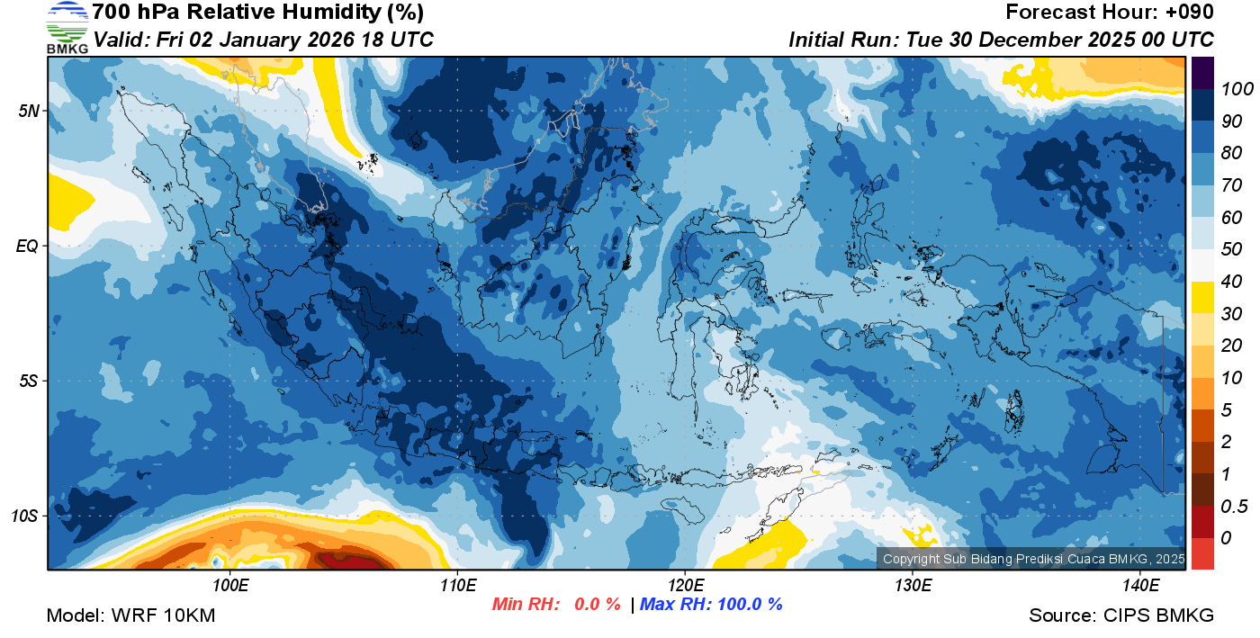Prediksi Kelembapan 700 hPa NTT