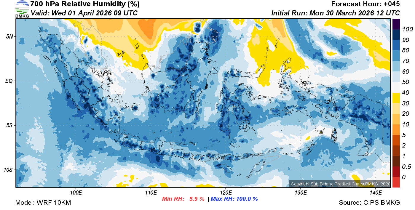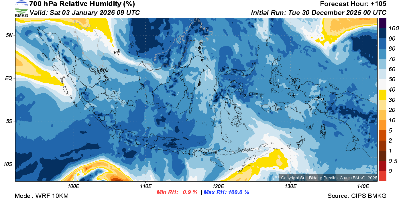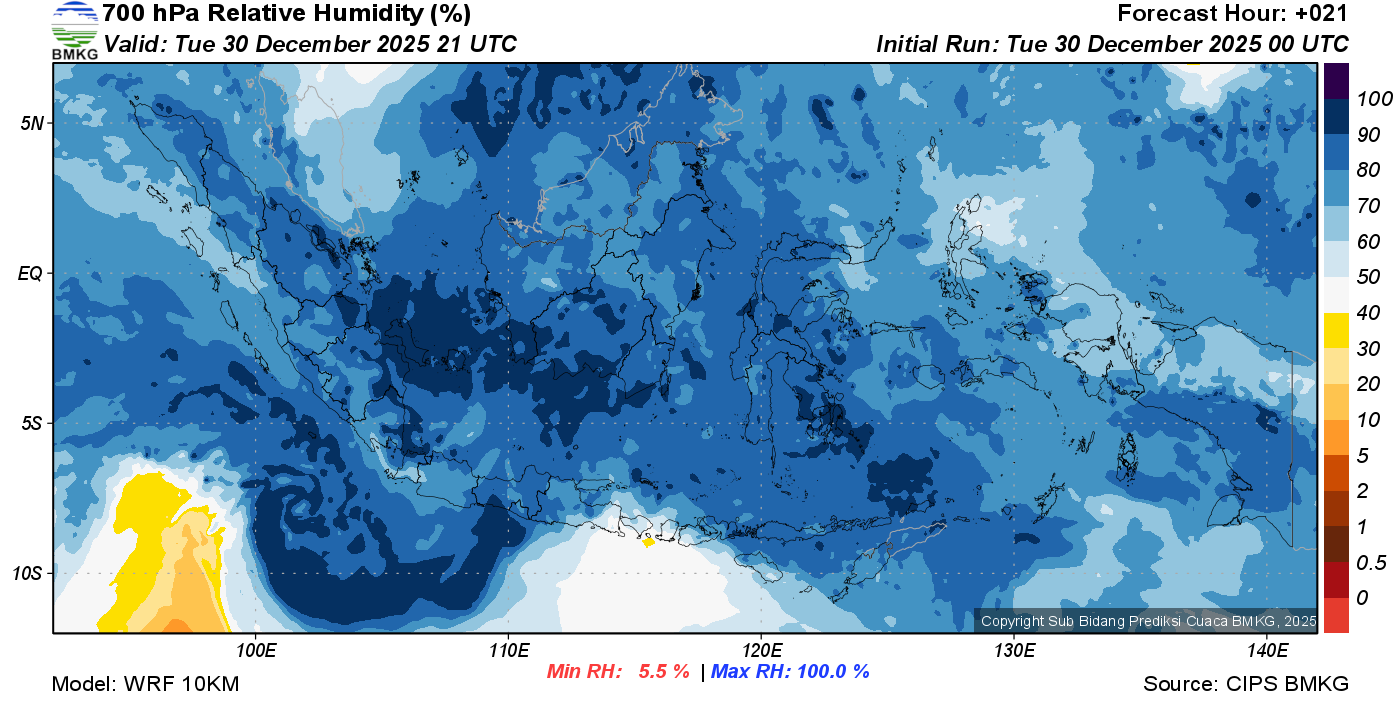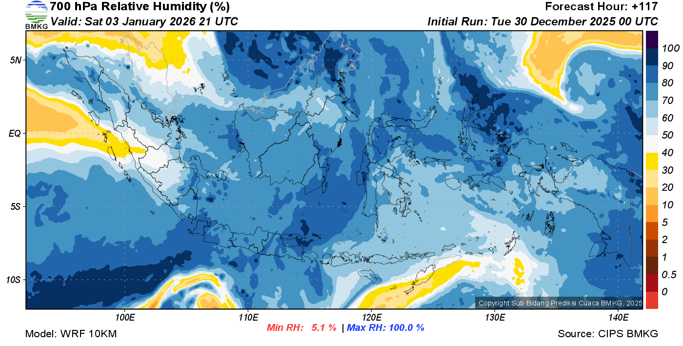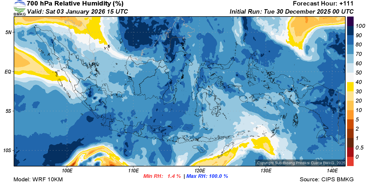 Prediksi Kelembapan 700 hPa NTT