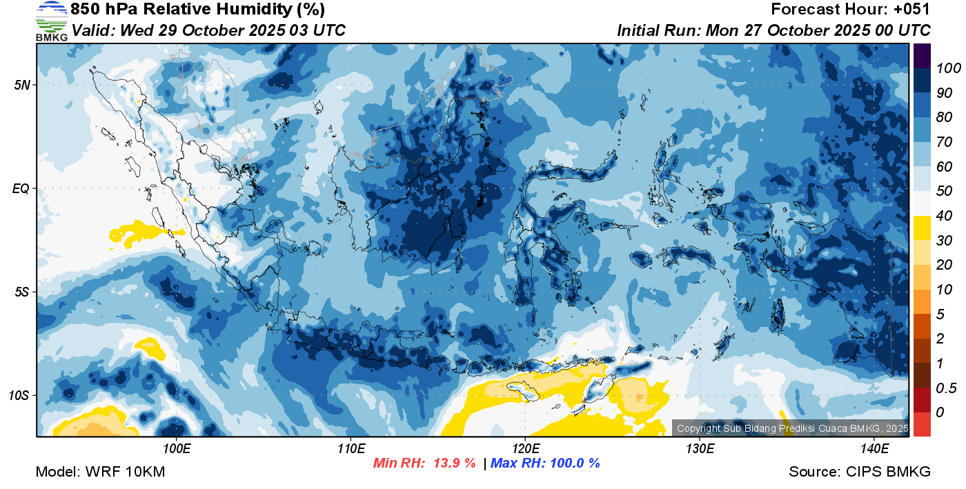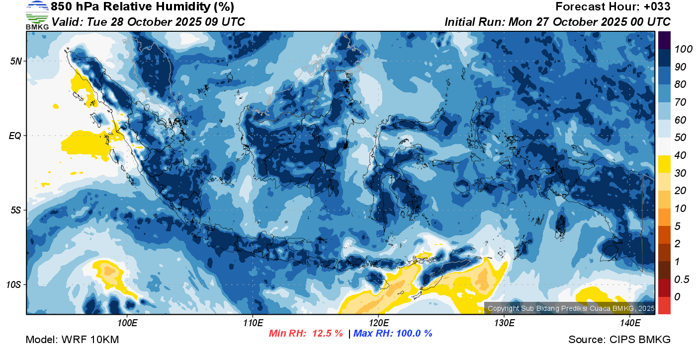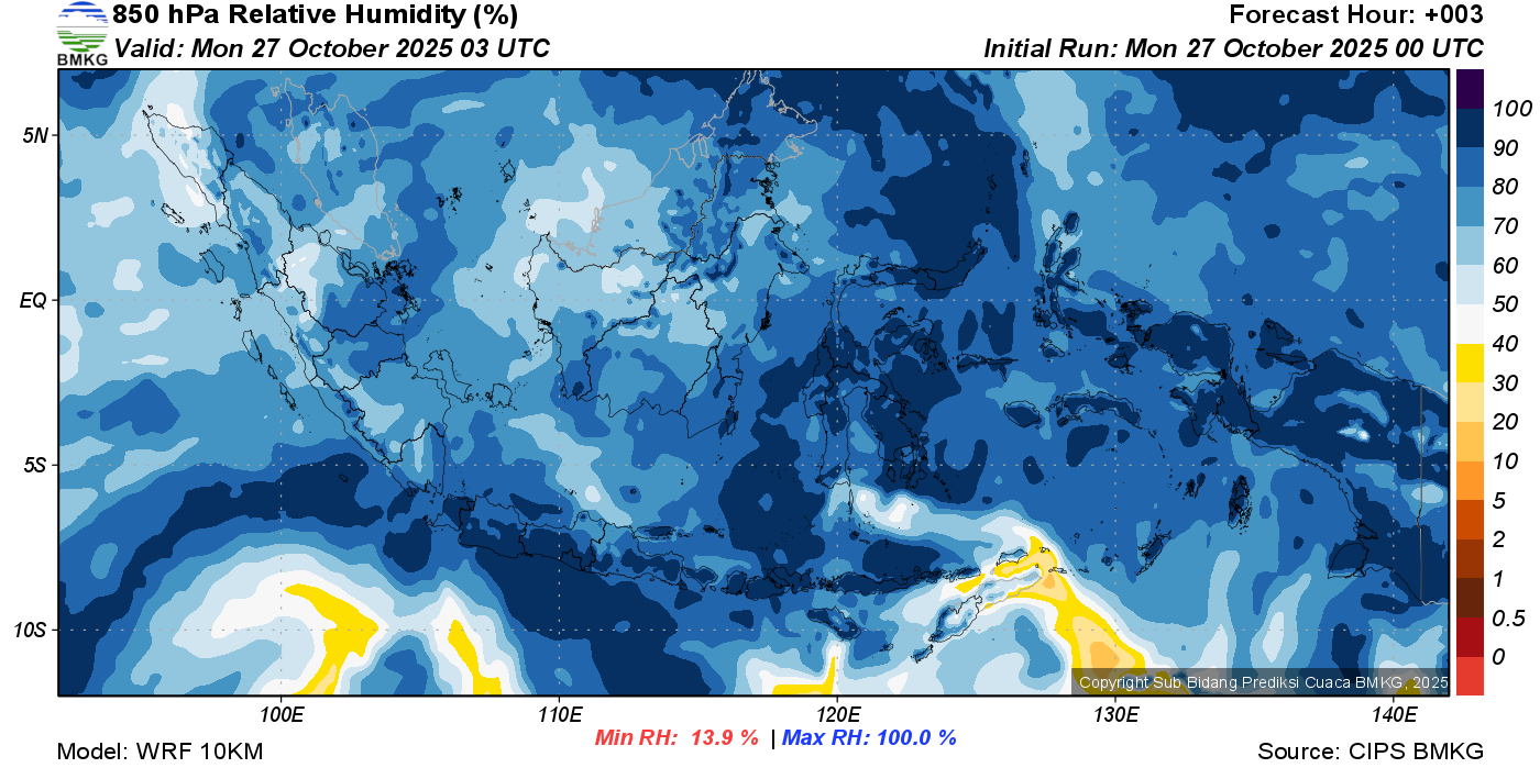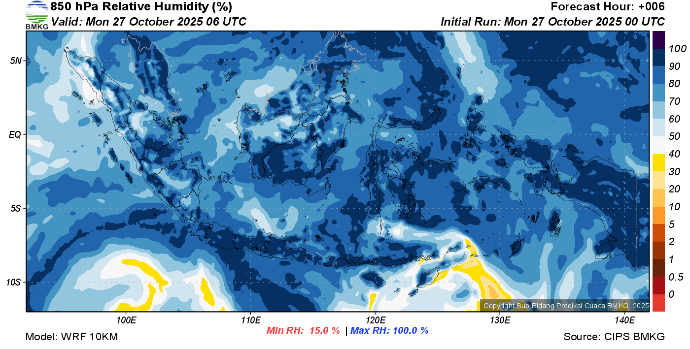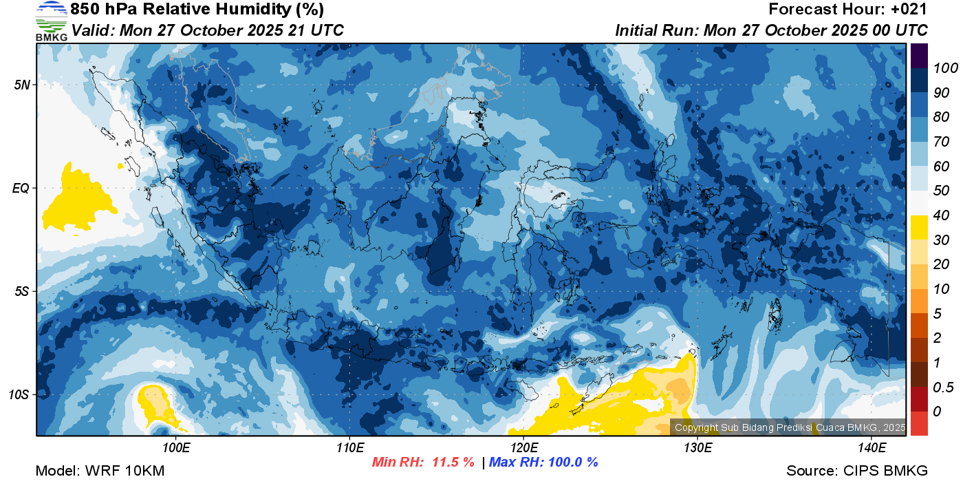 Prediksi Suhu Titik Embun 850 hPa NTT