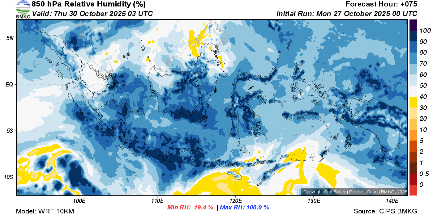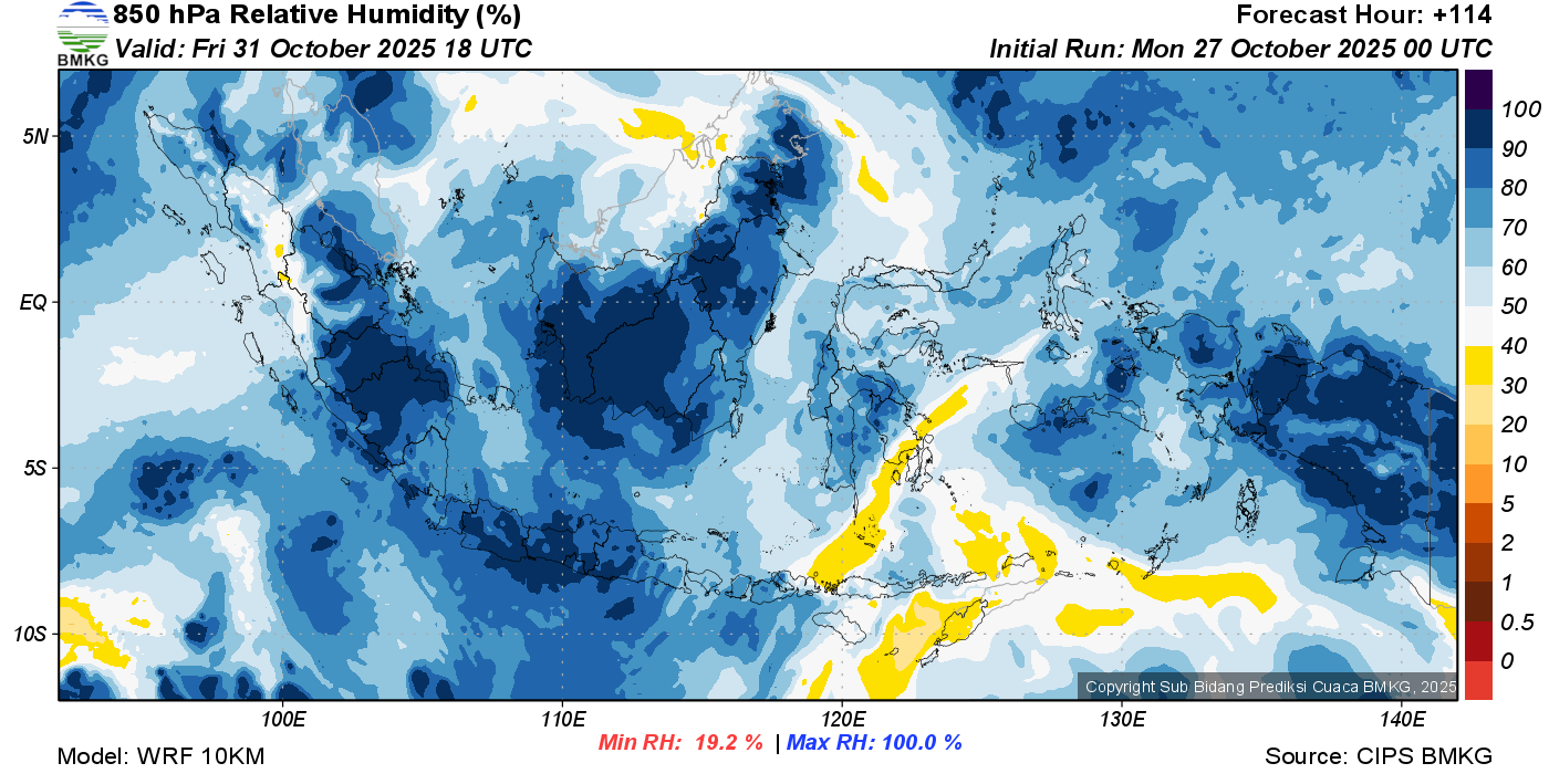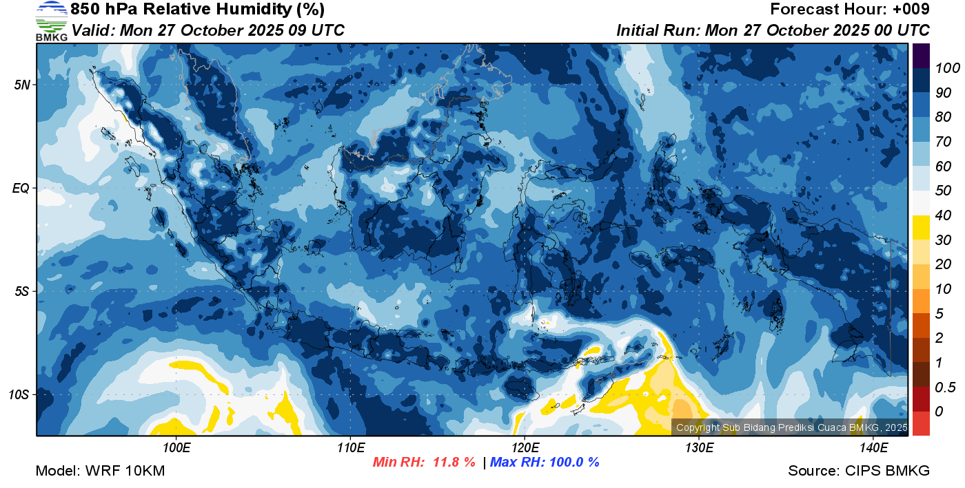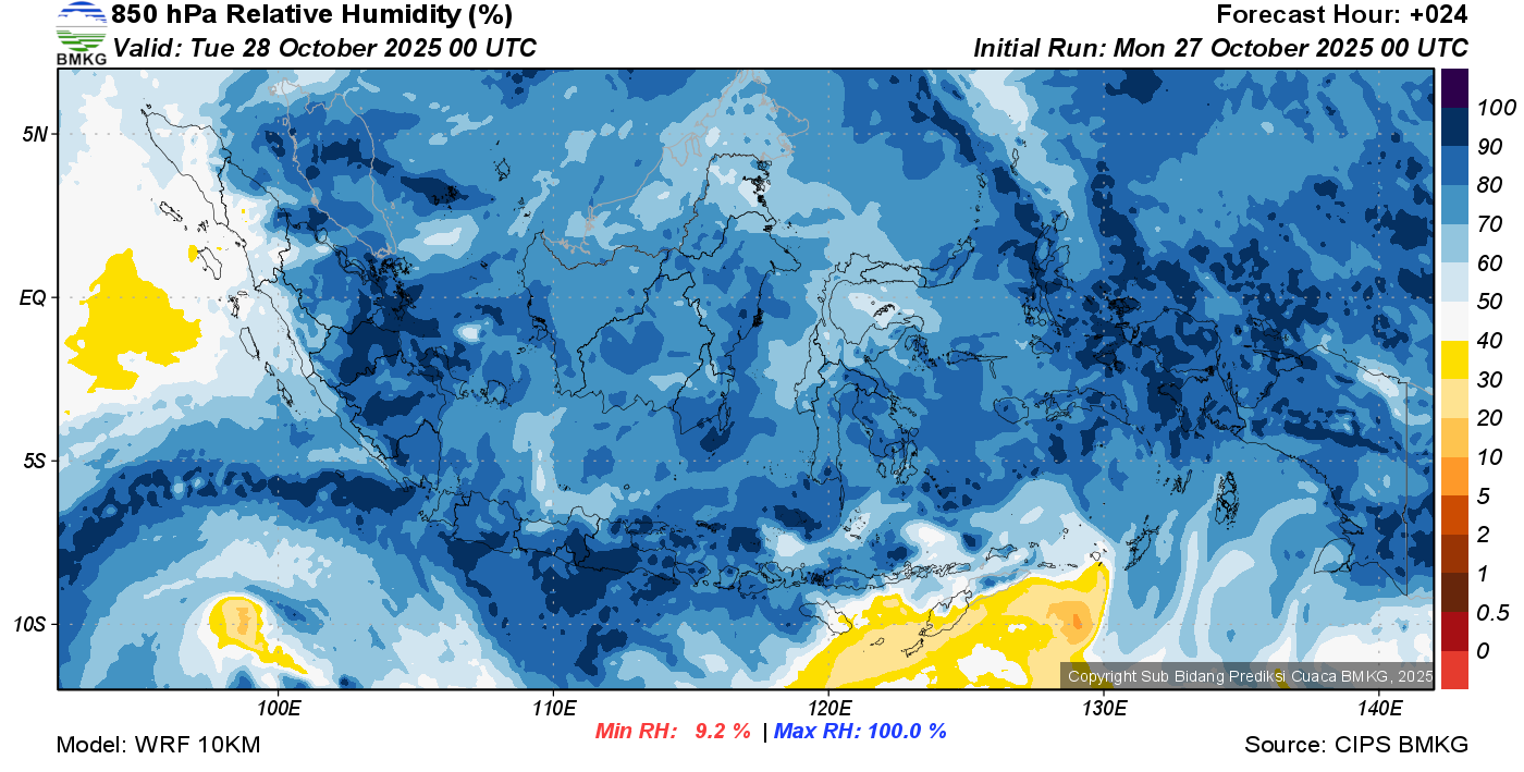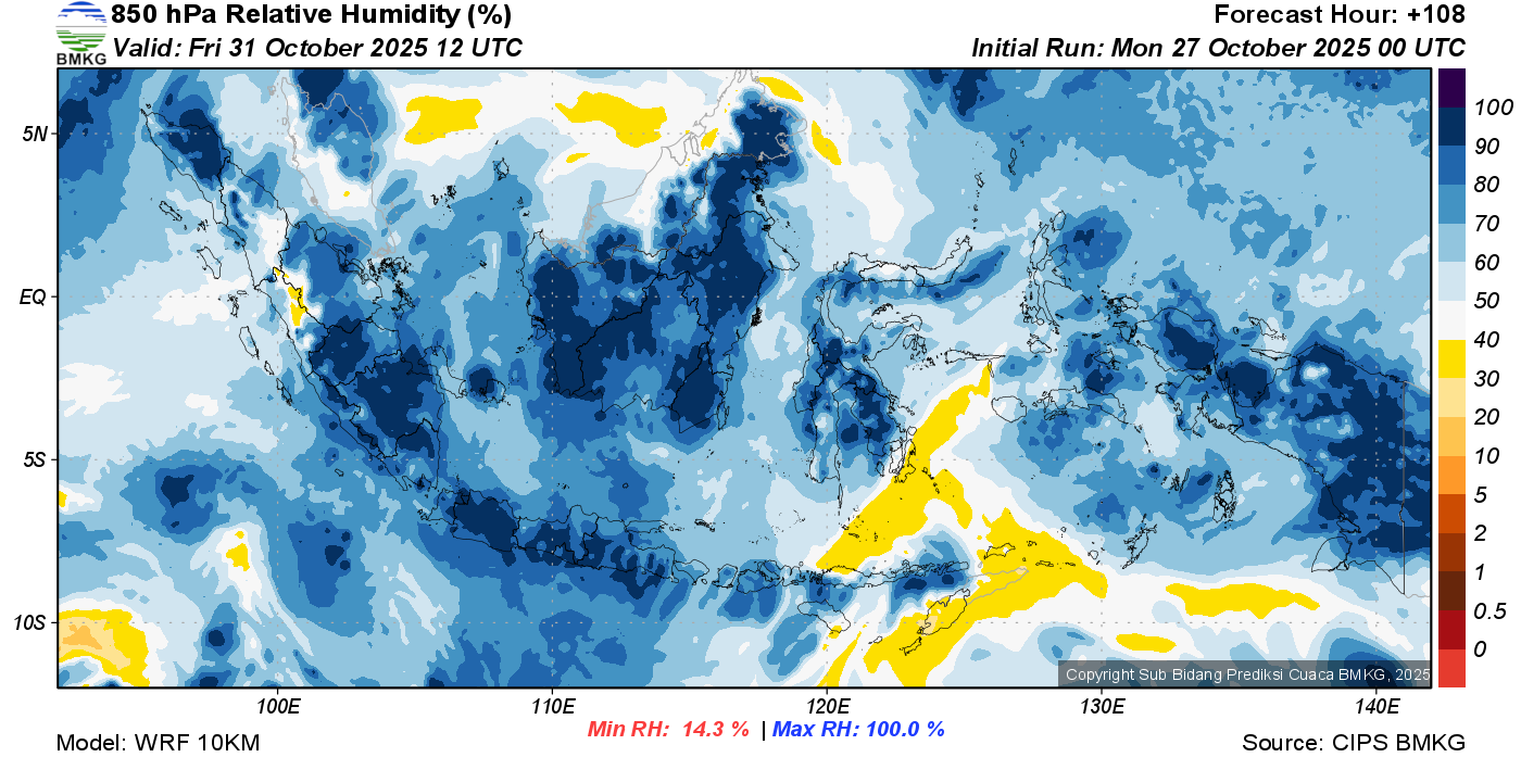 Prediksi Suhu Titik Embun 850 hPa NTT