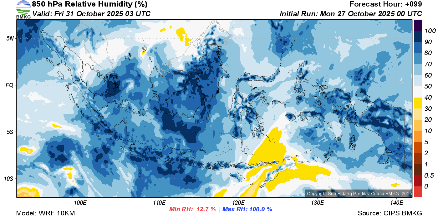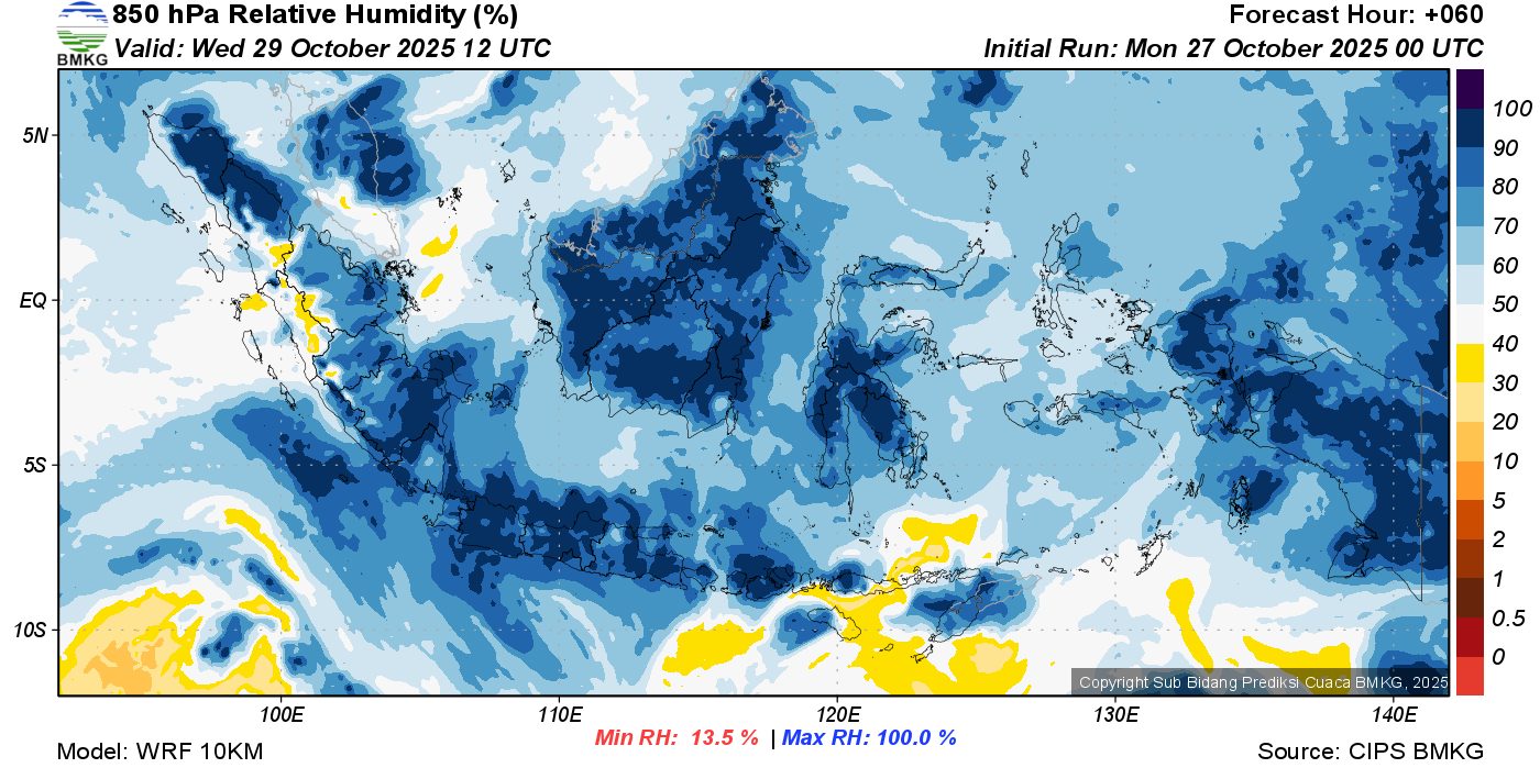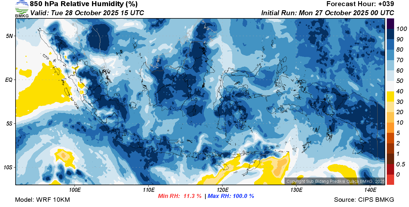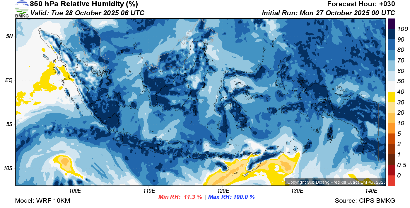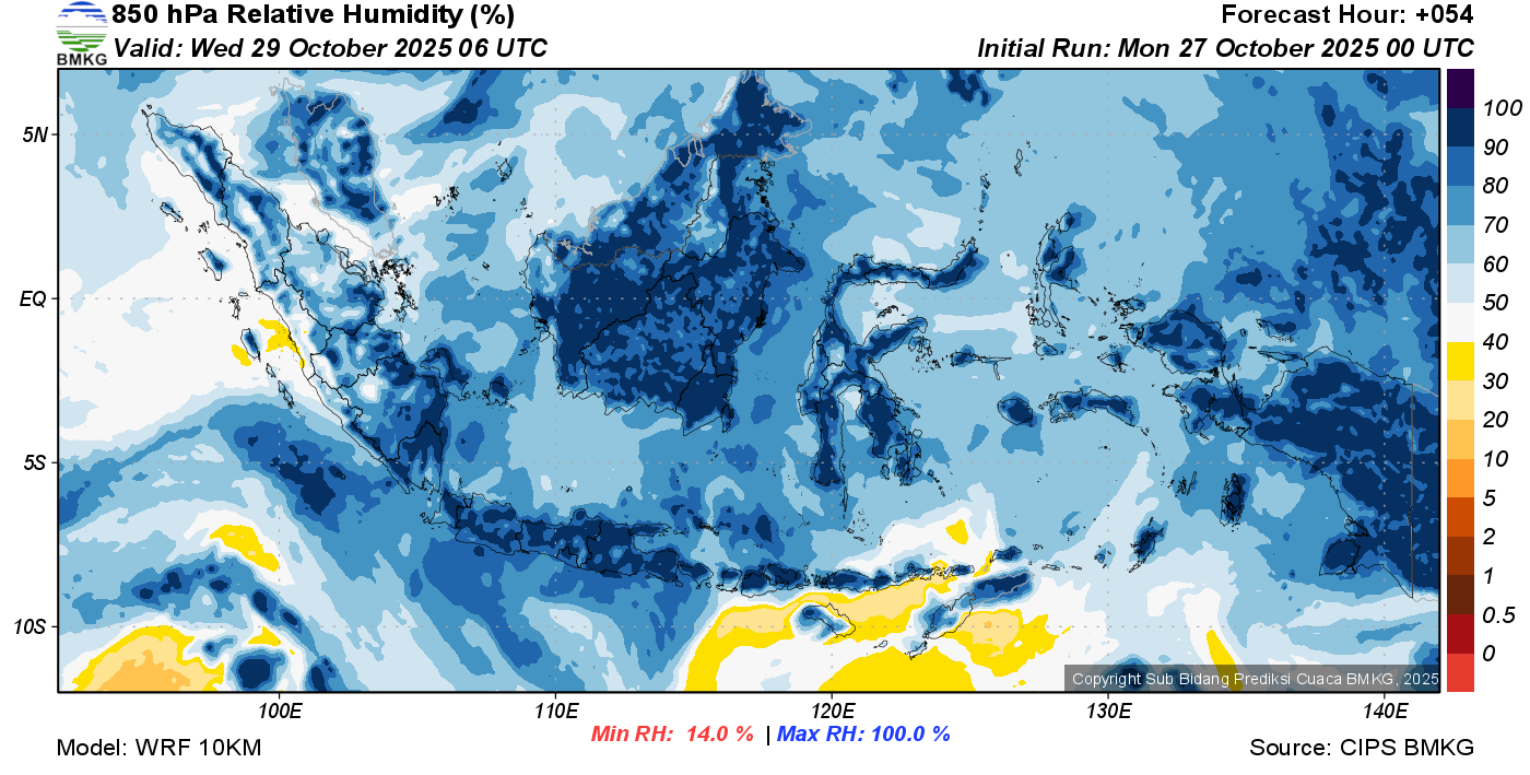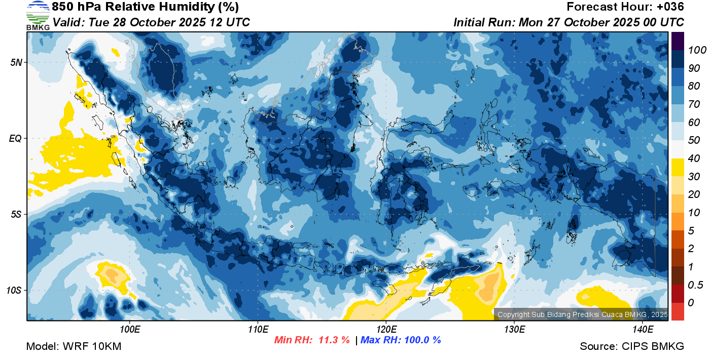 Prediksi Suhu Titik Embun 850 hPa NTT