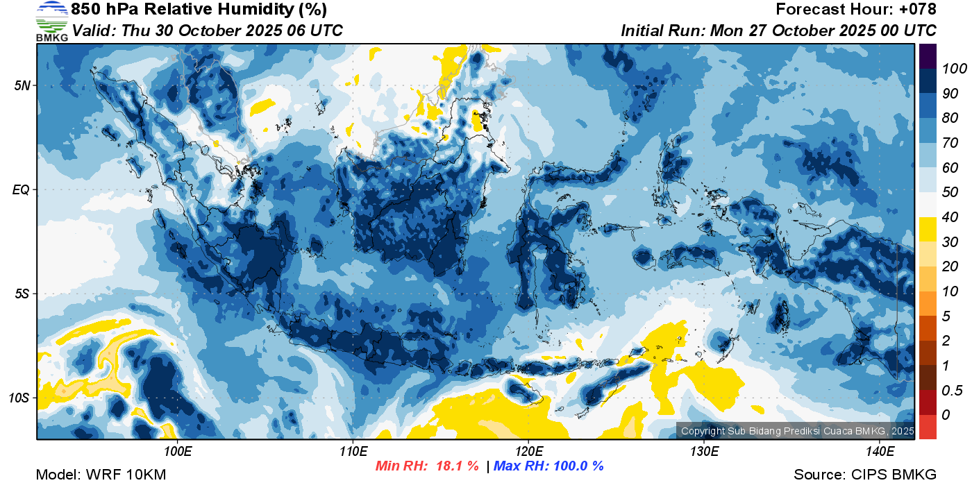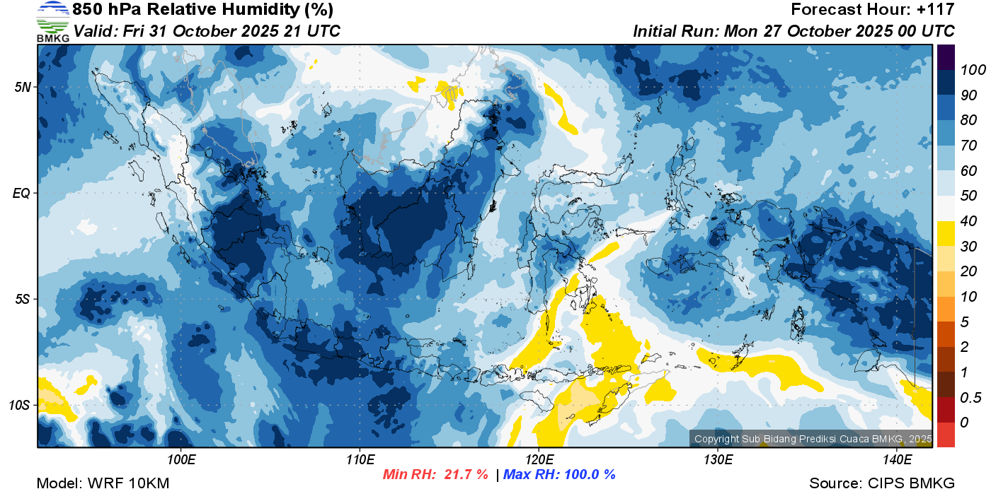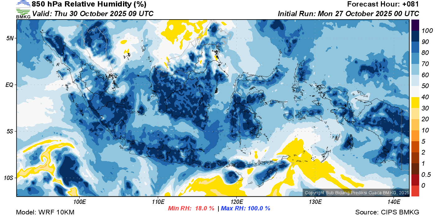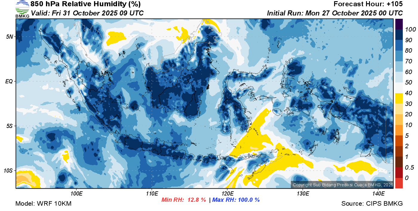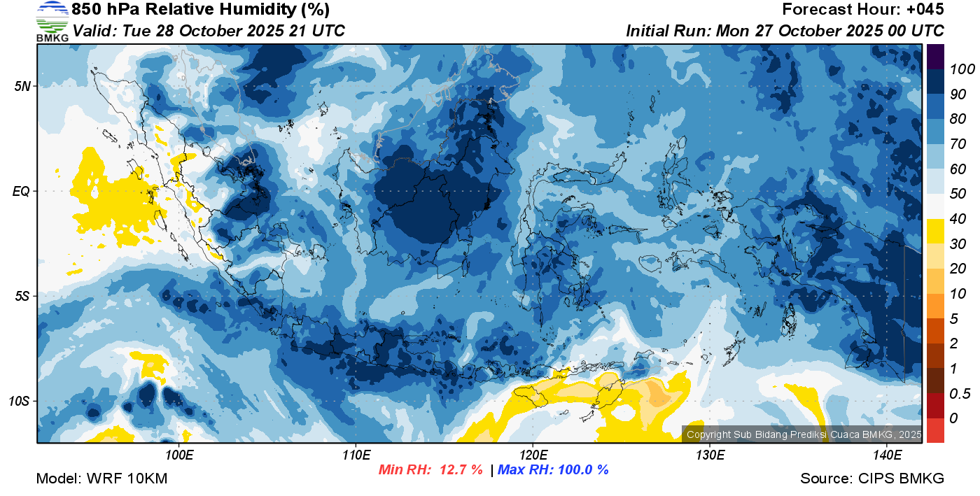 Prediksi Suhu Titik Embun 850 hPa NTT