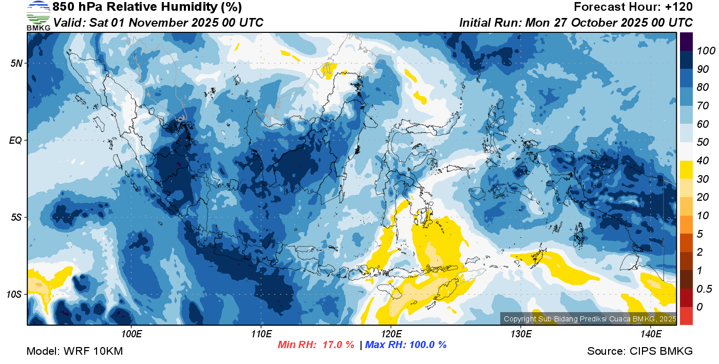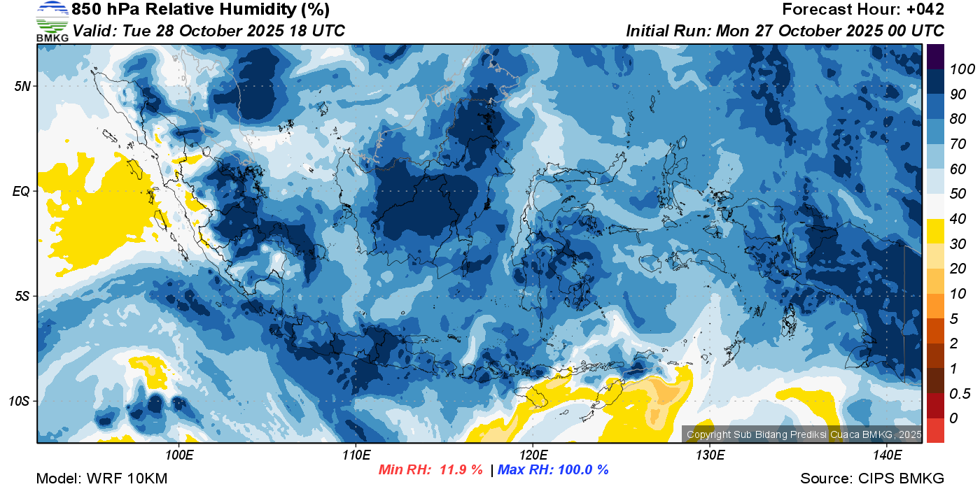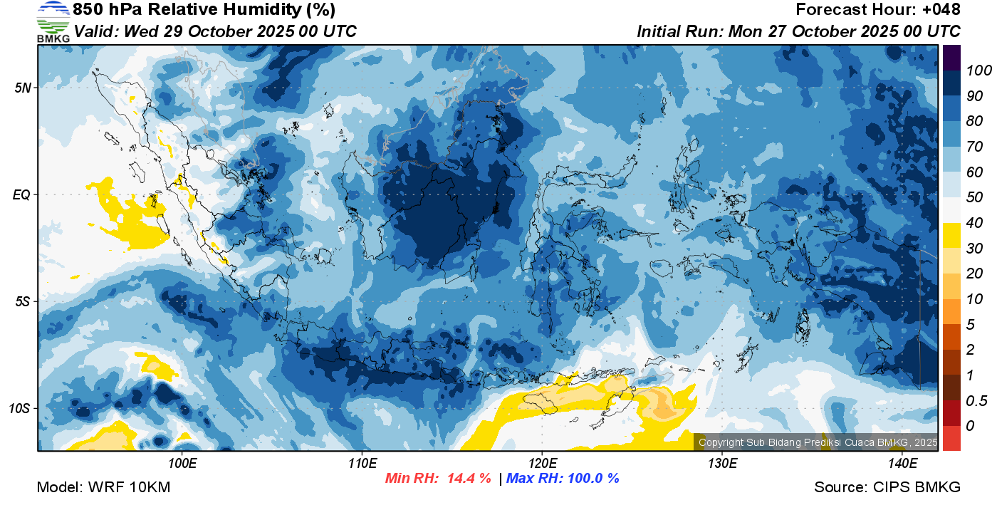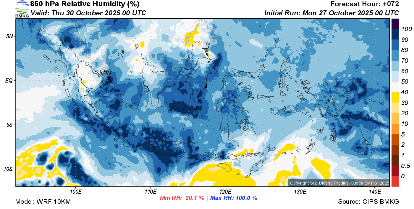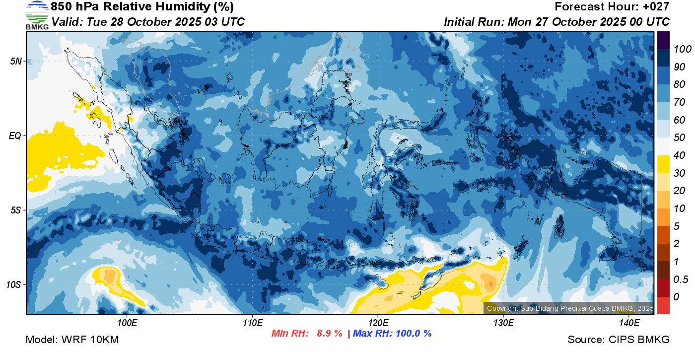 Prediksi Suhu Titik Embun 850 hPa NTT