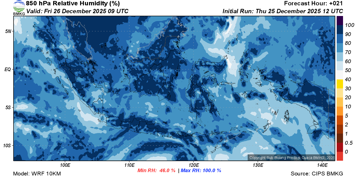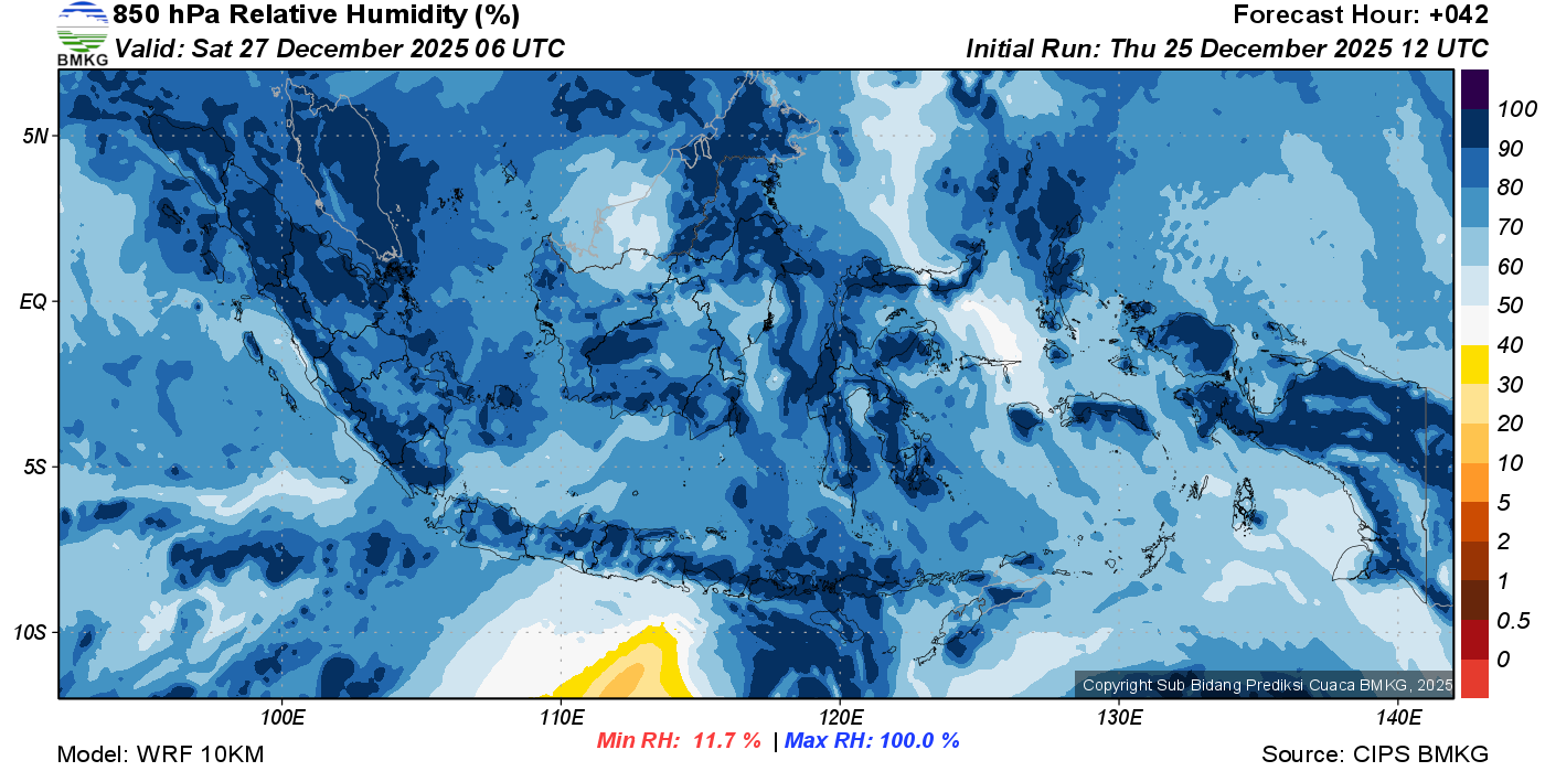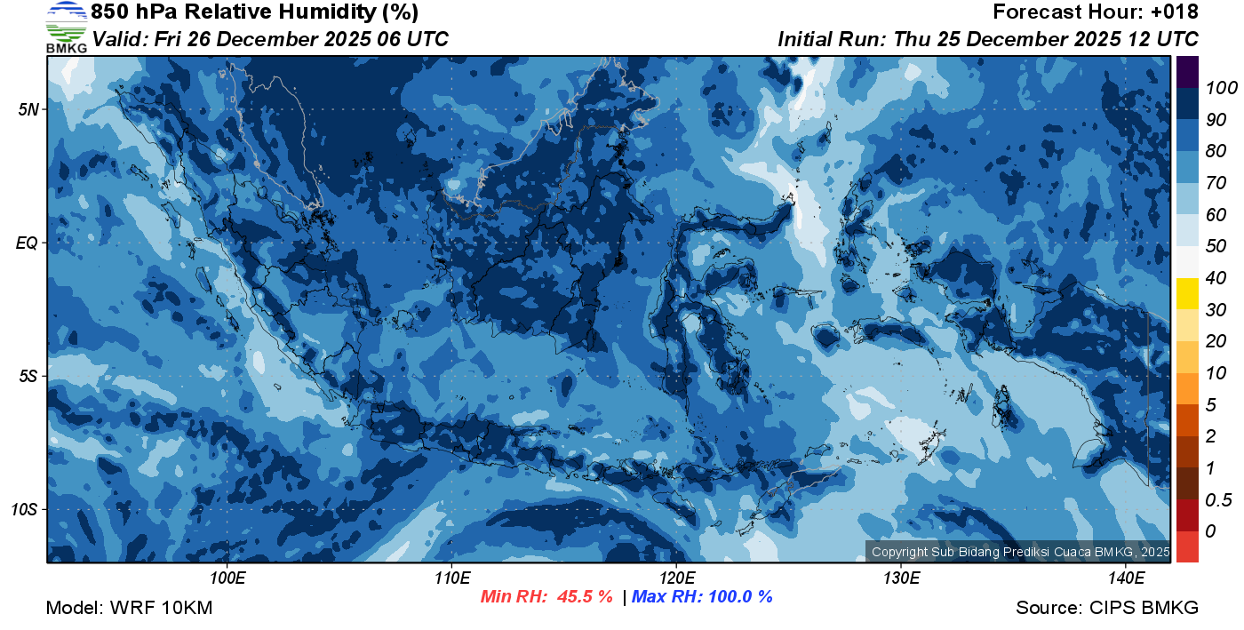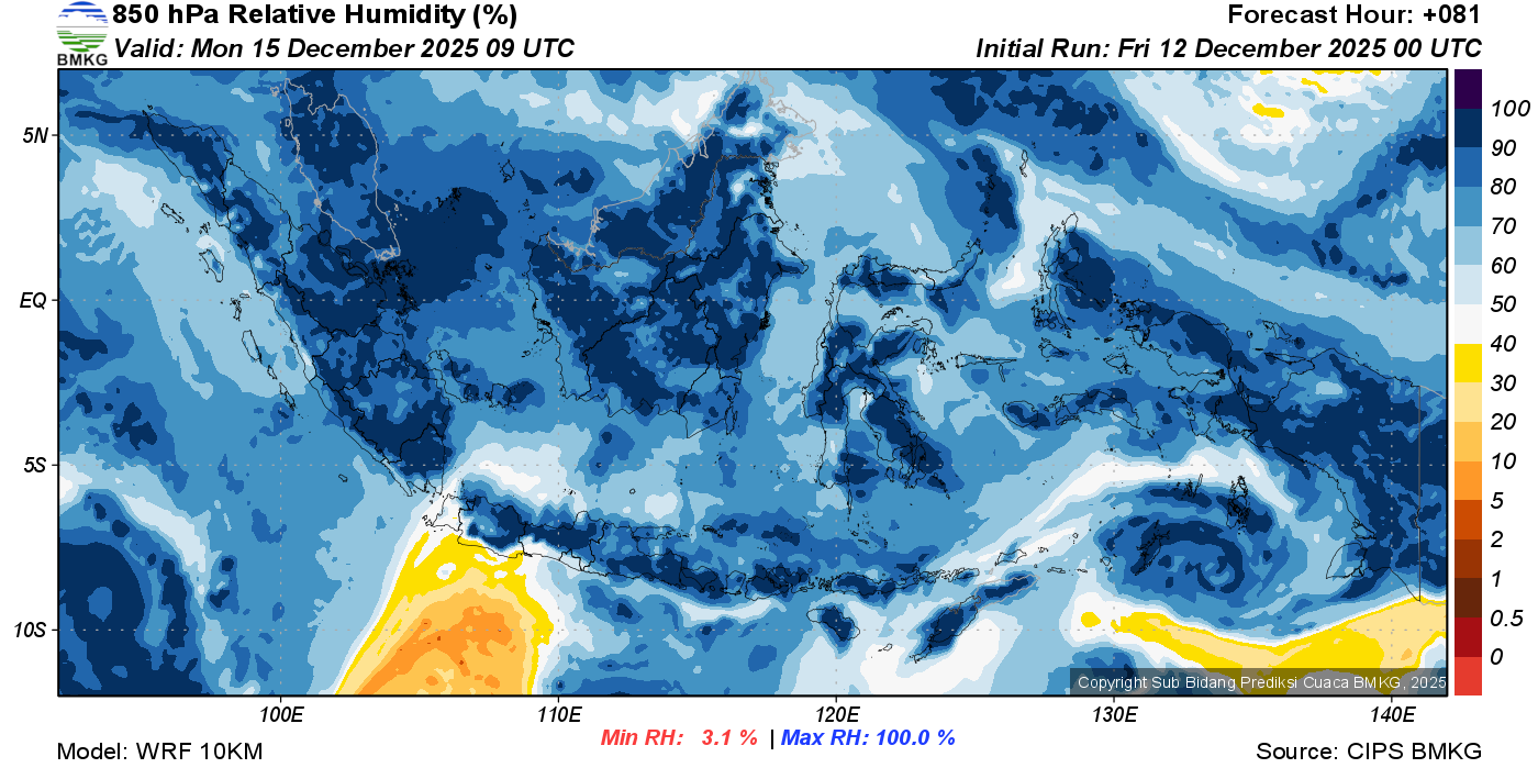 Prediksi Kelembapan 850 hPa NTT