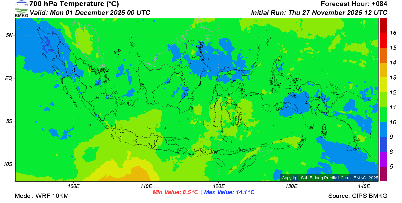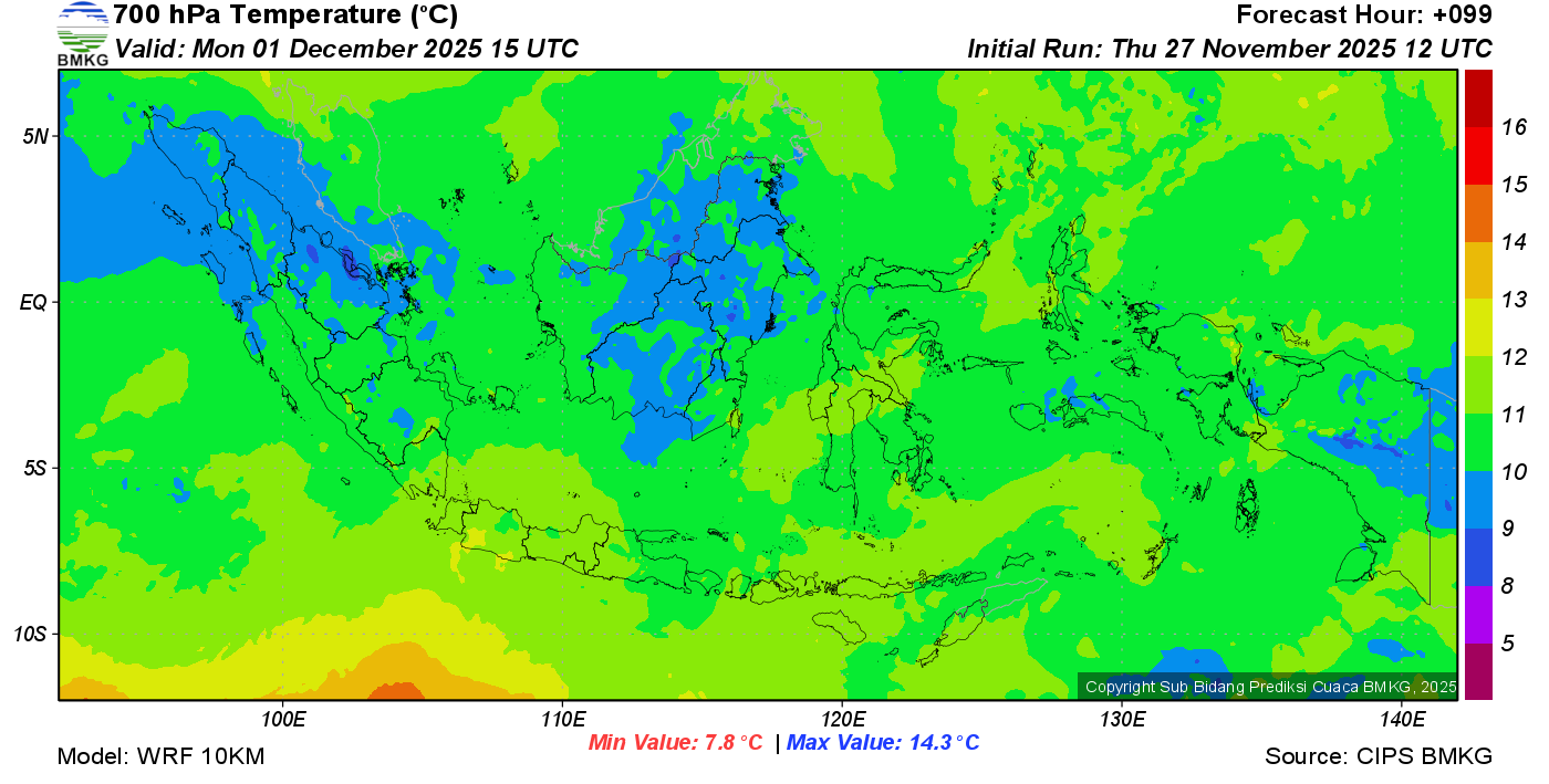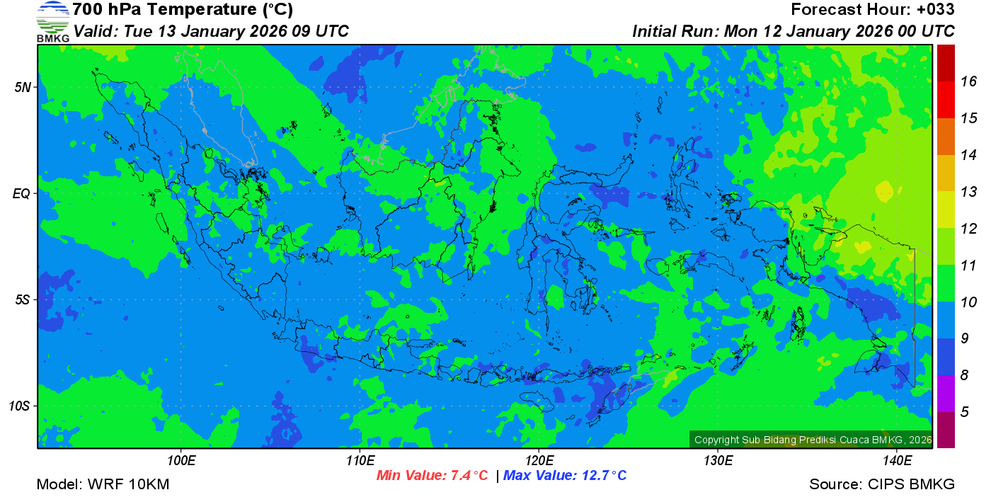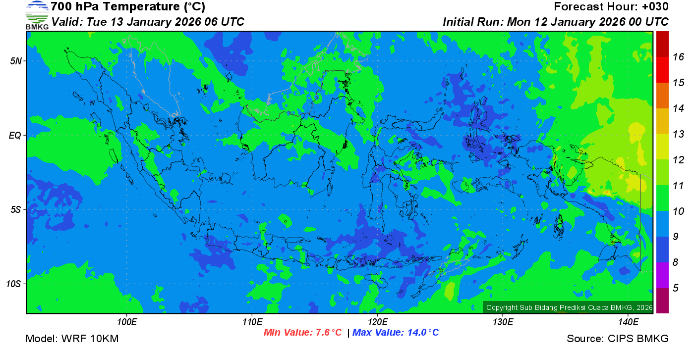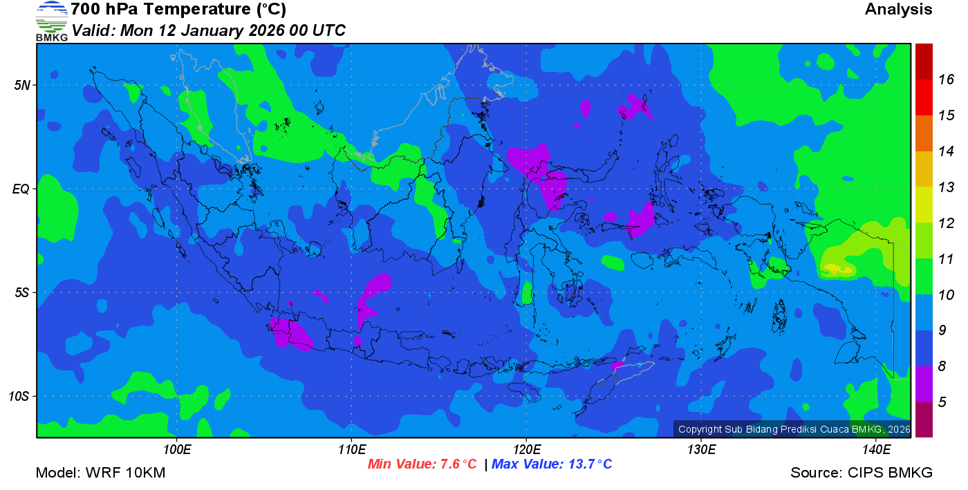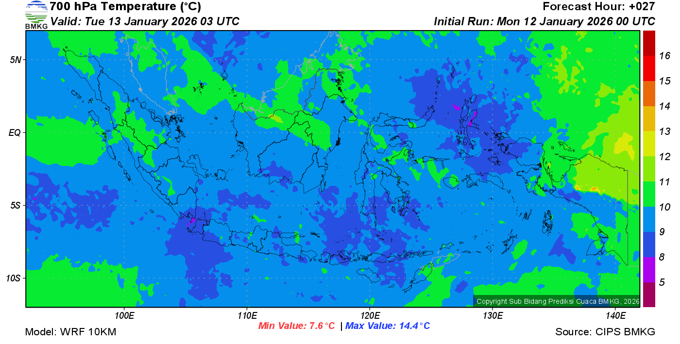 Prediksi Suhu Titik Embun 700 hPa NTT