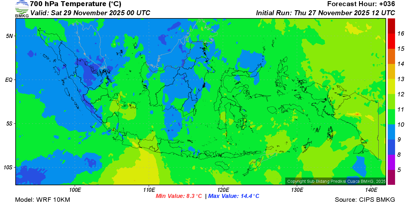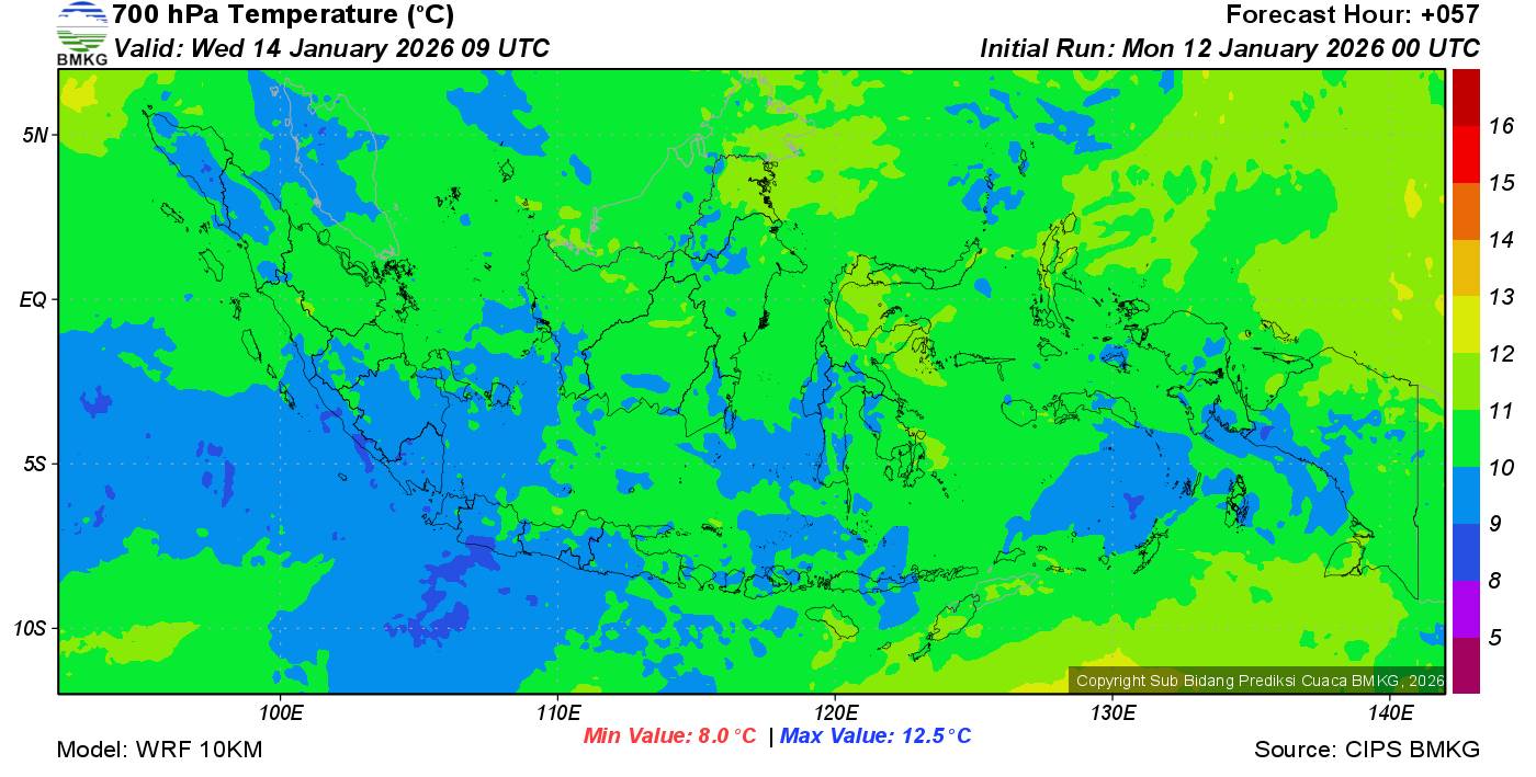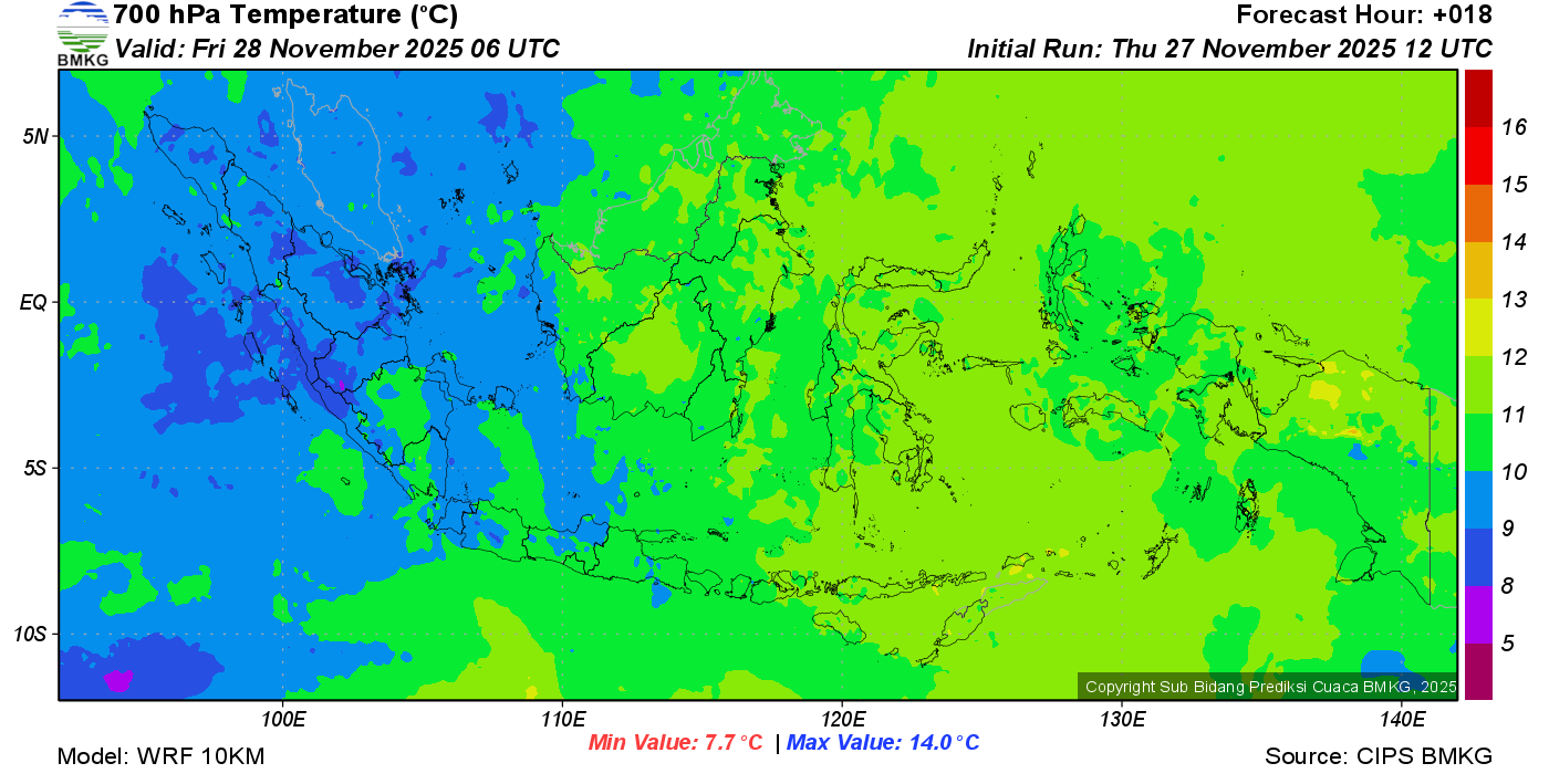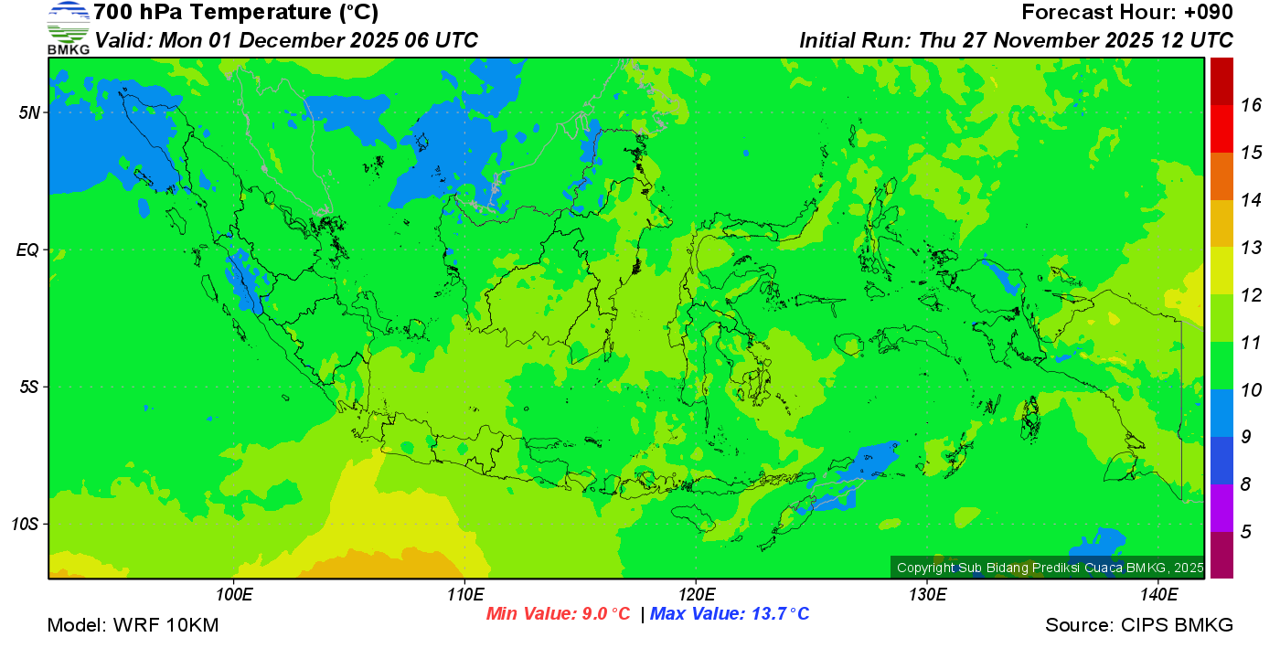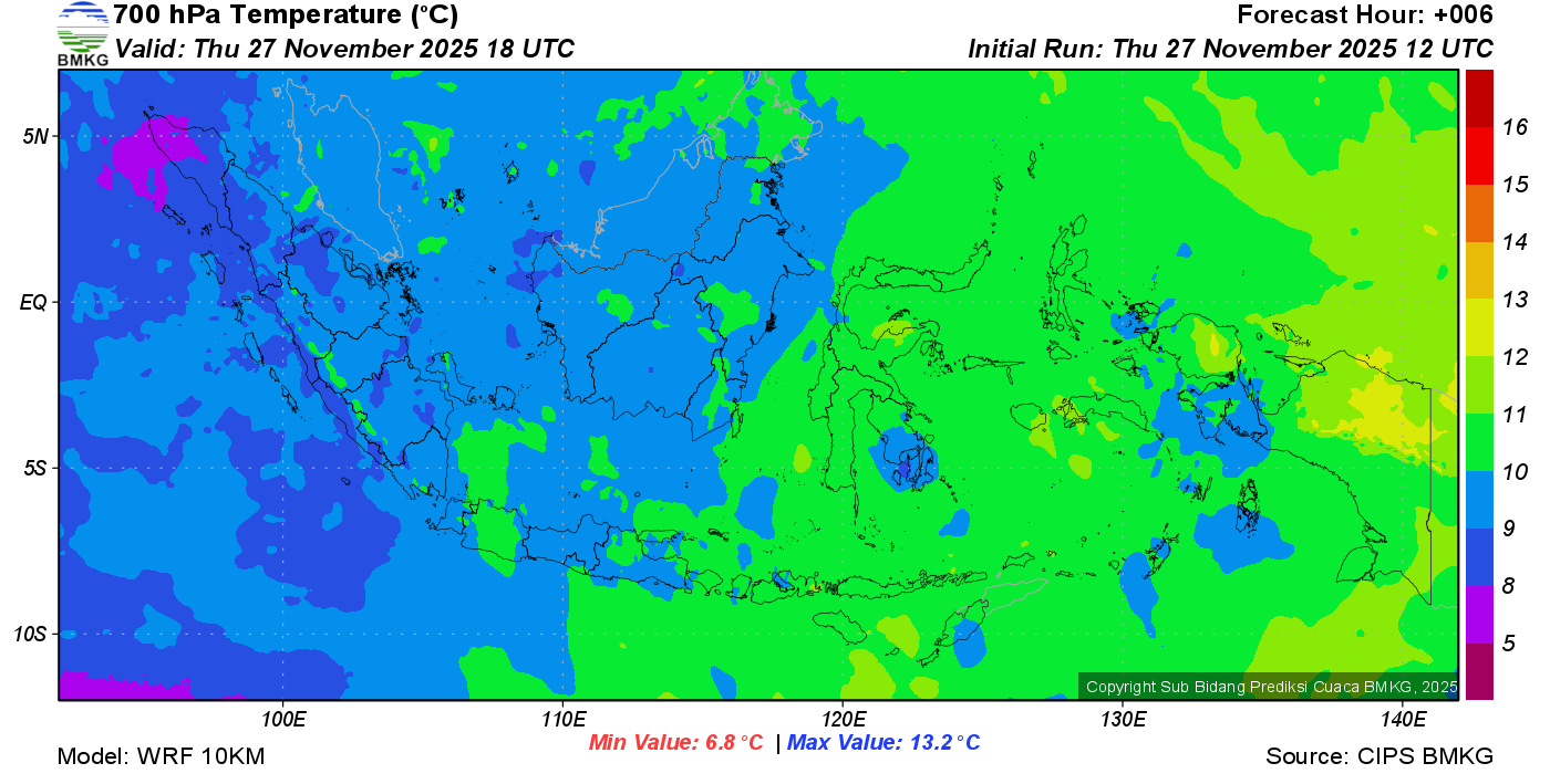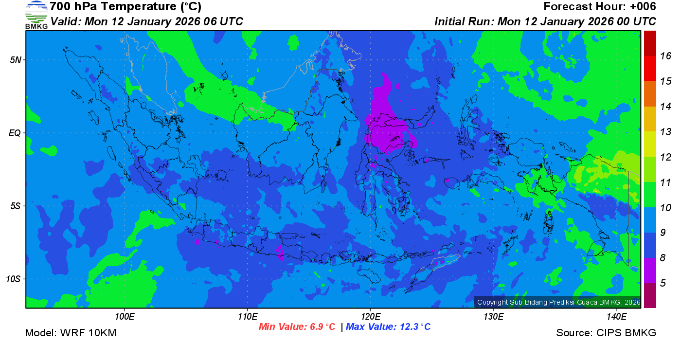 Prediksi Suhu Titik Embun 700 hPa NTT