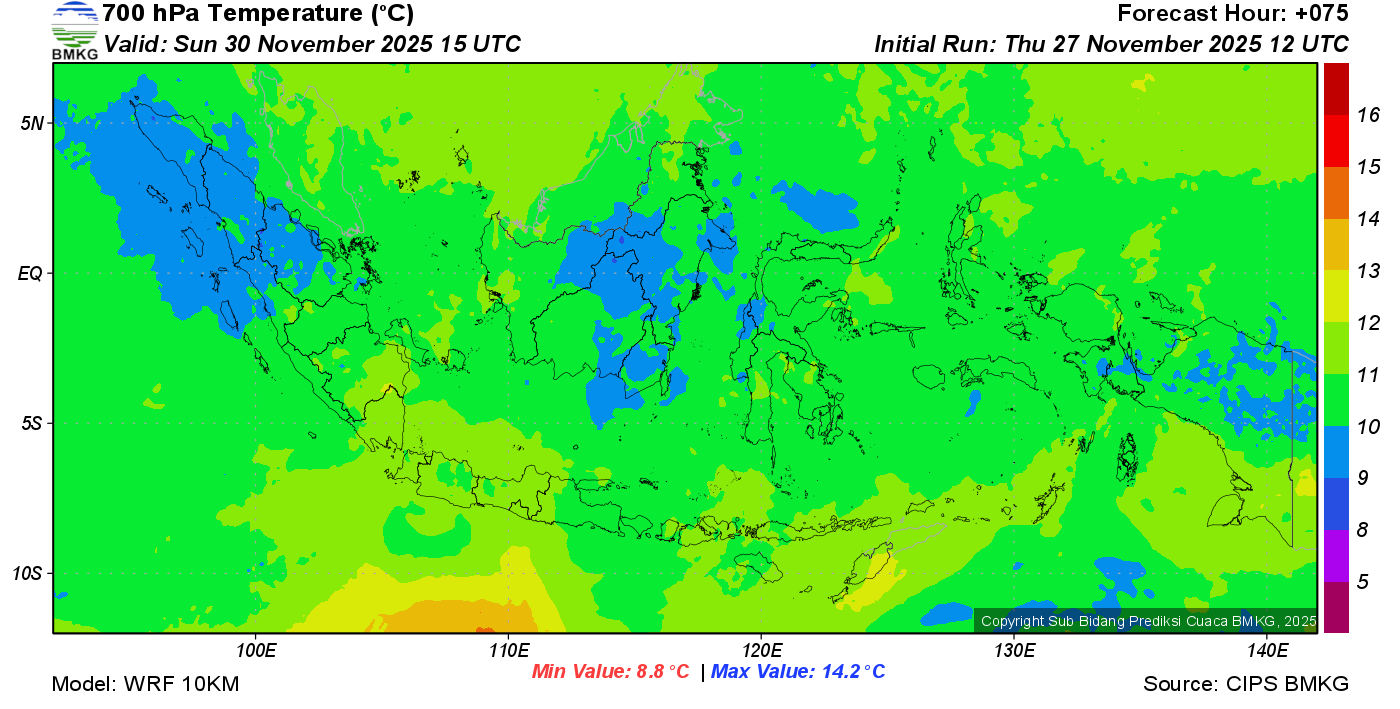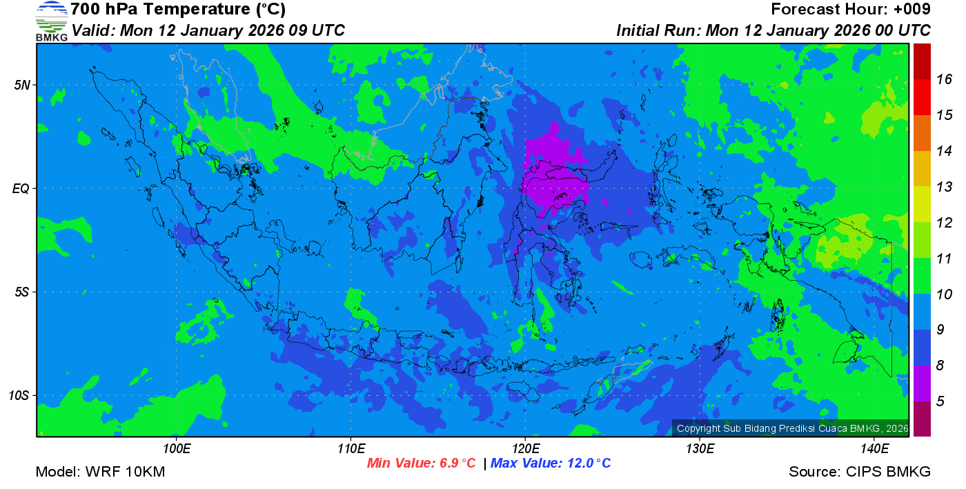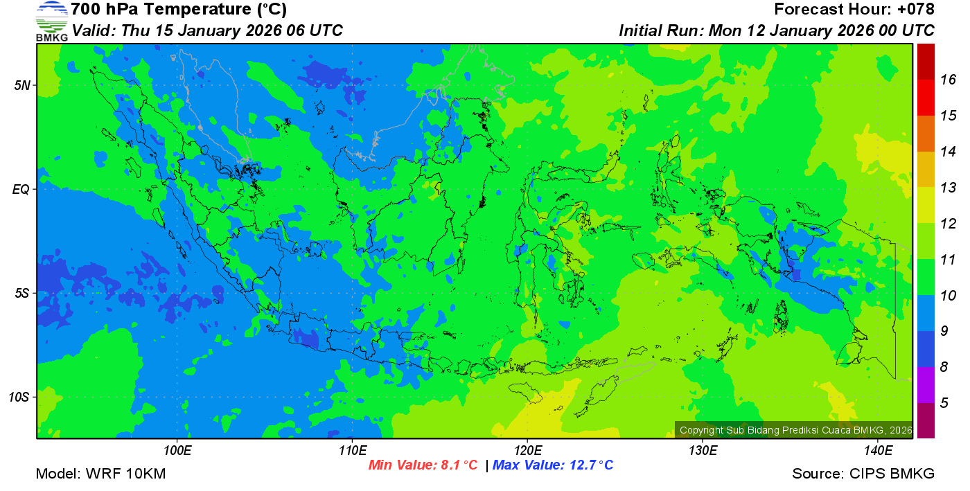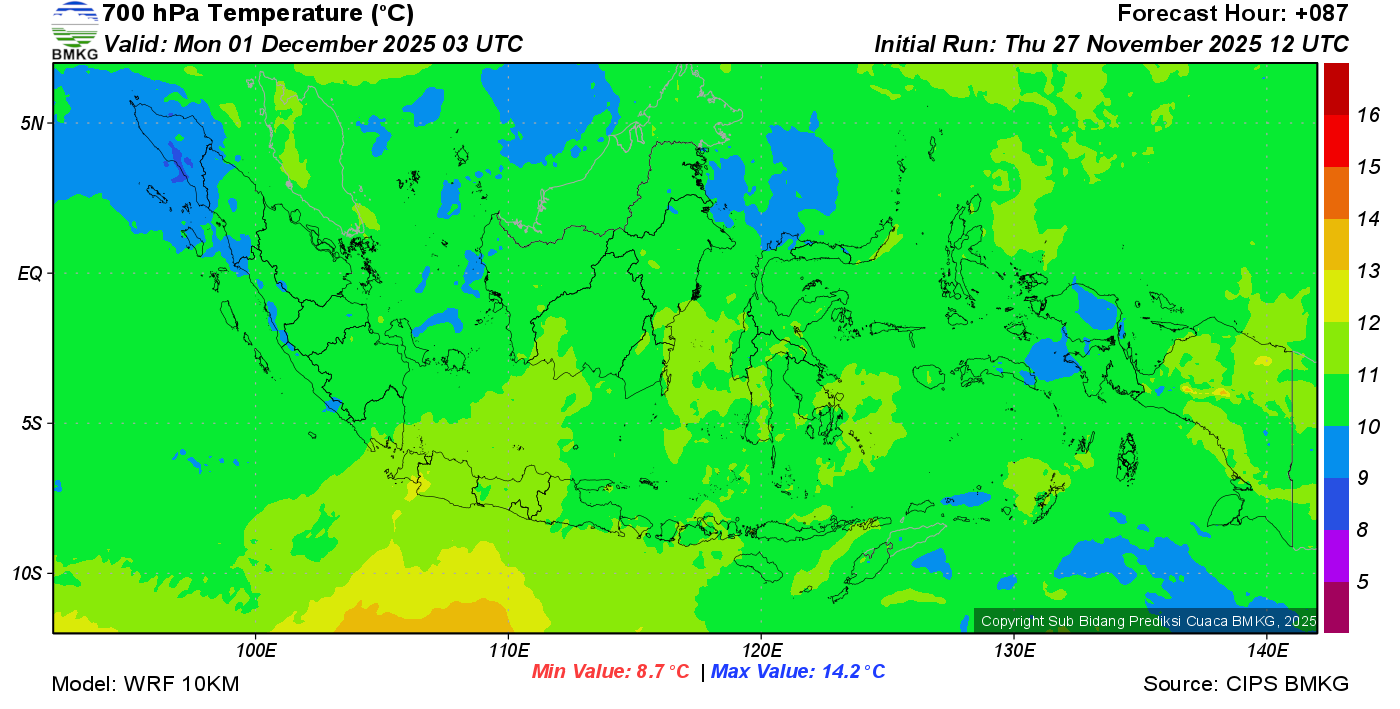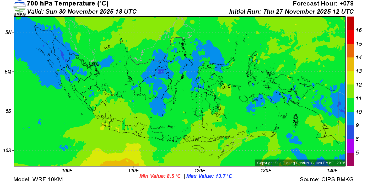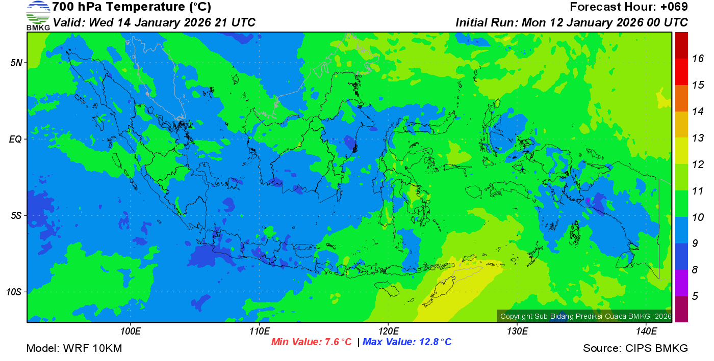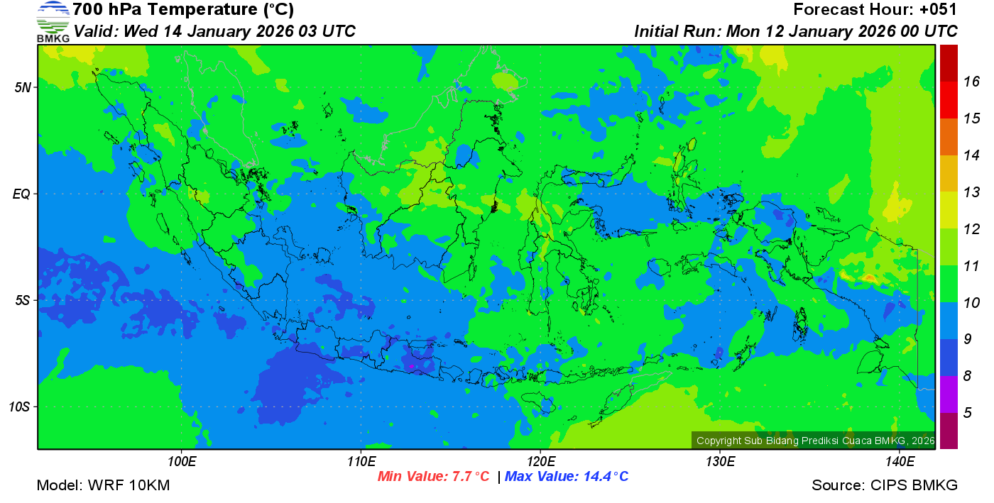 Prediksi Suhu Titik Embun 700 hPa NTT