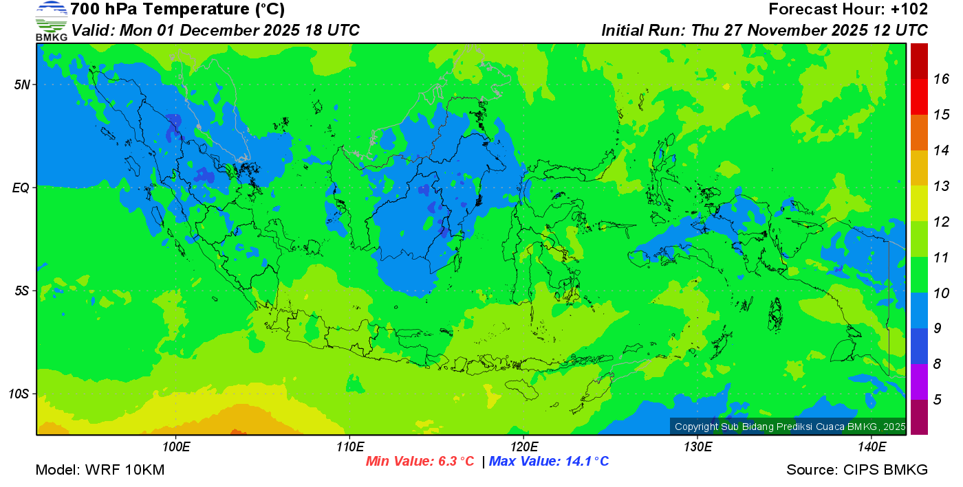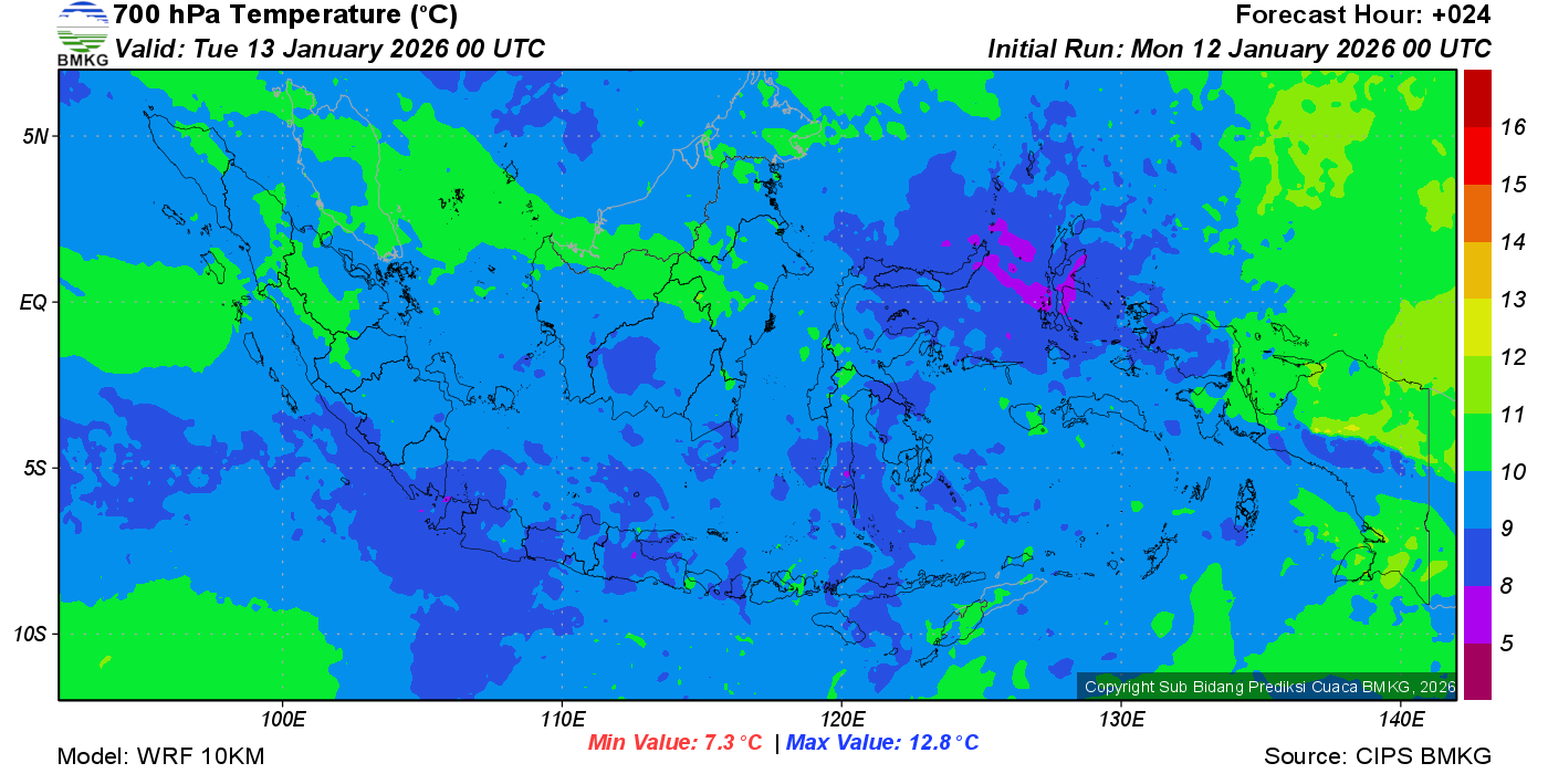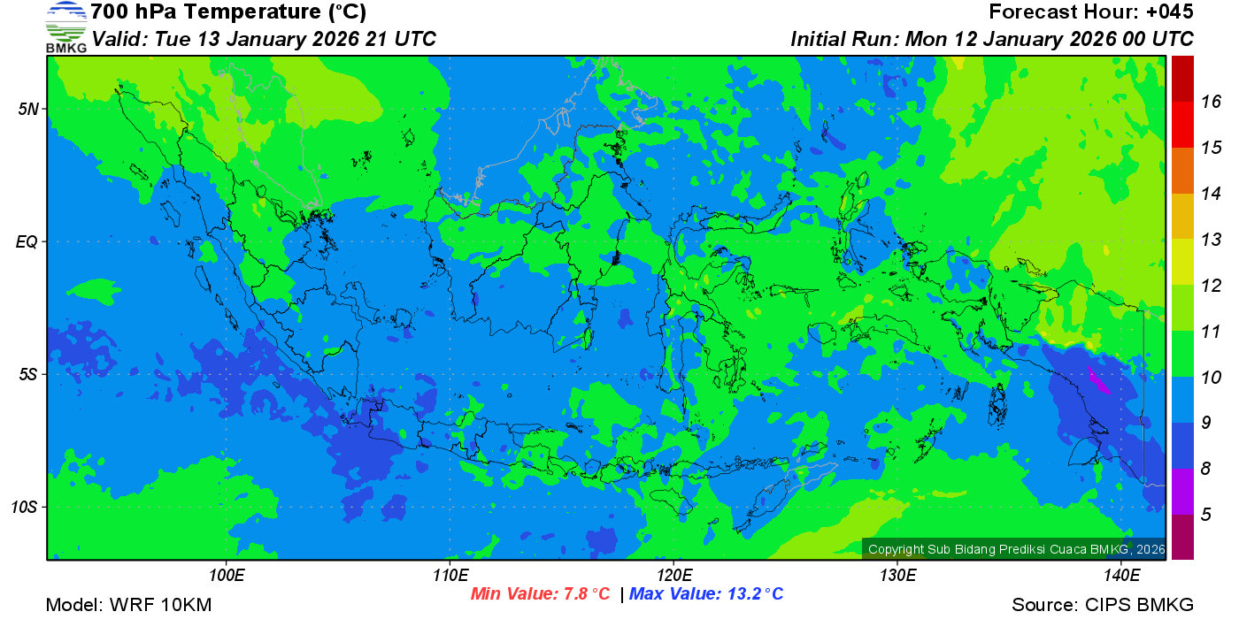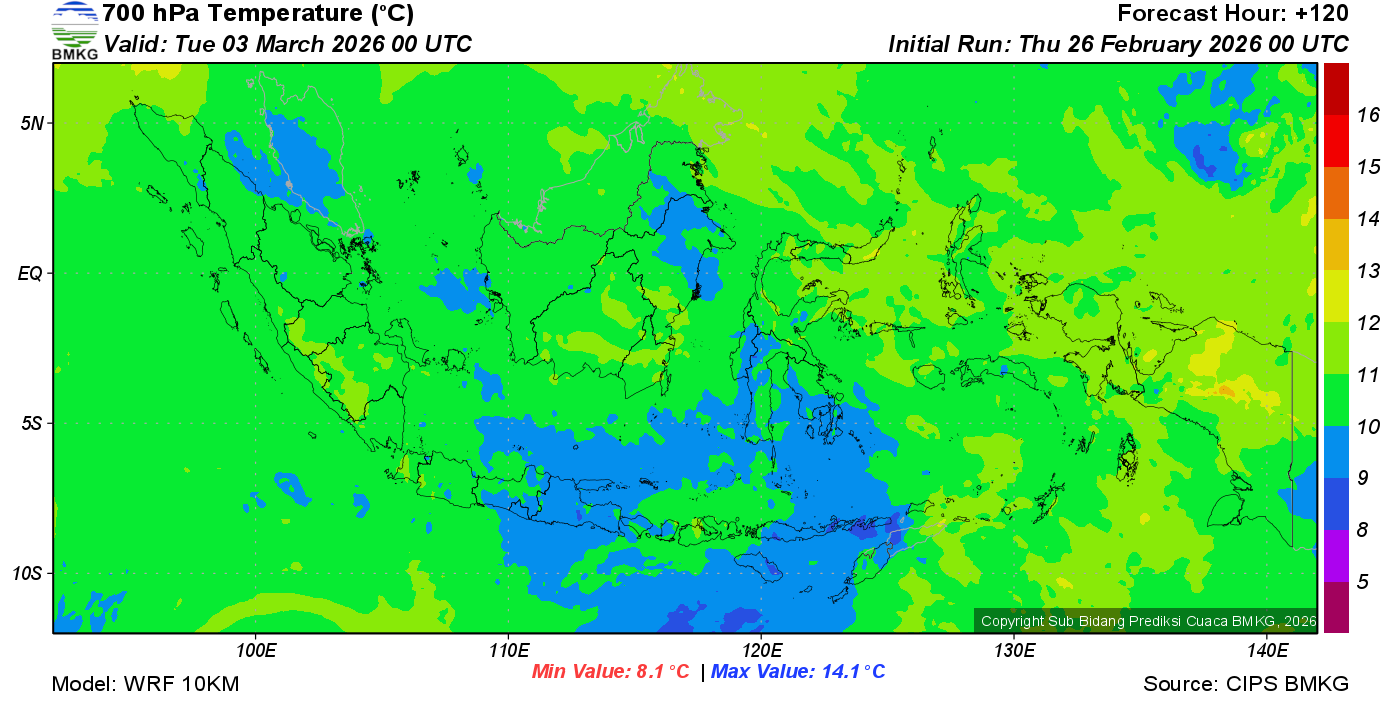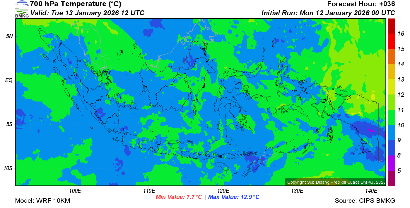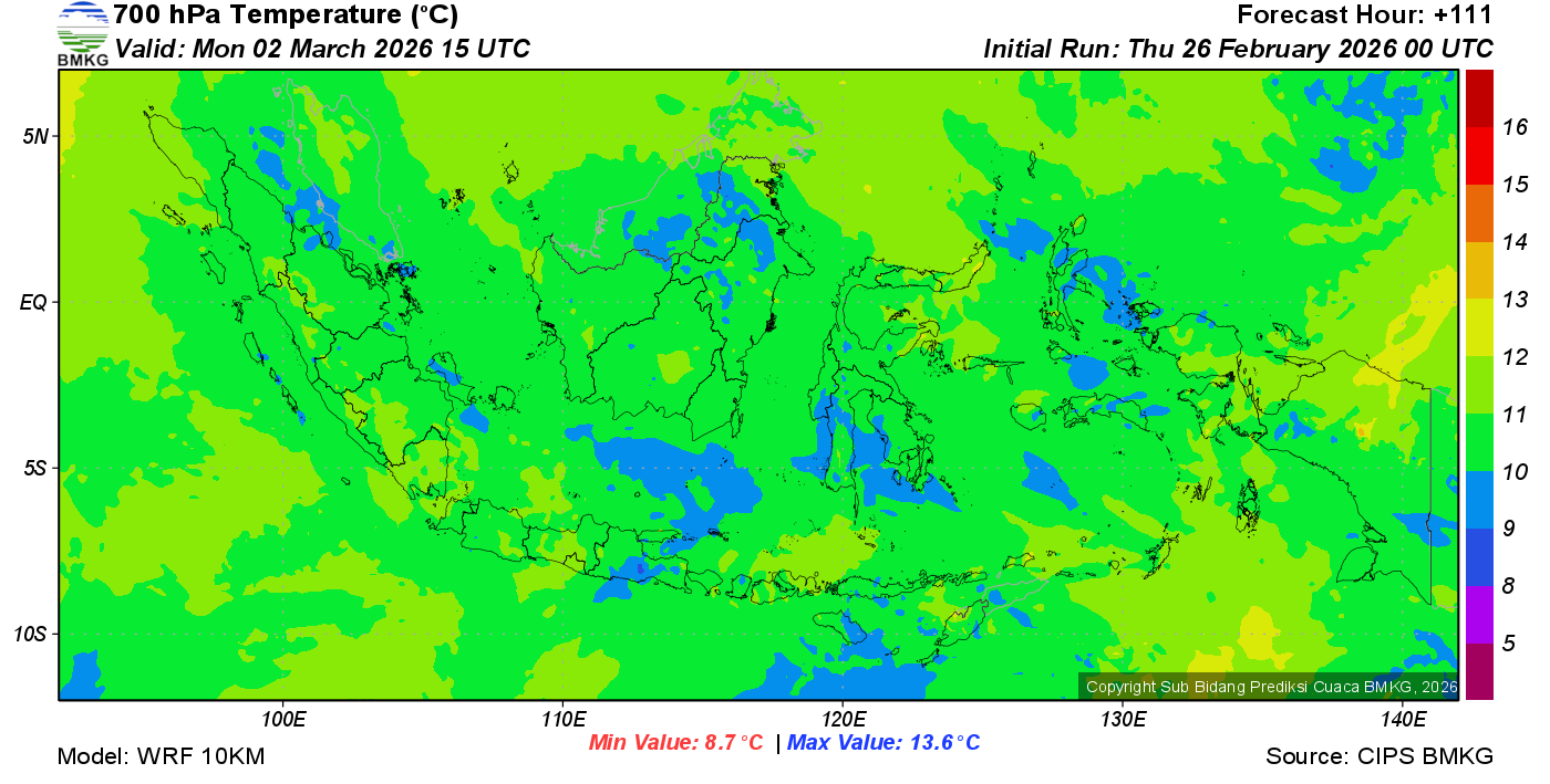 Prediksi Suhu Titik Embun 700 hPa NTT