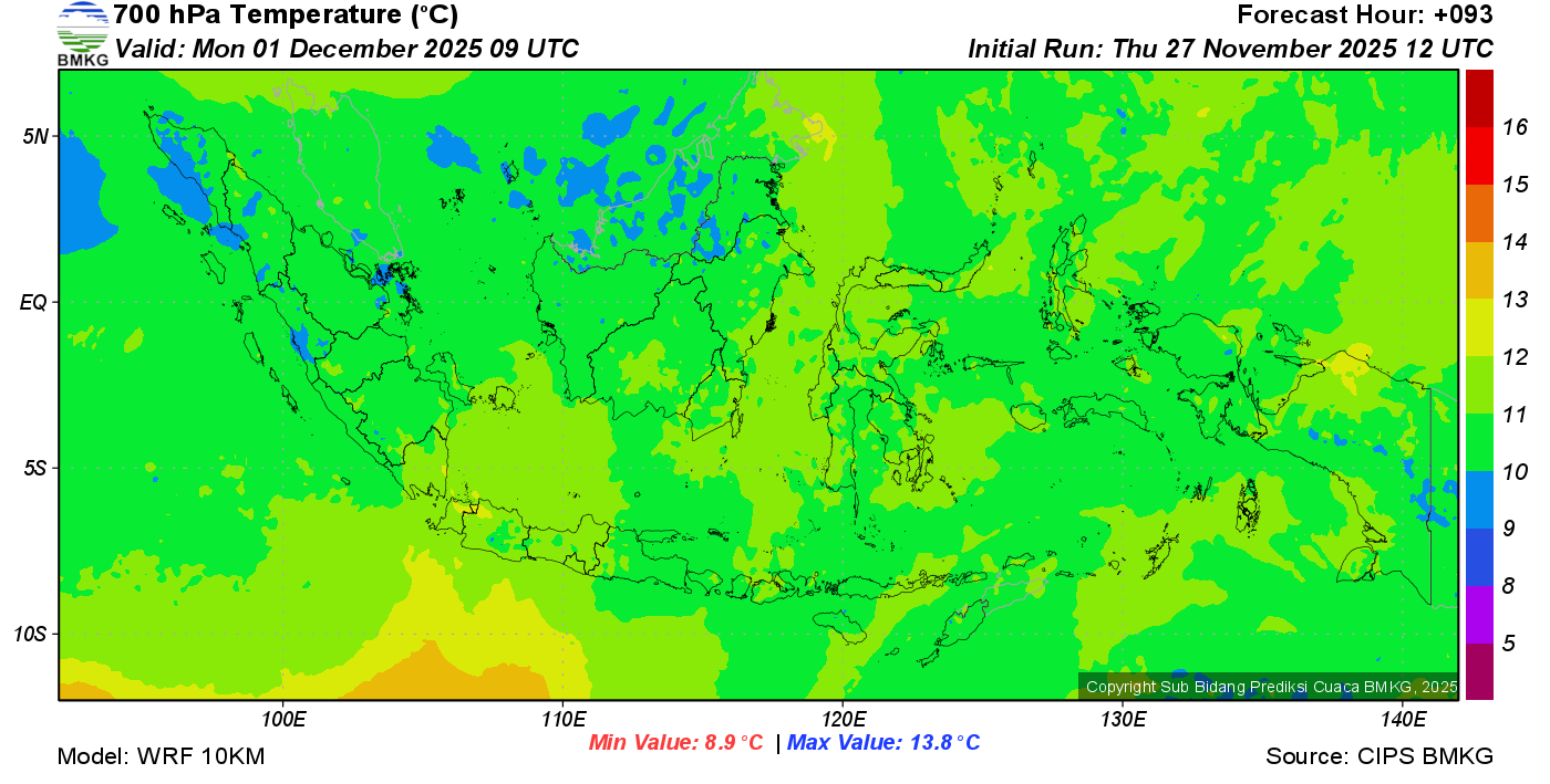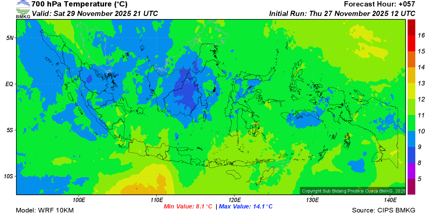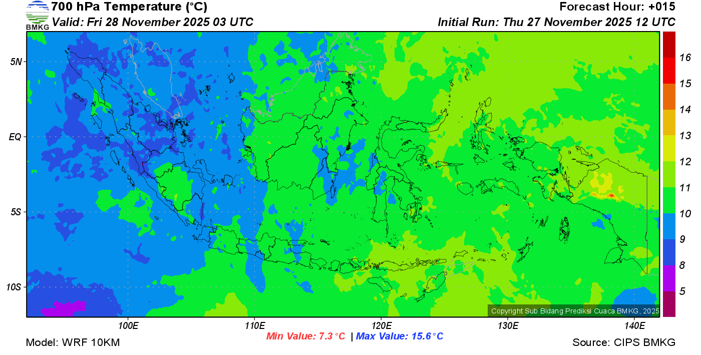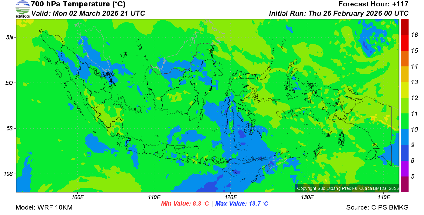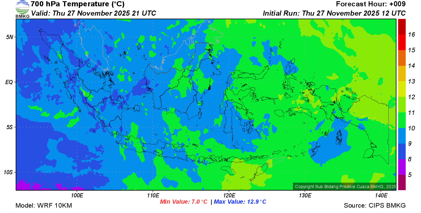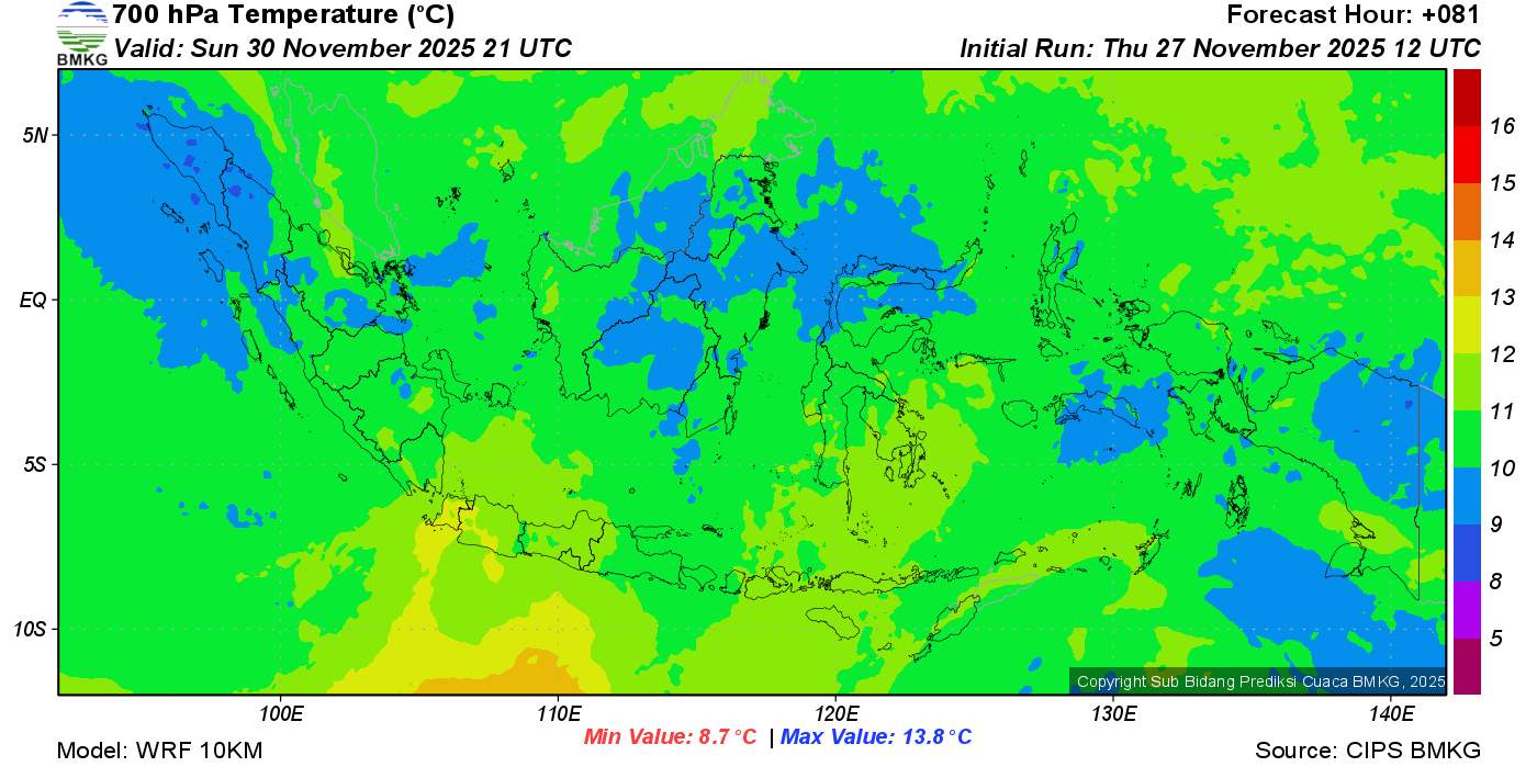 Prediksi Suhu Titik Embun 700 hPa NTT