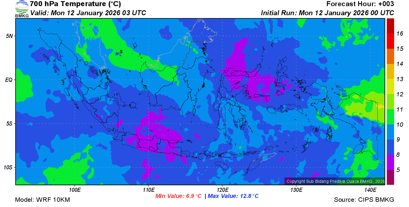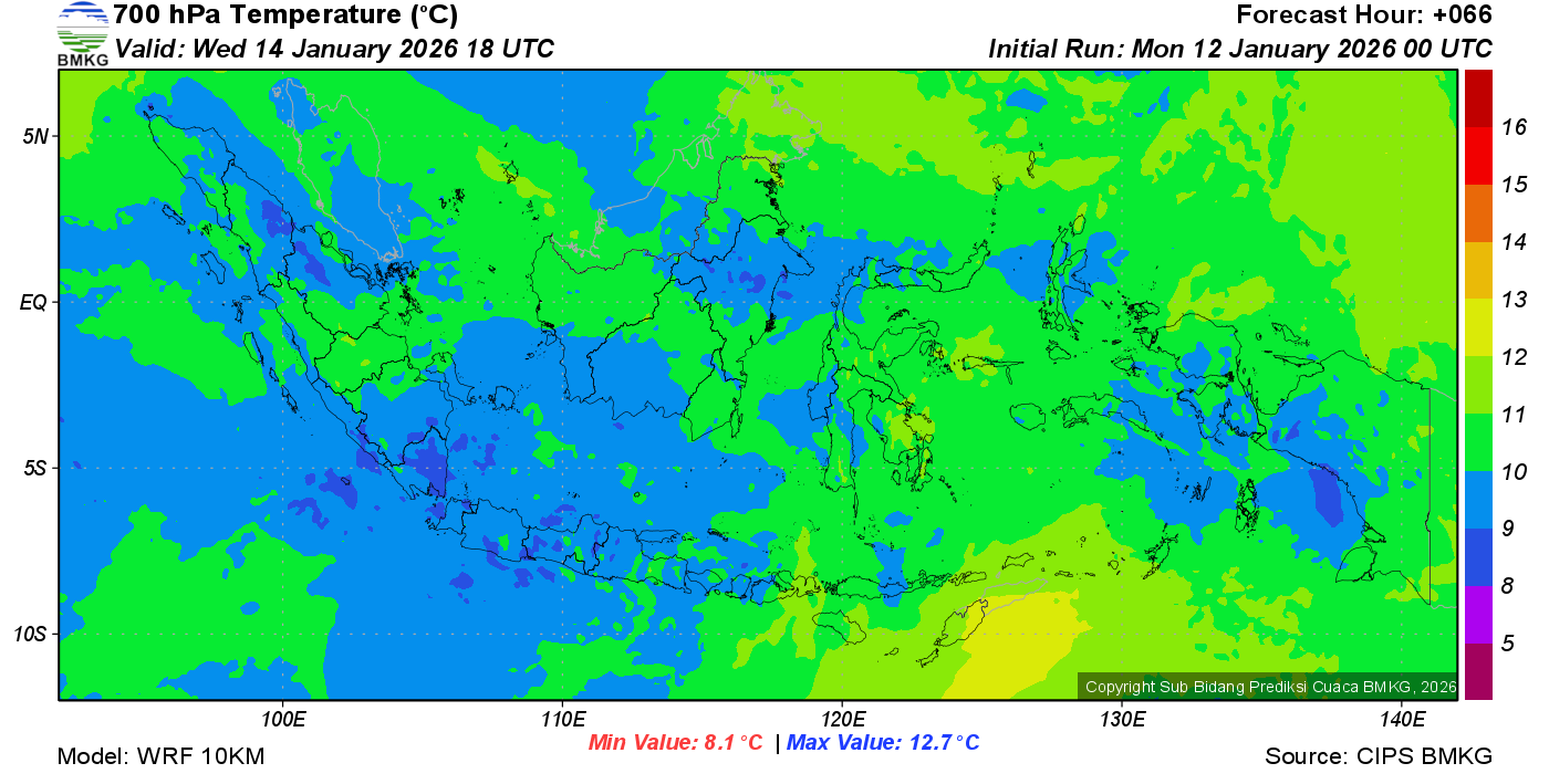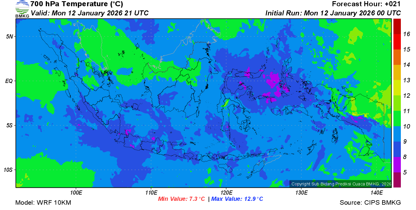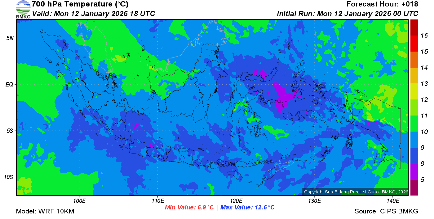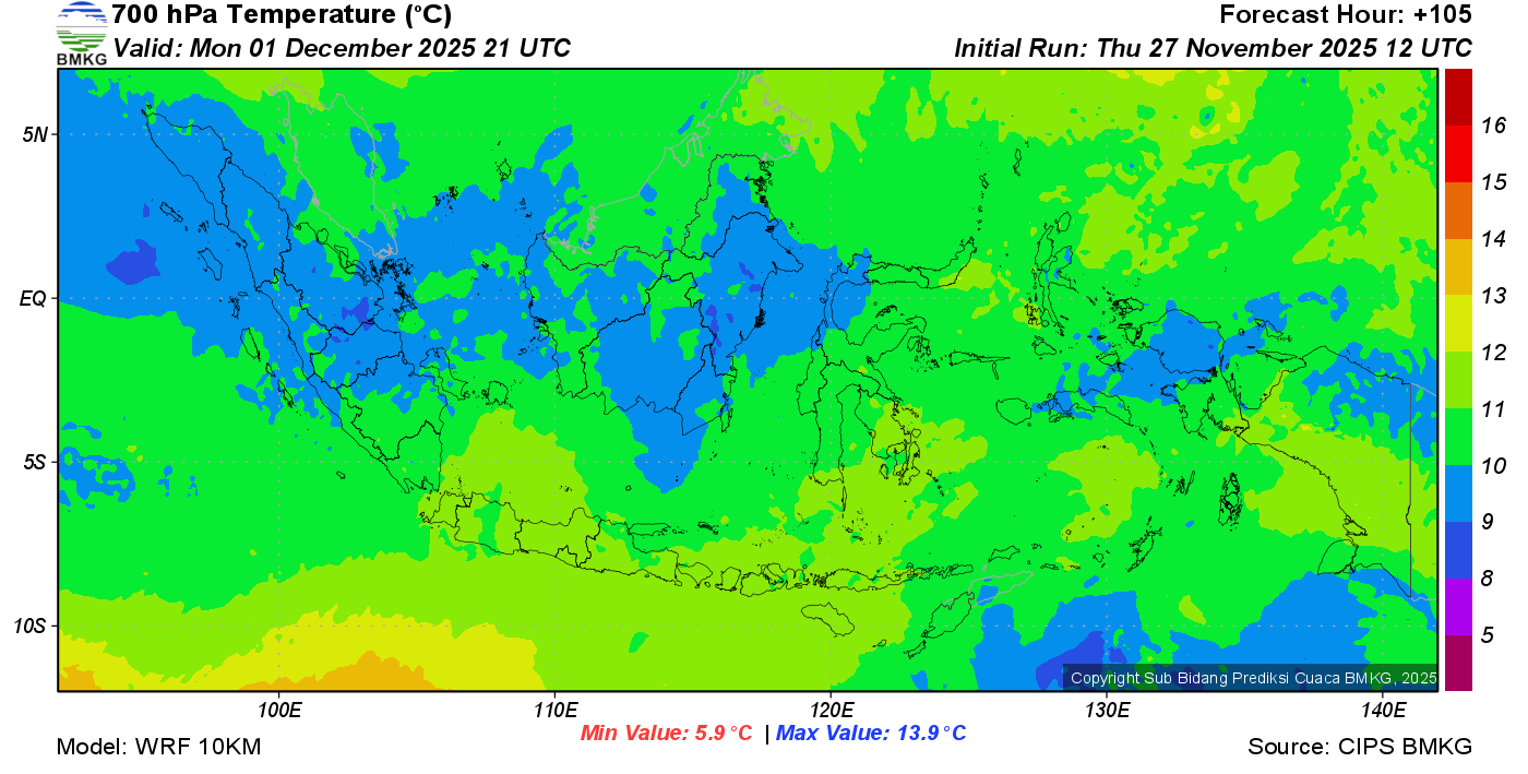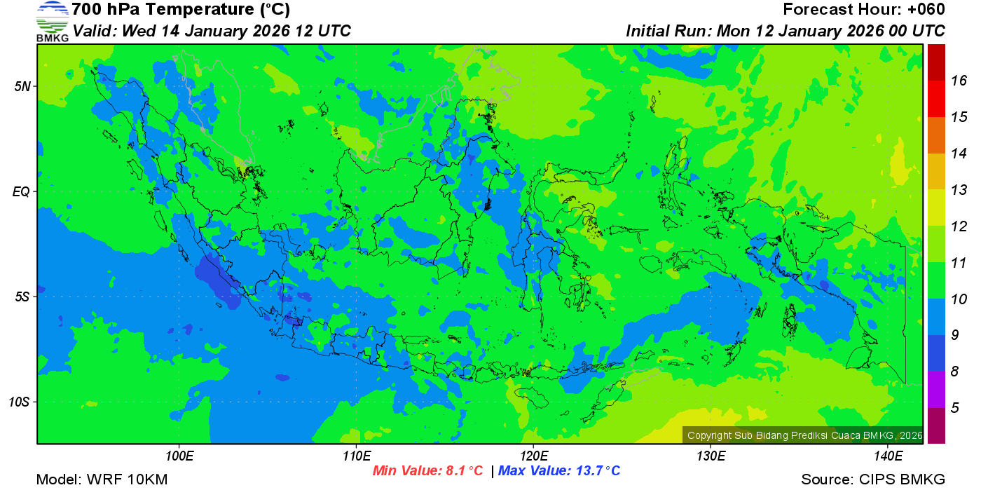Prediksi Suhu Titik Embun 700 hPa NTT
