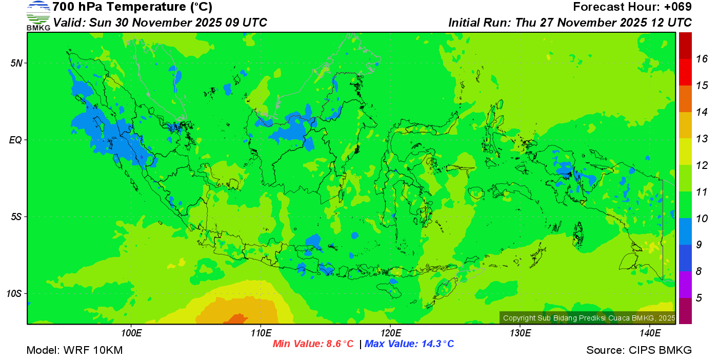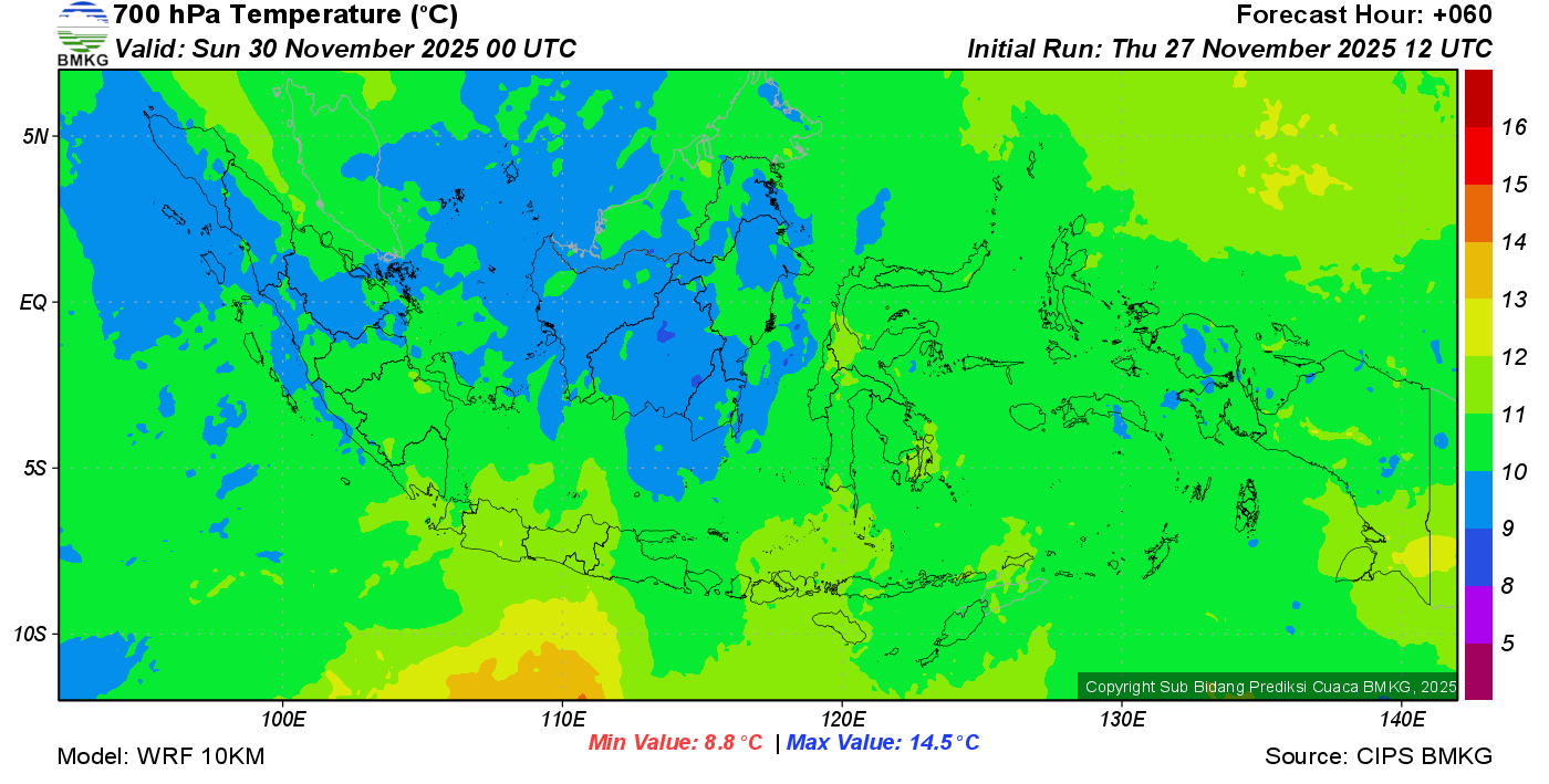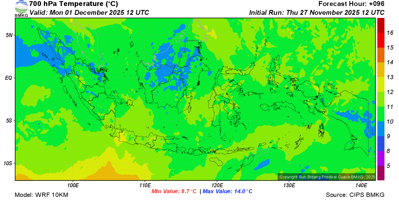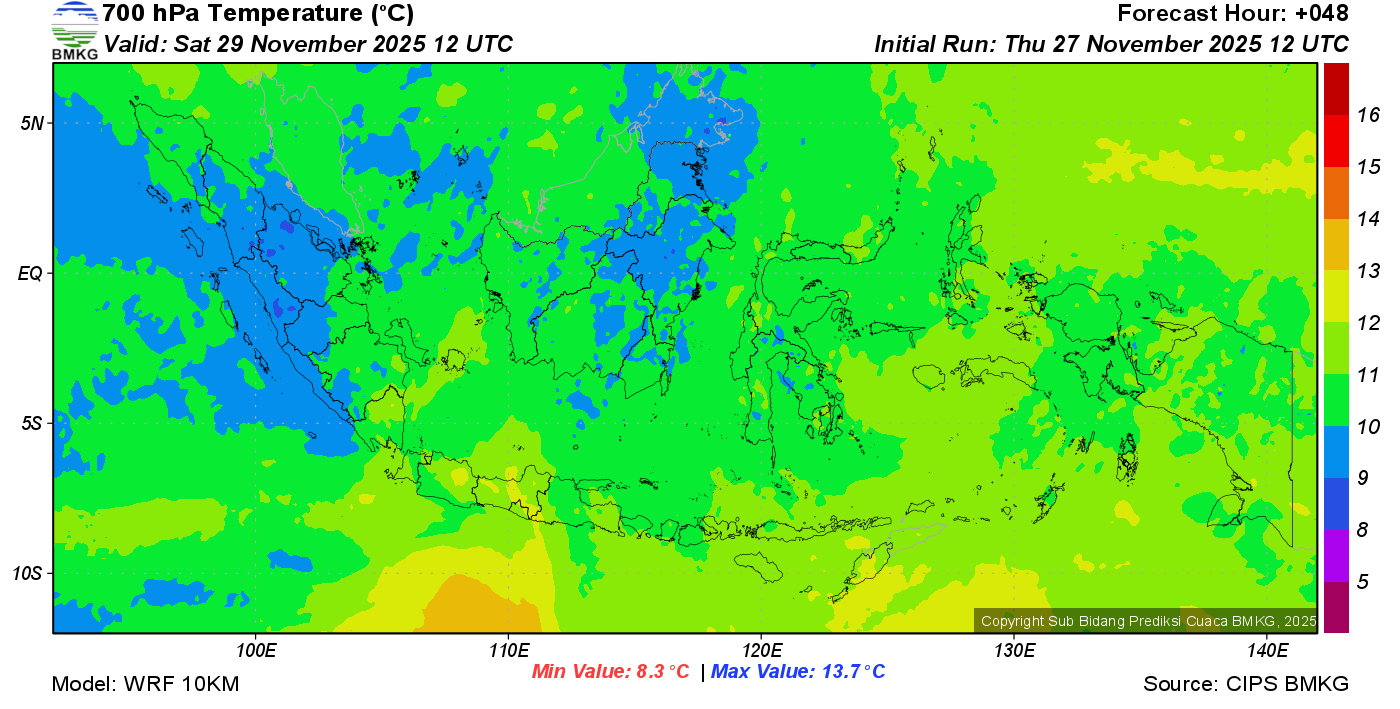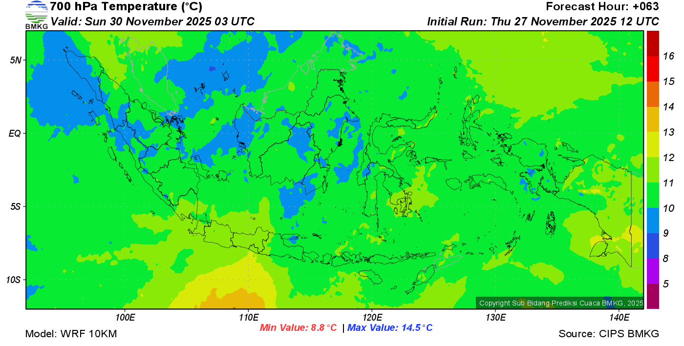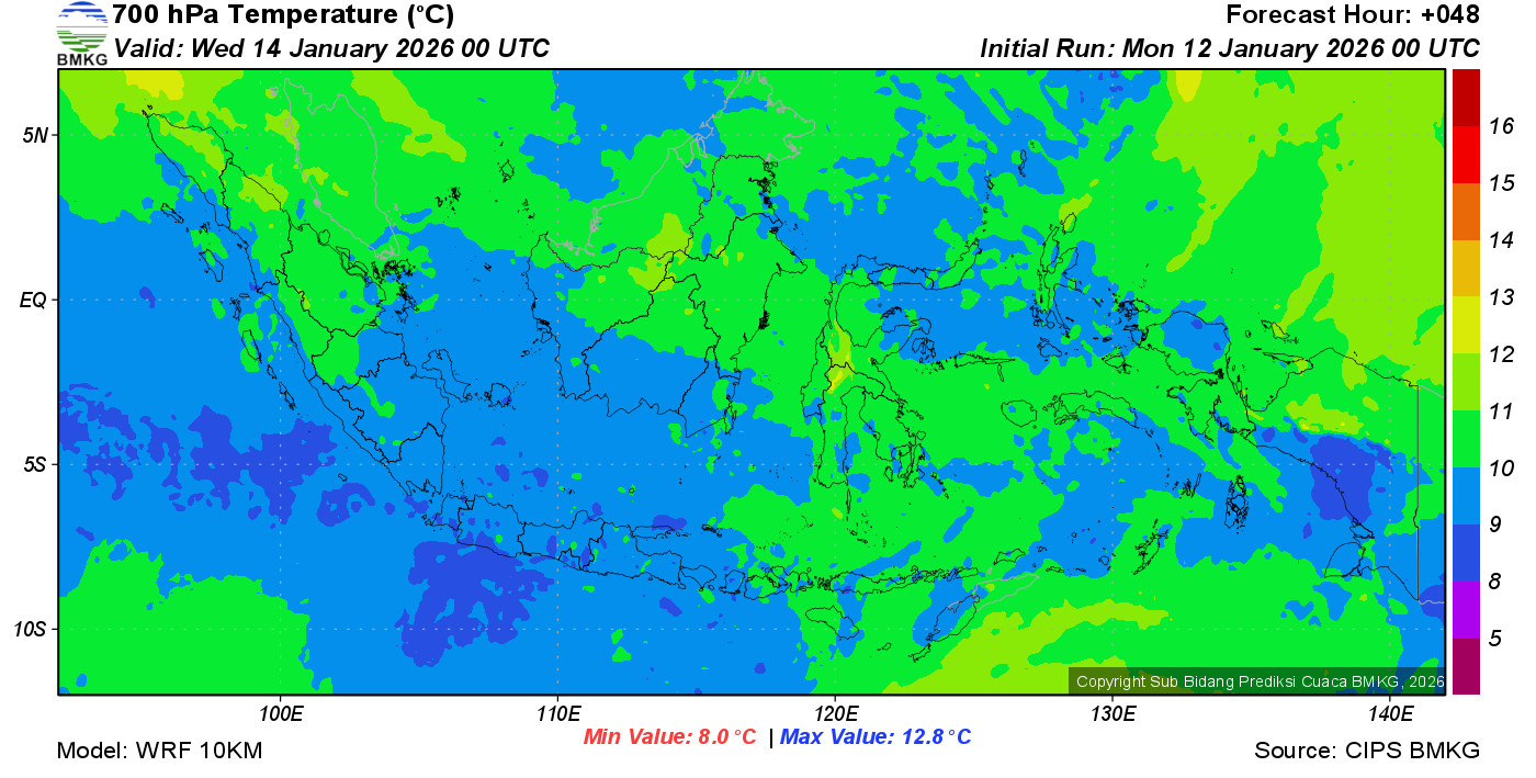 Prediksi Suhu Titik Embun 700 hPa NTT