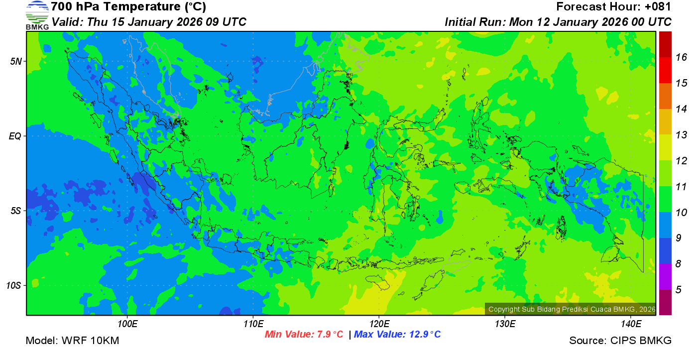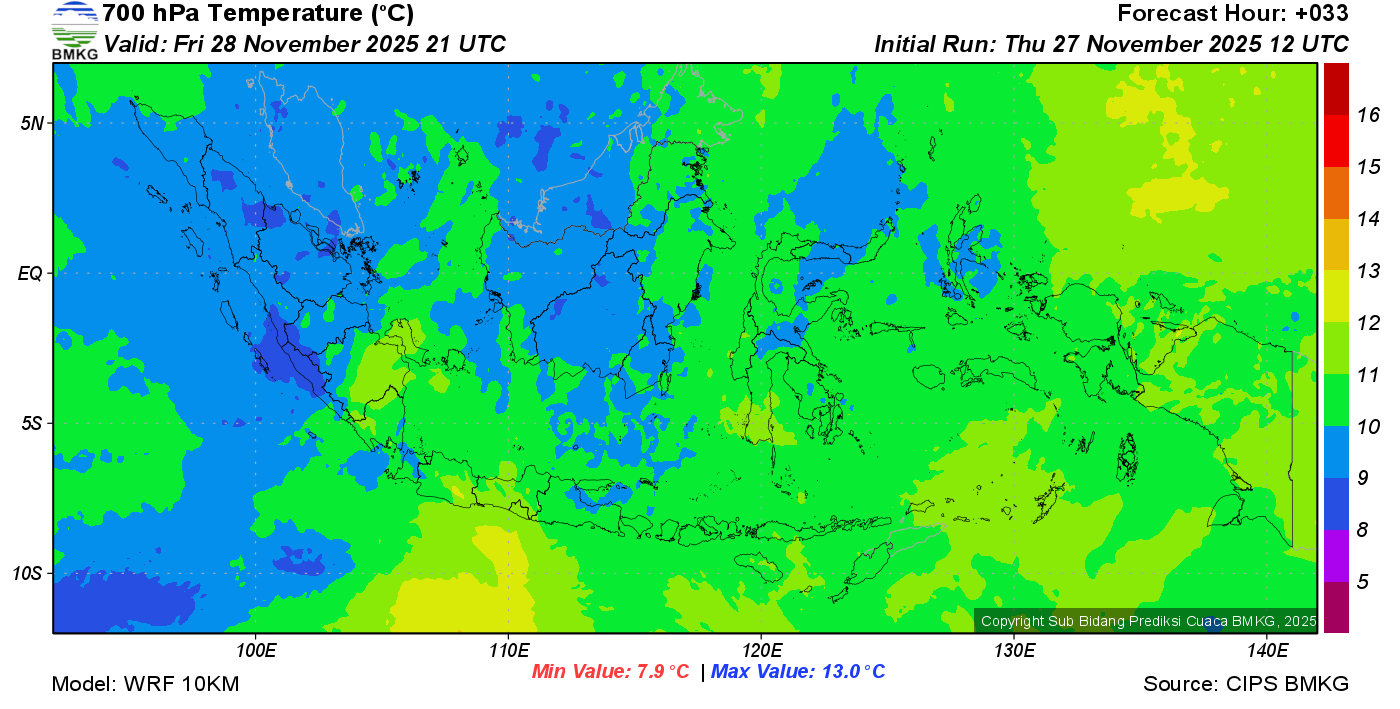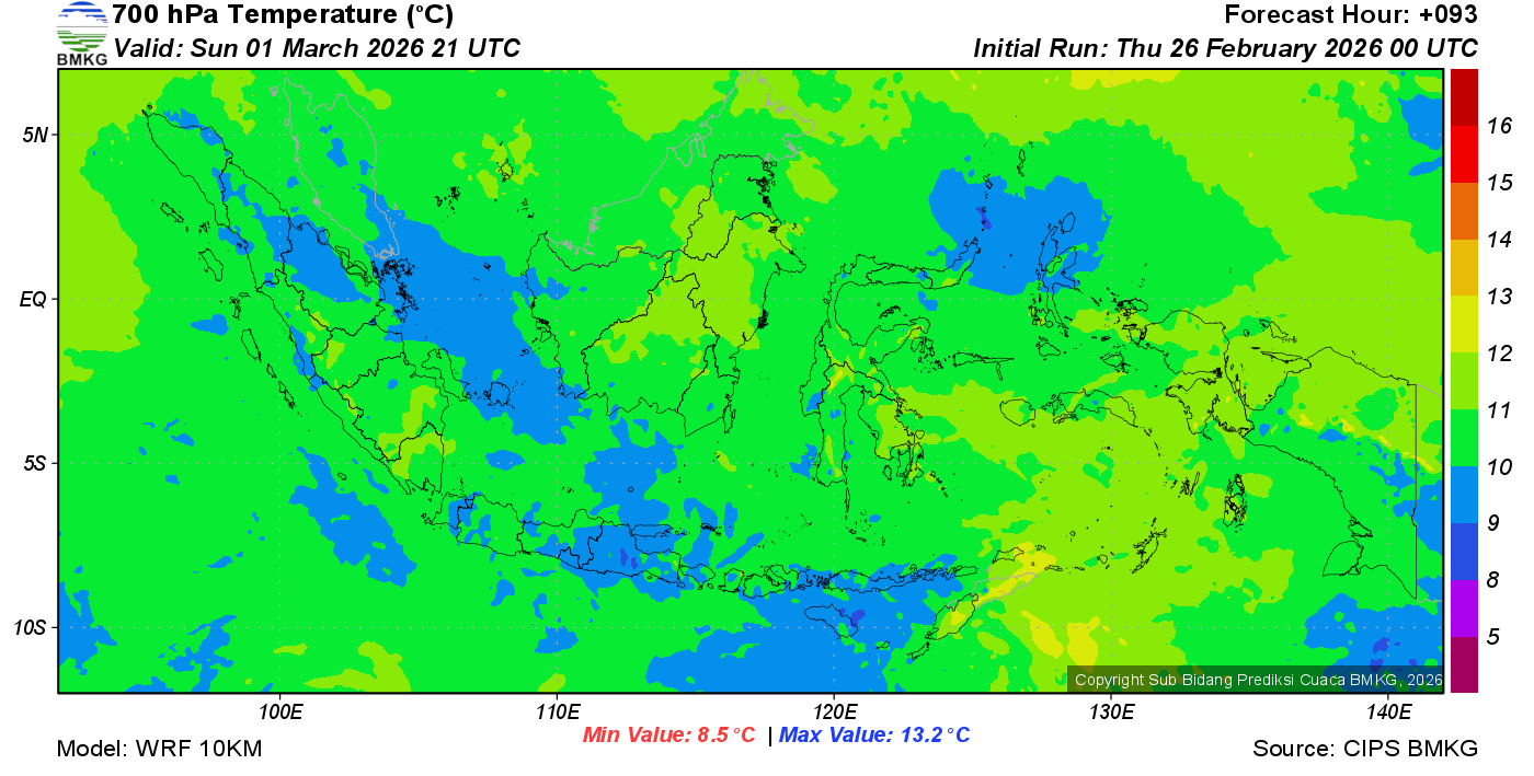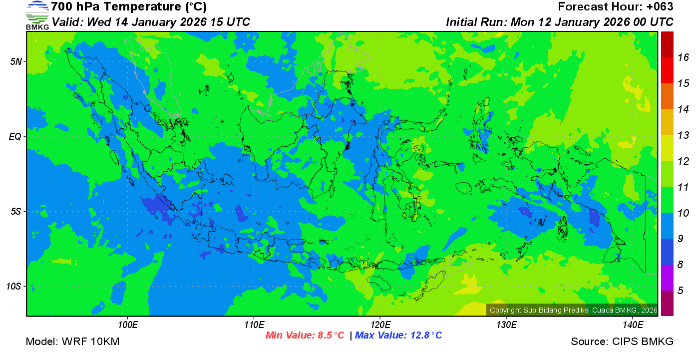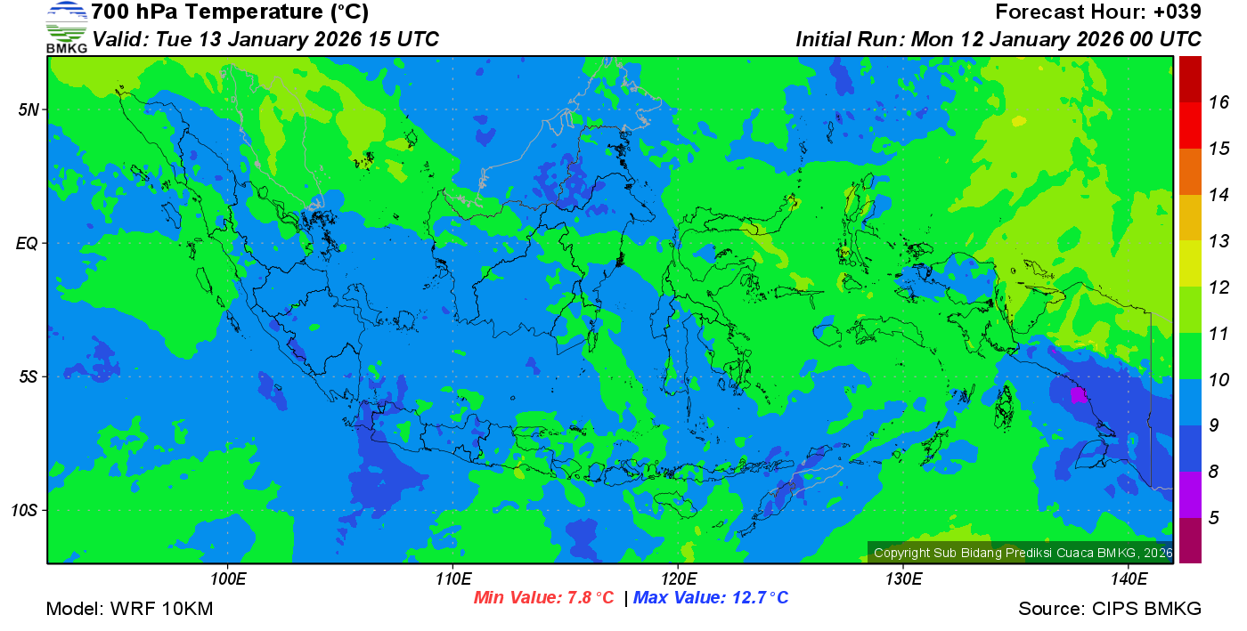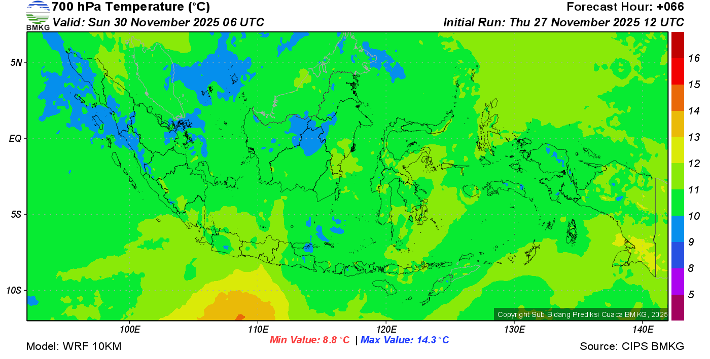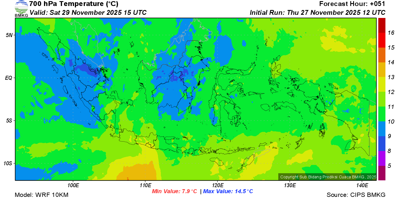 Prediksi Suhu Titik Embun 700 hPa NTT