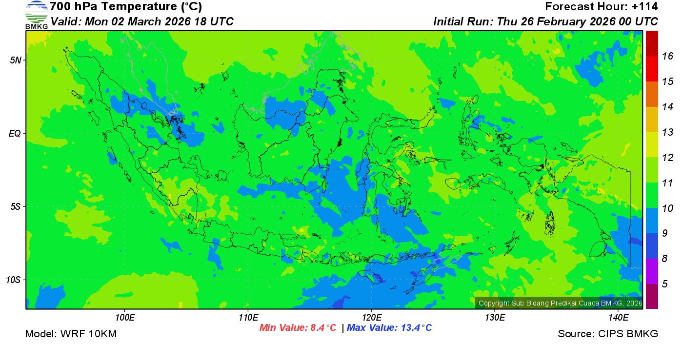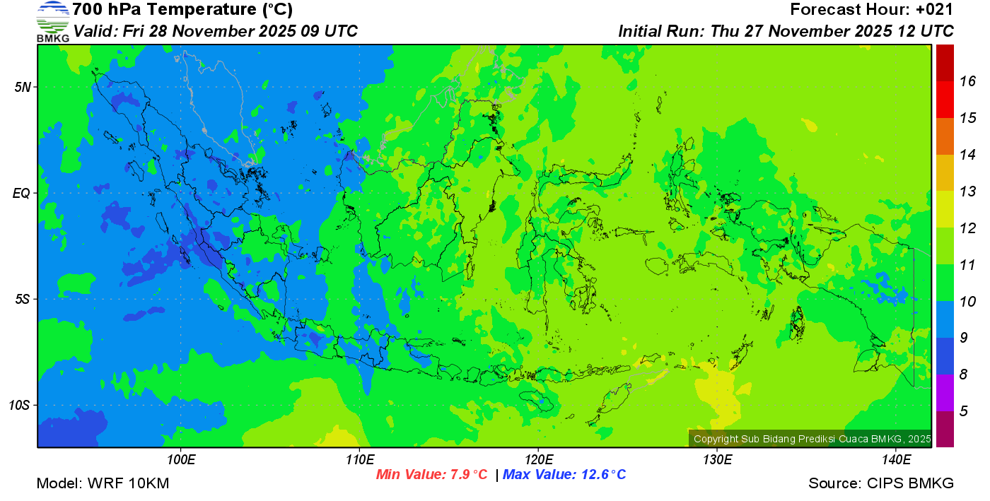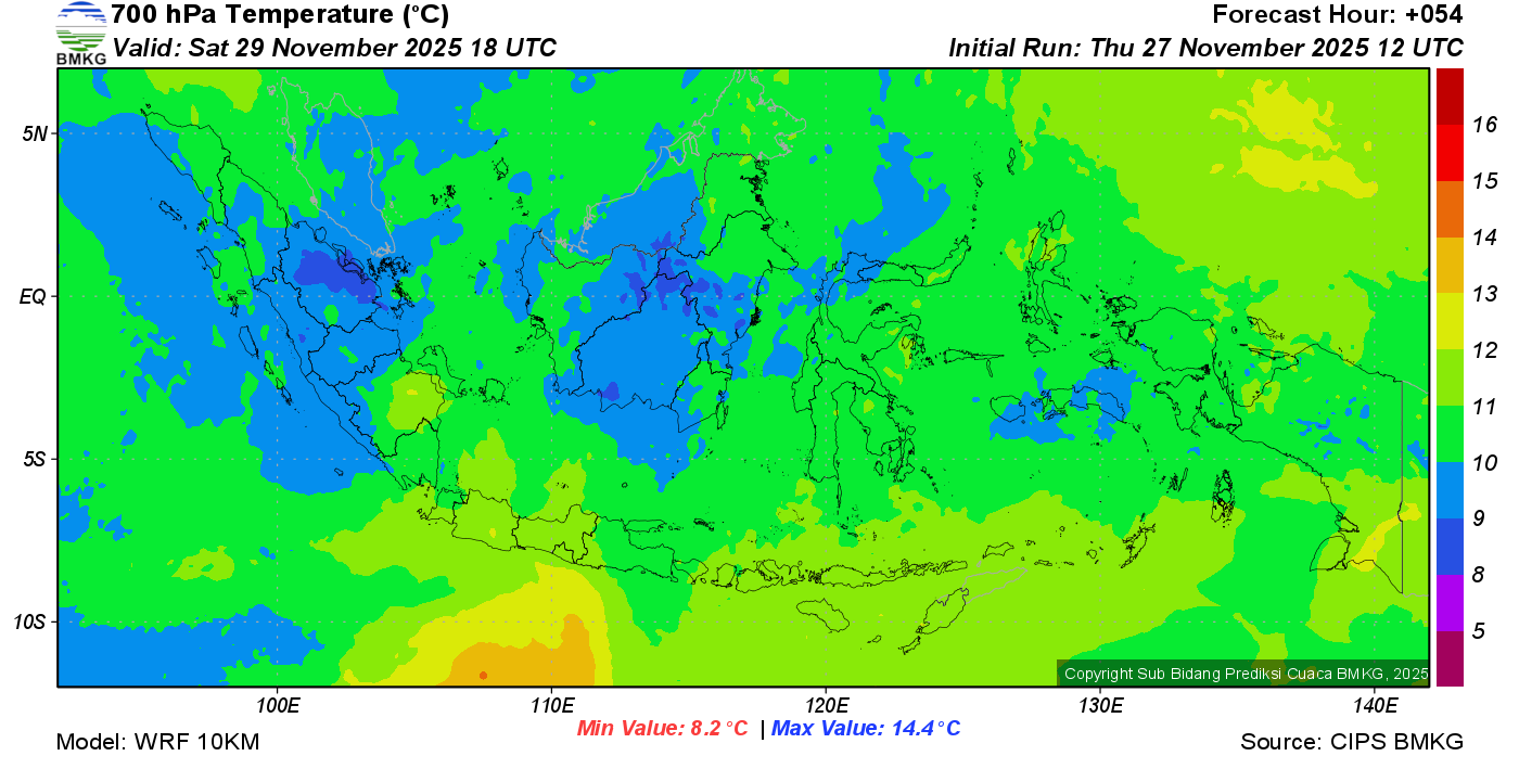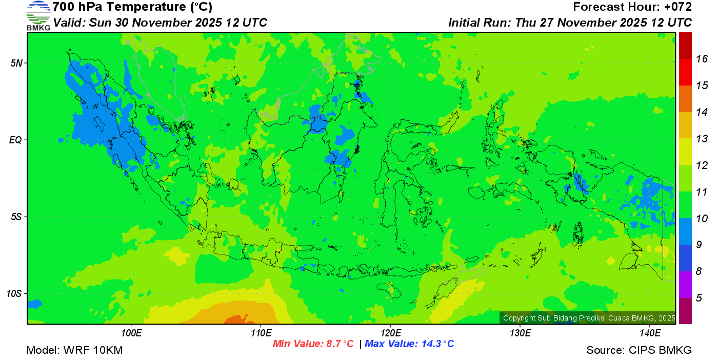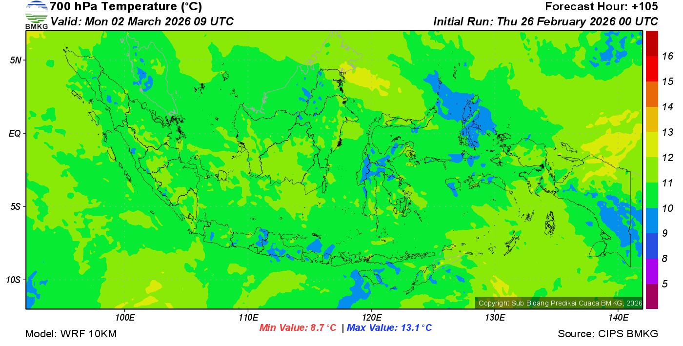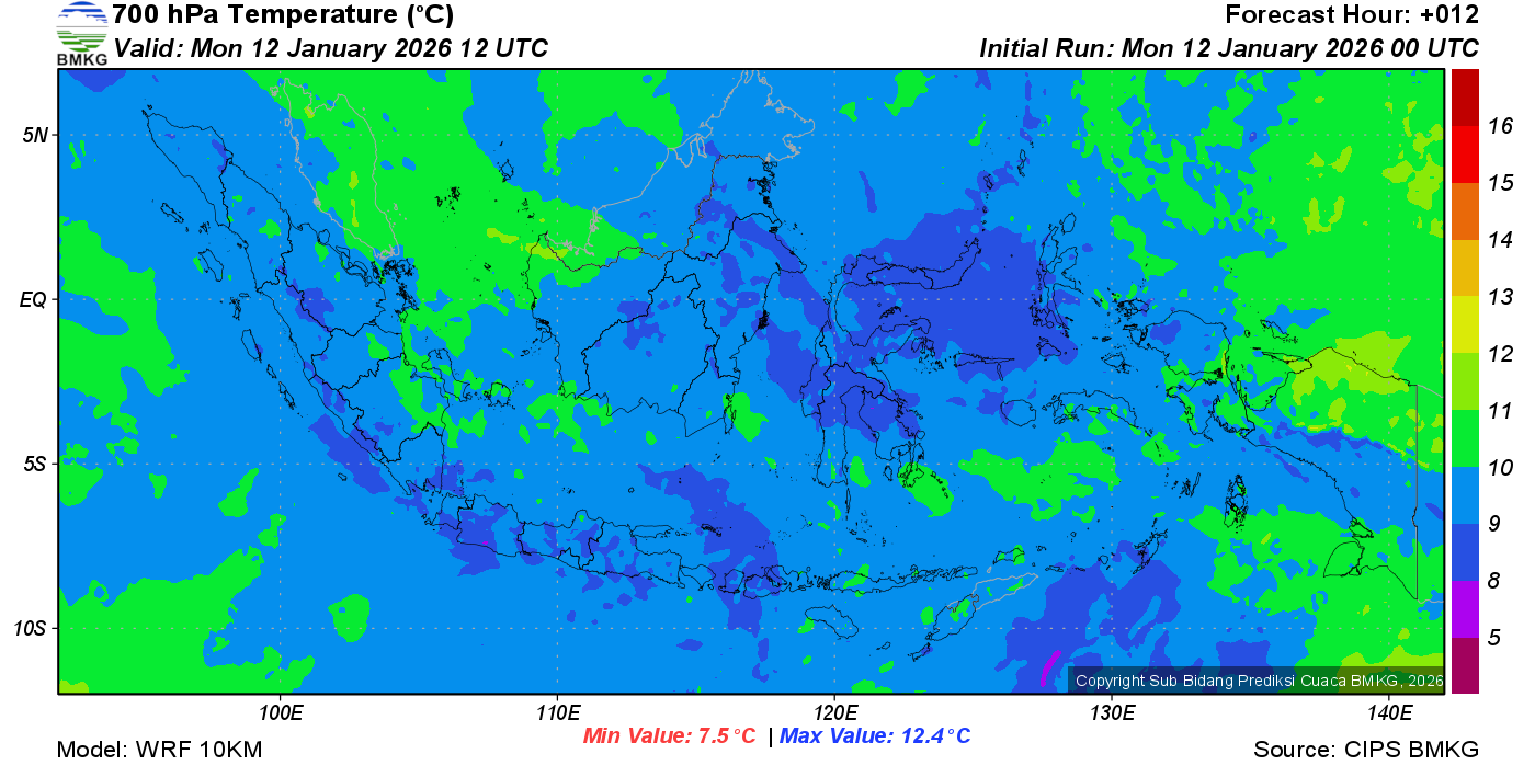 Prediksi Suhu Titik Embun 700 hPa NTT