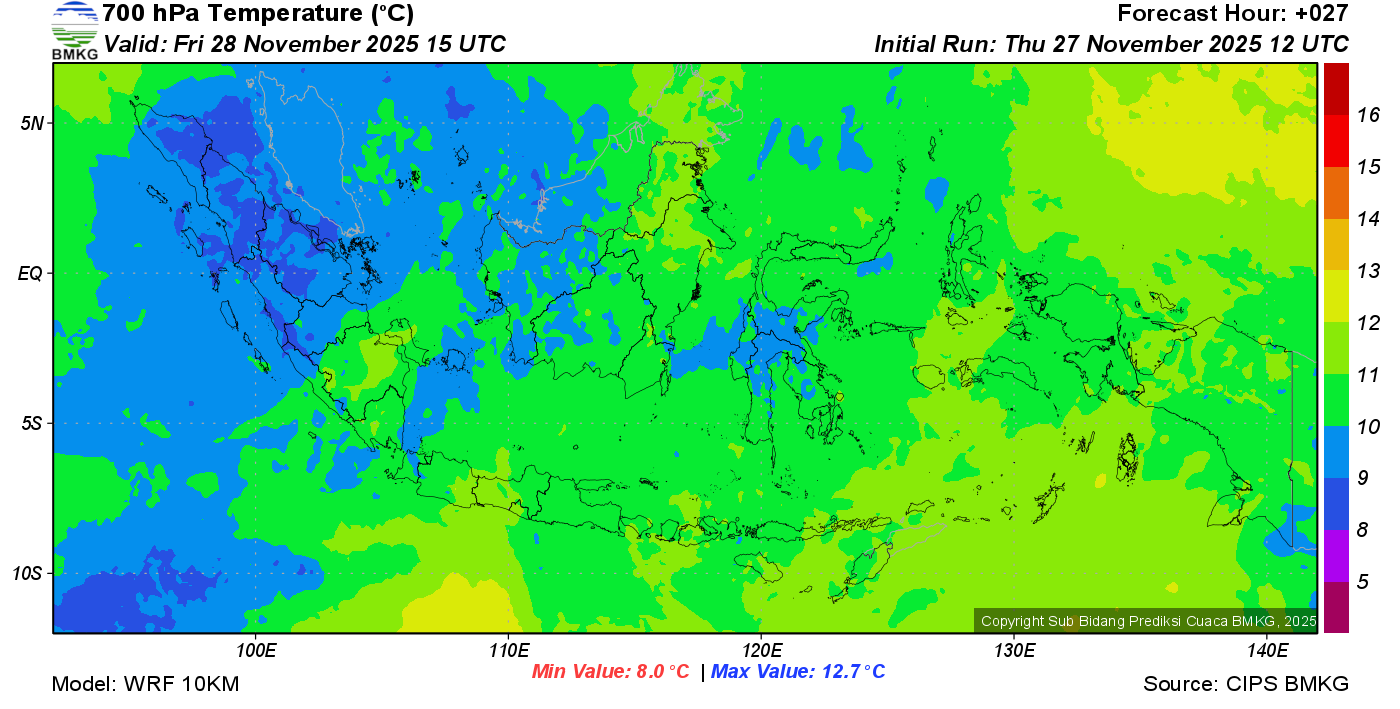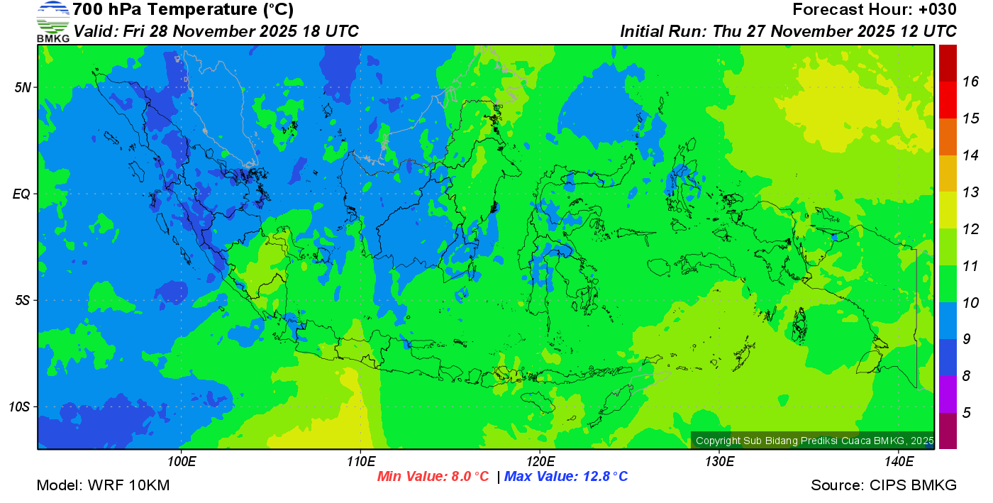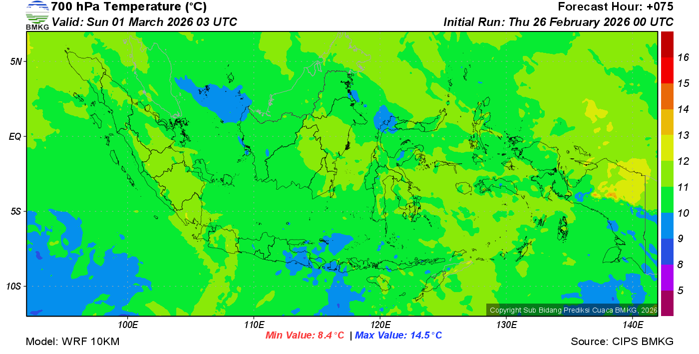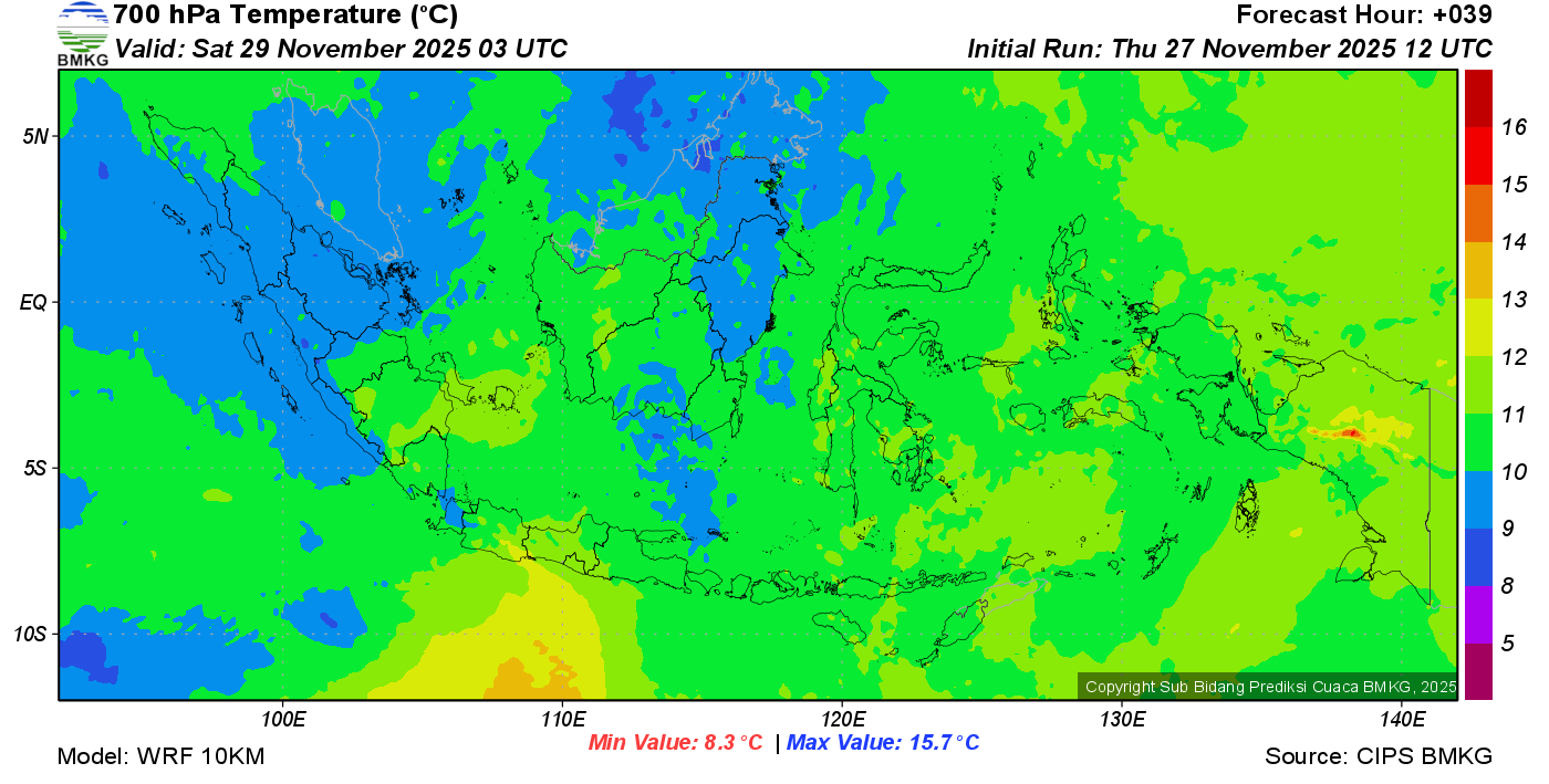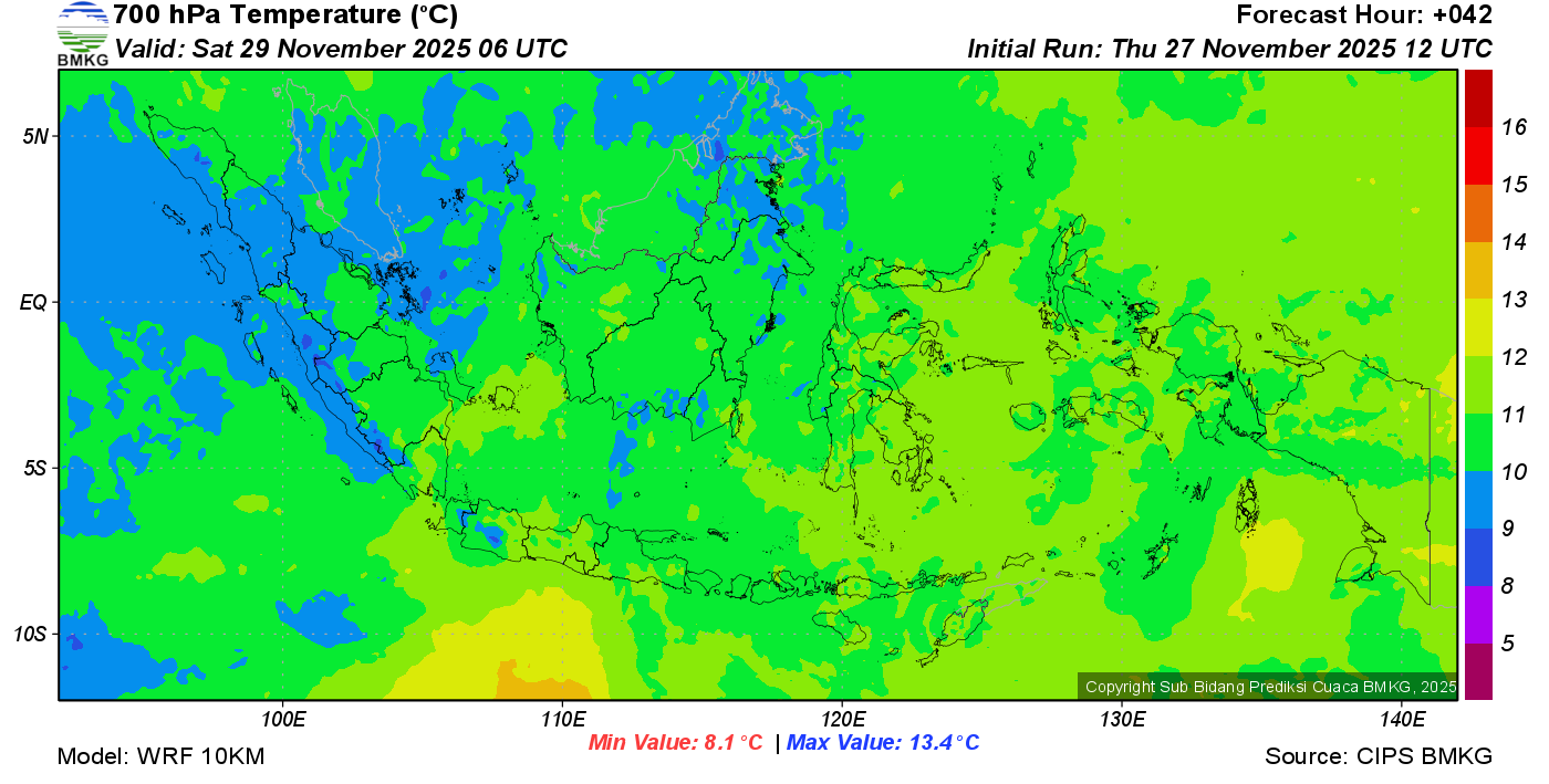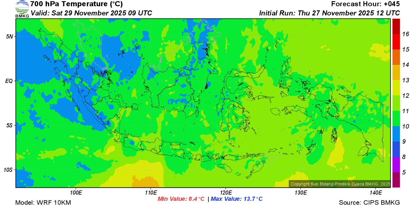 Prediksi Suhu Titik Embun 700 hPa NTT
