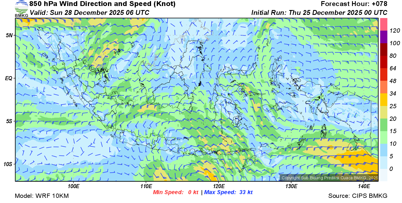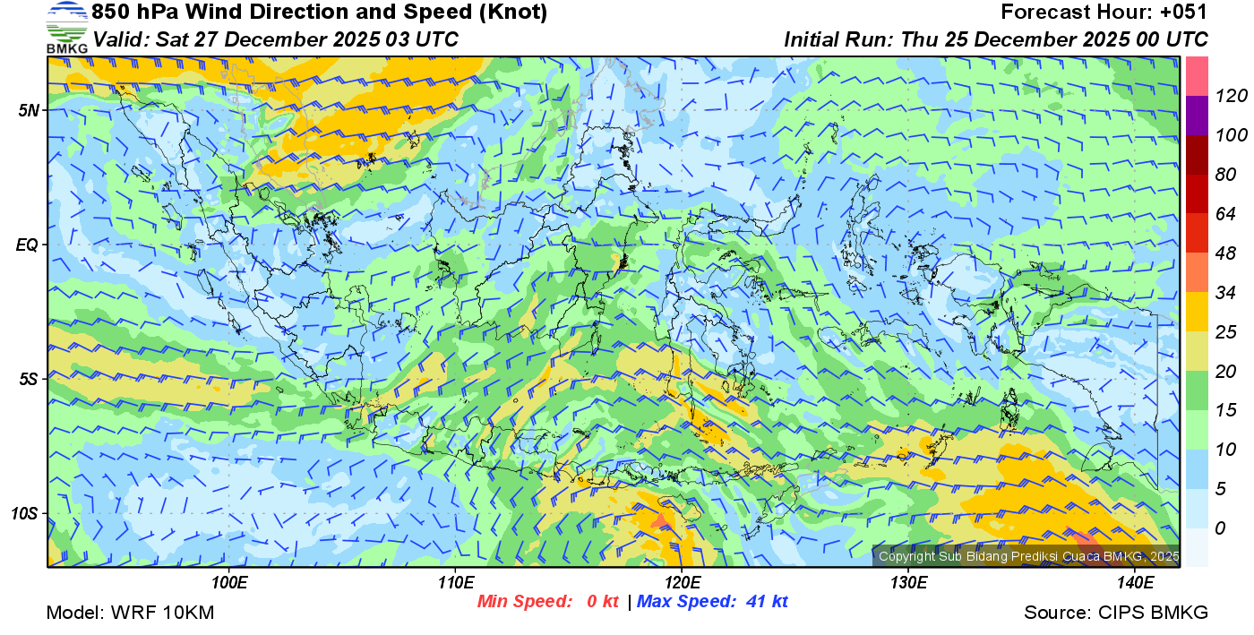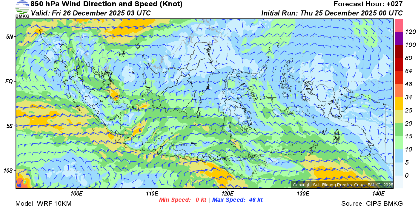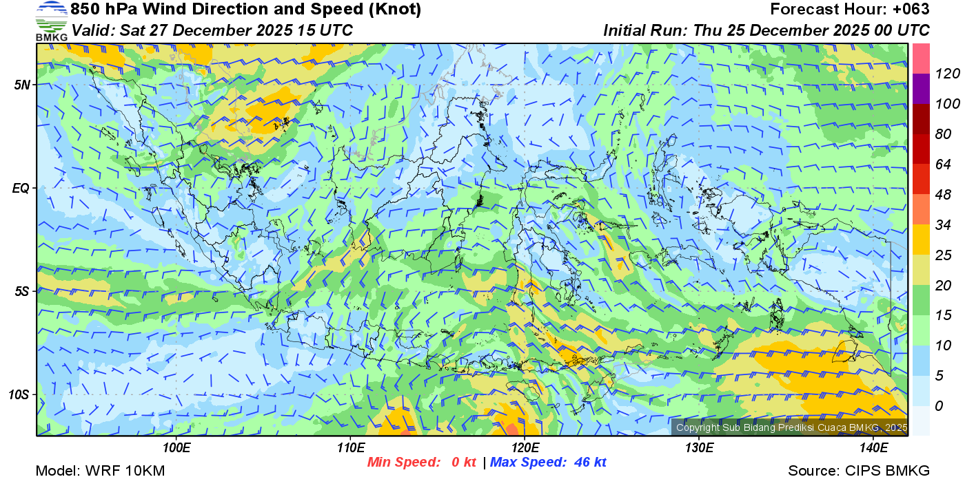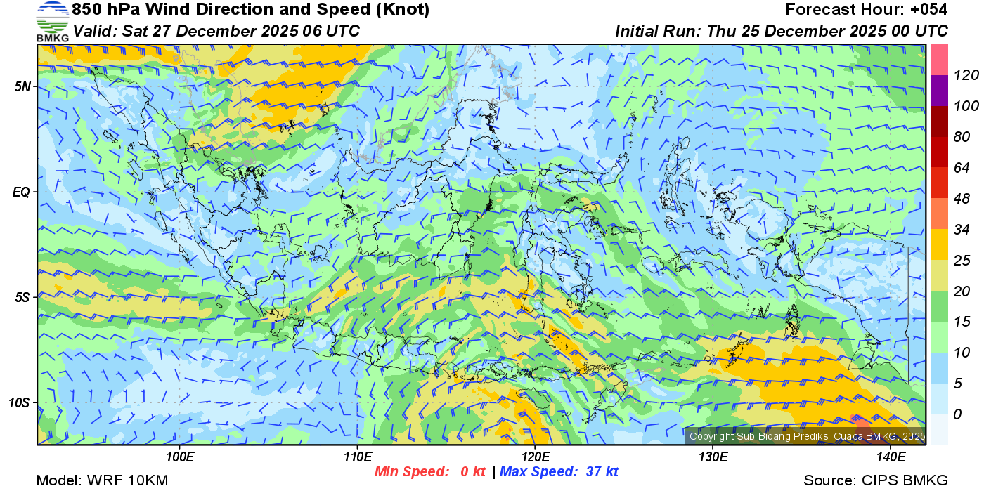 Prakiraan Angin Lapisan 850 Gunung Awu