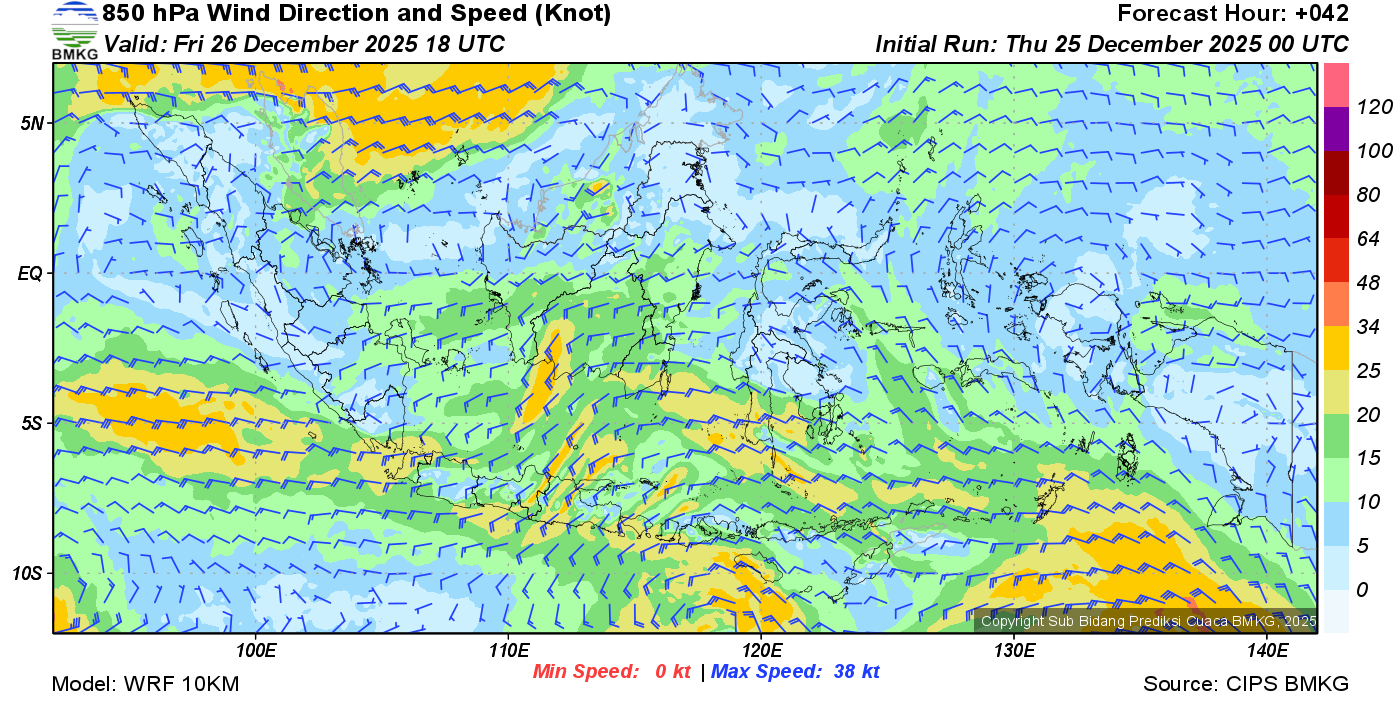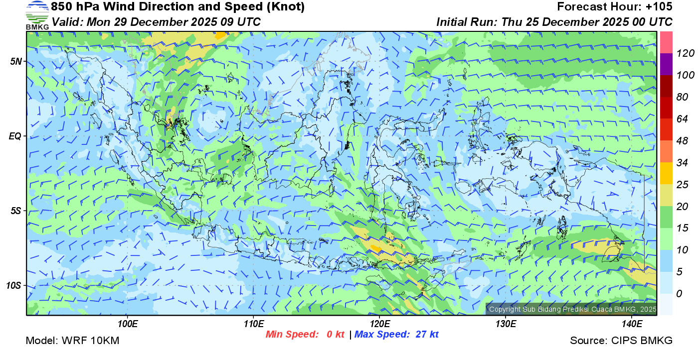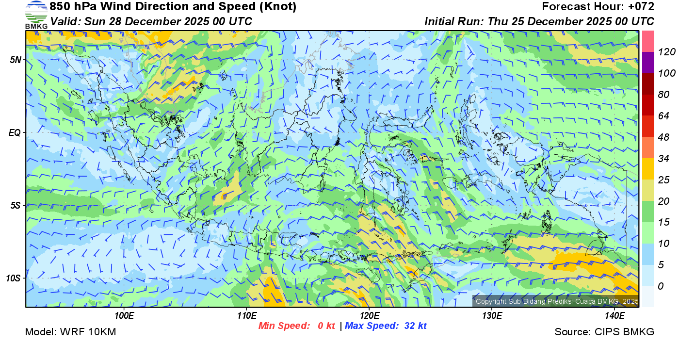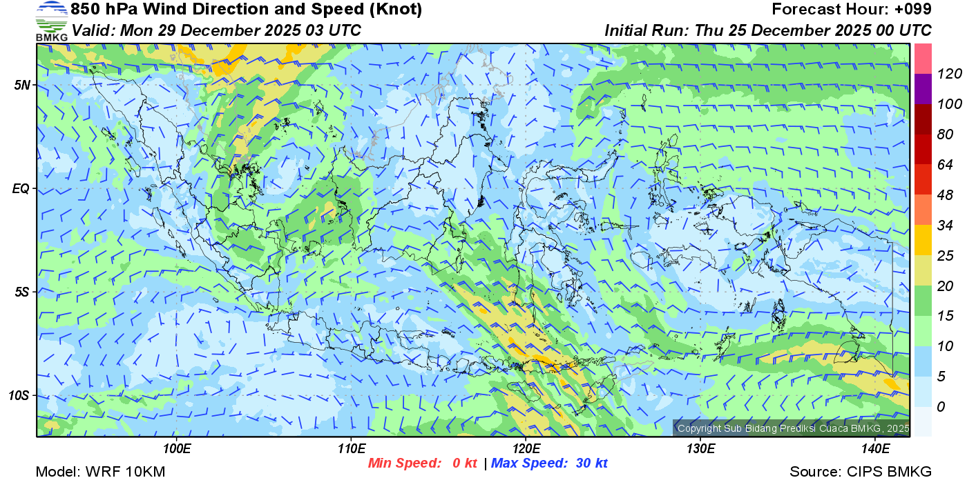 Prakiraan Angin Lapisan 850 Gunung Awu