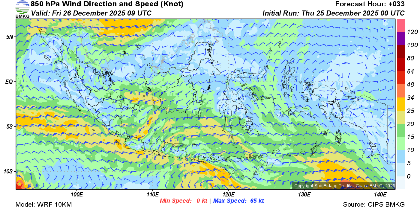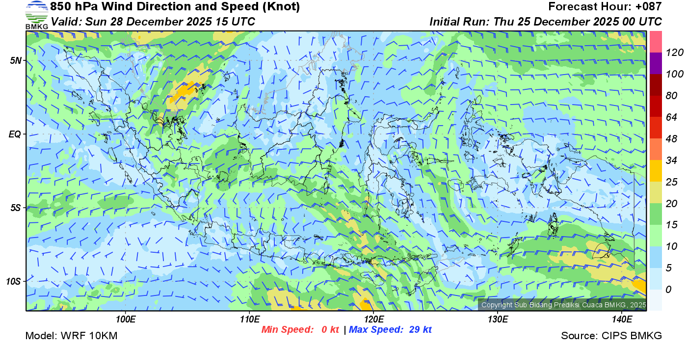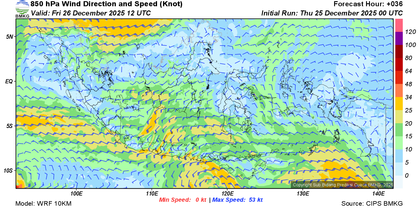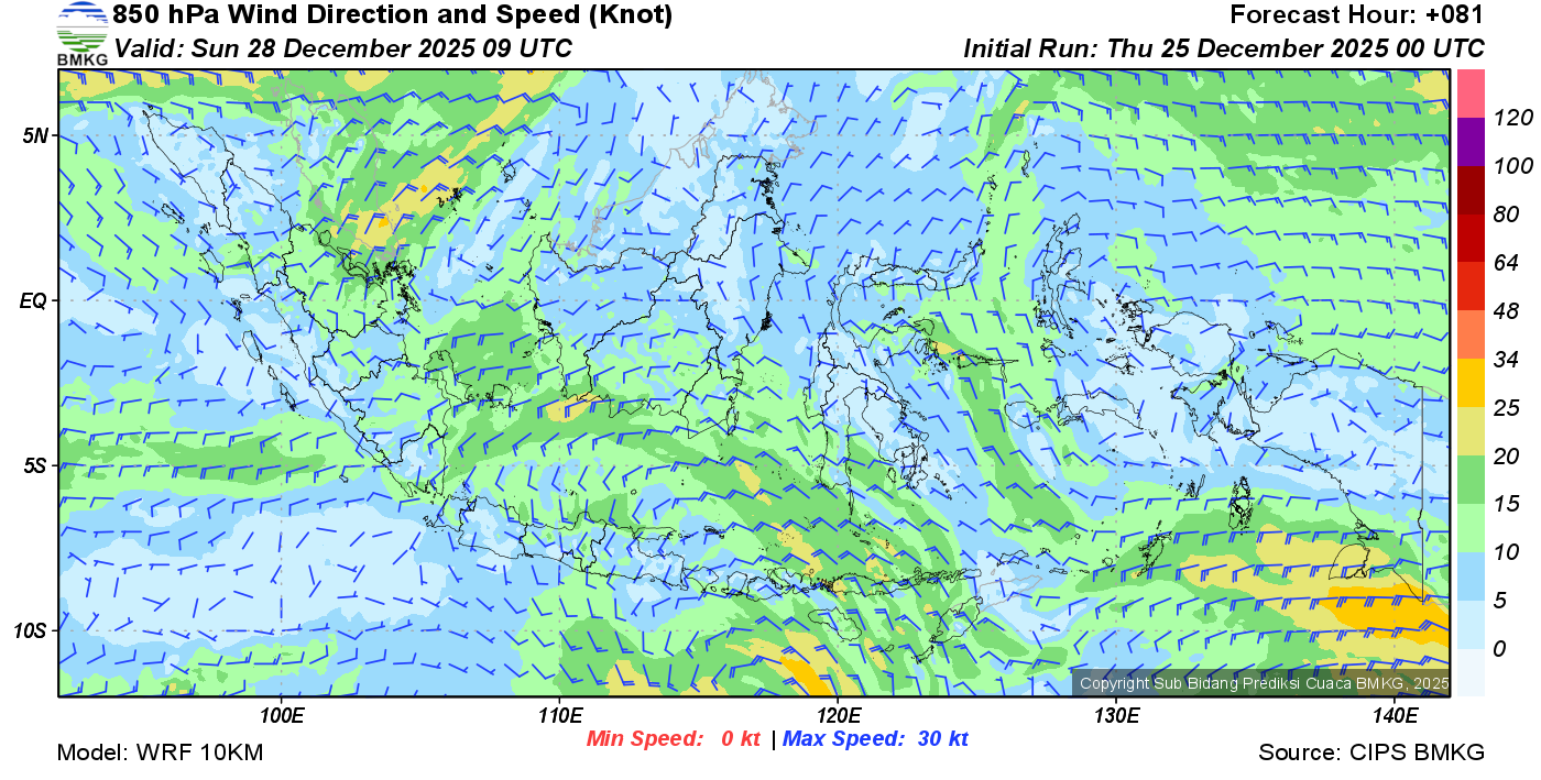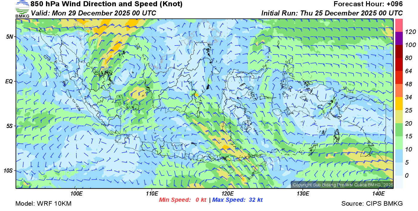 Prakiraan Angin Lapisan 850 Gunung Awu
