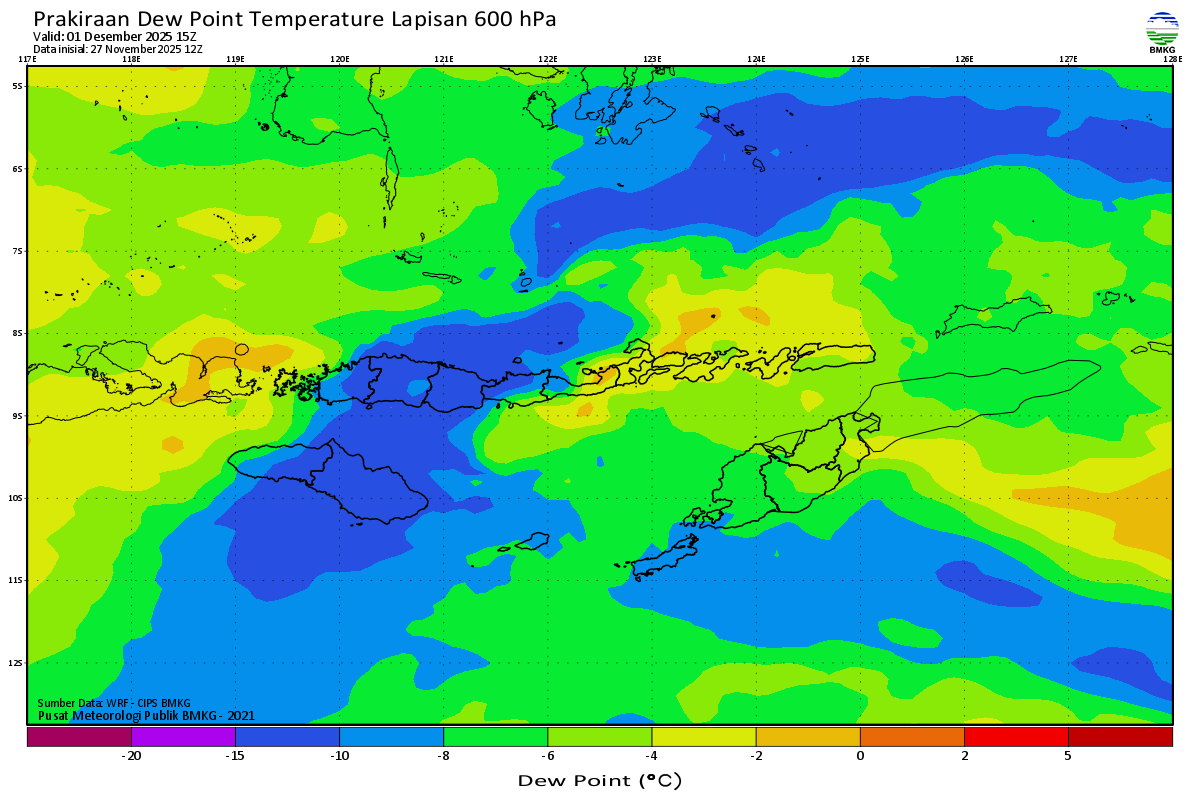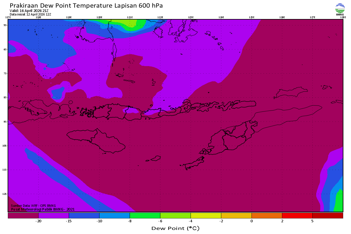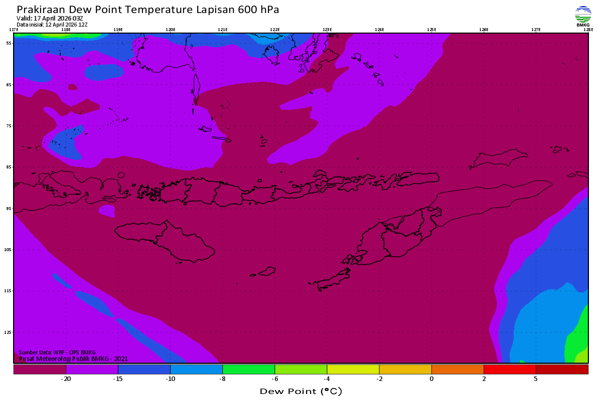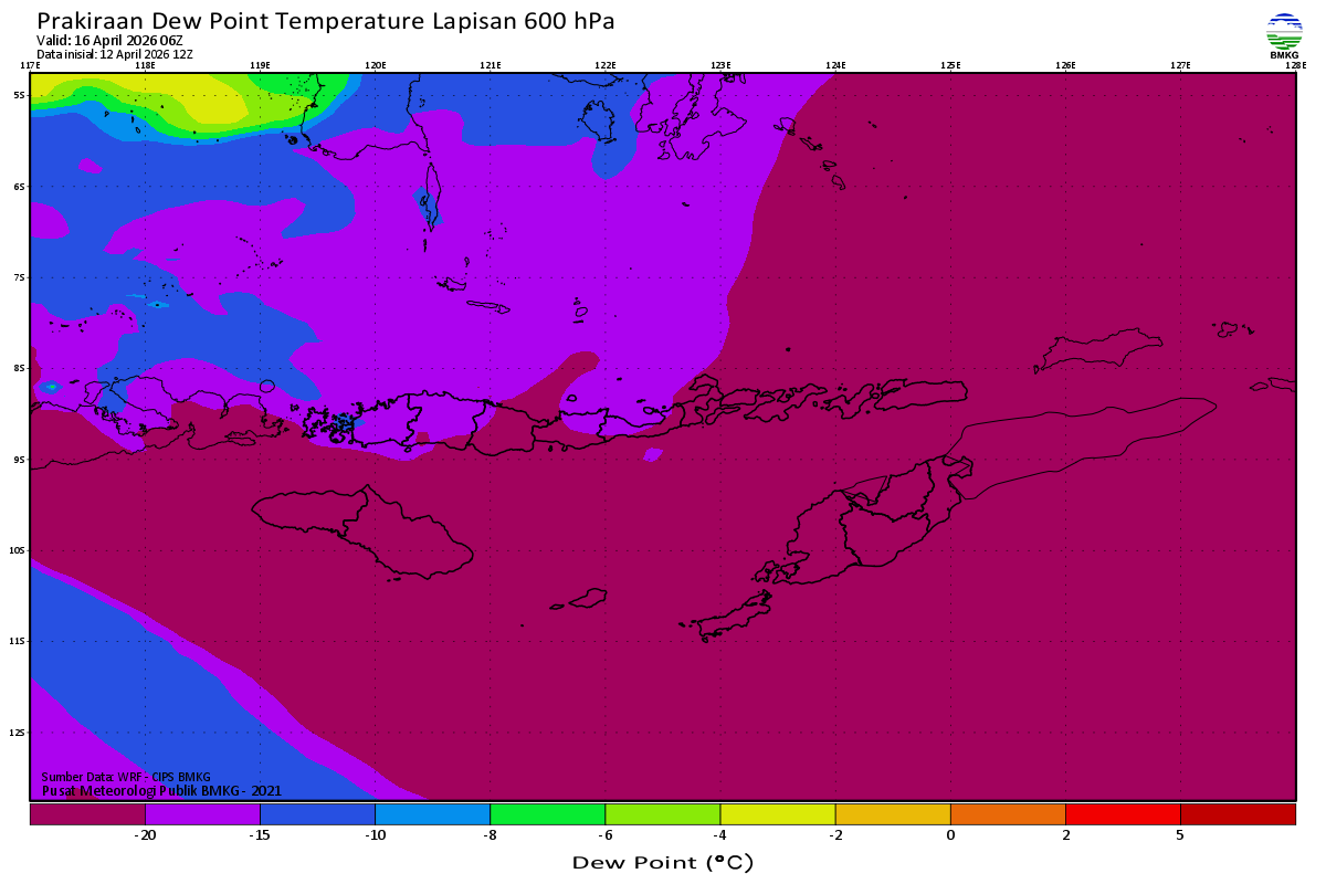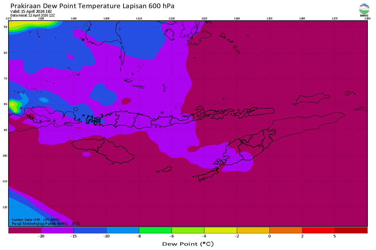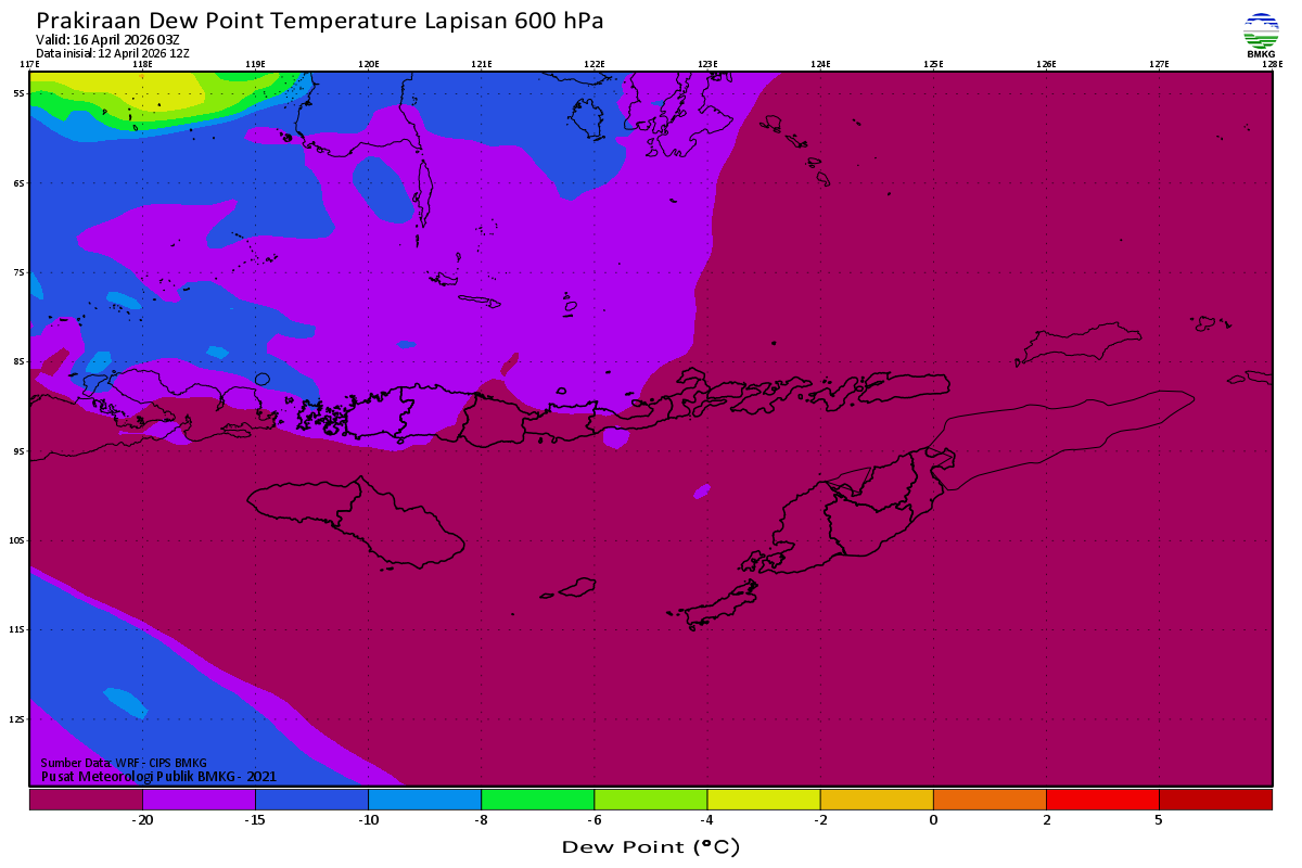 Prediksi Suhu Titik Embun 600 hPa NTT