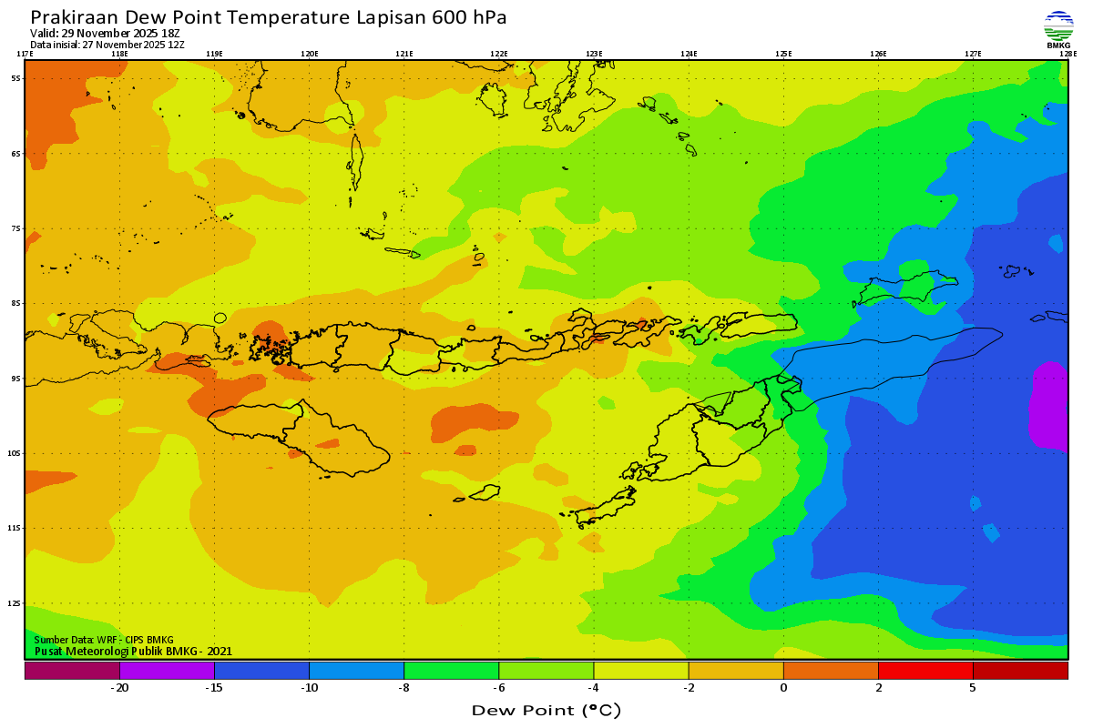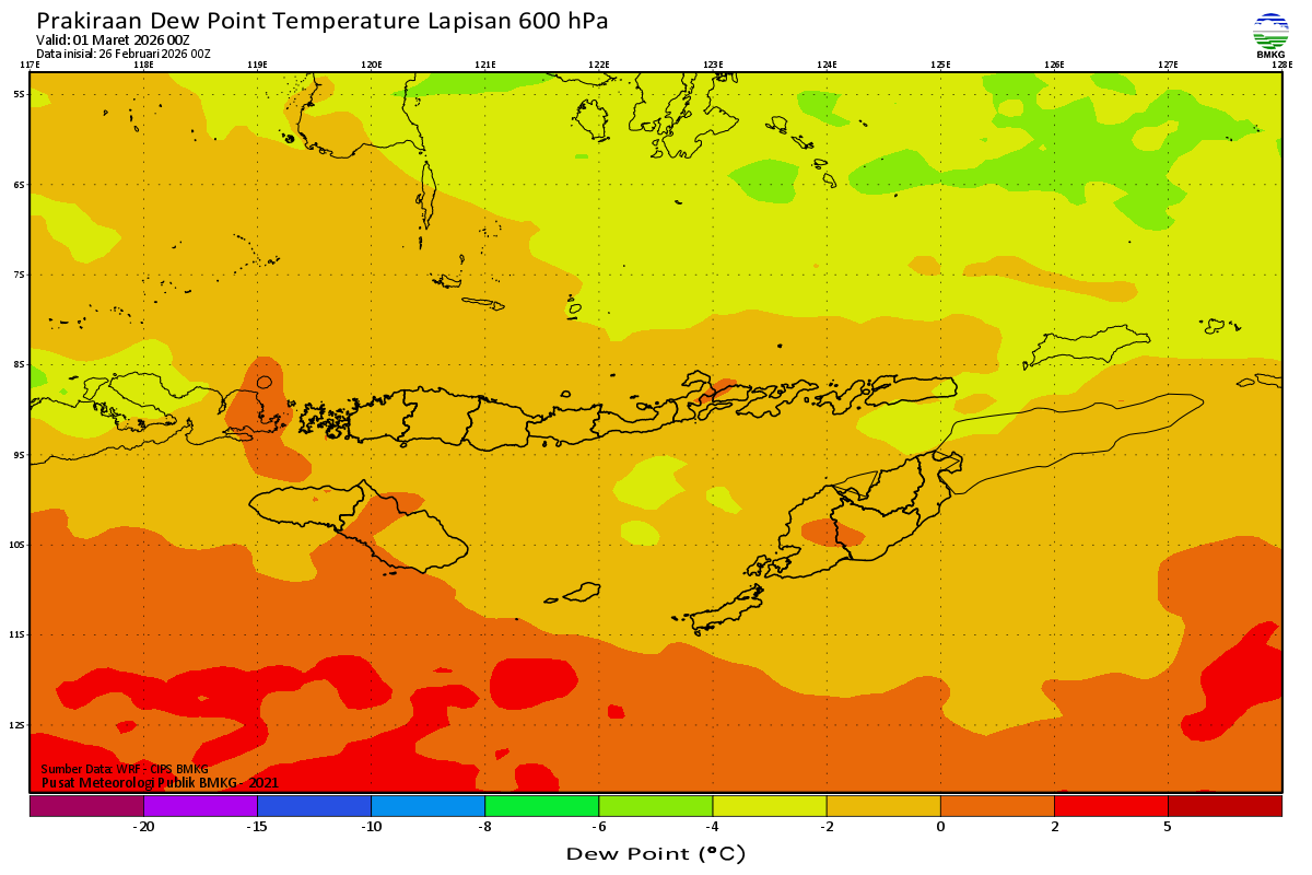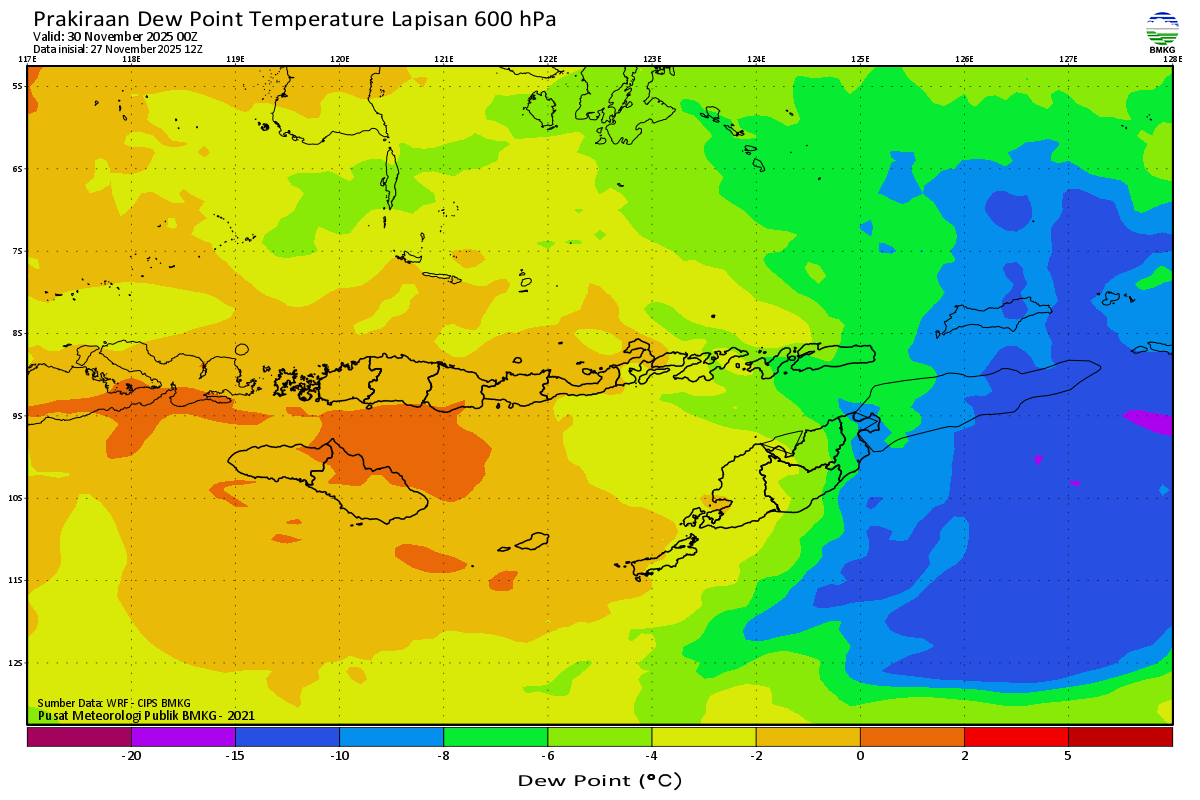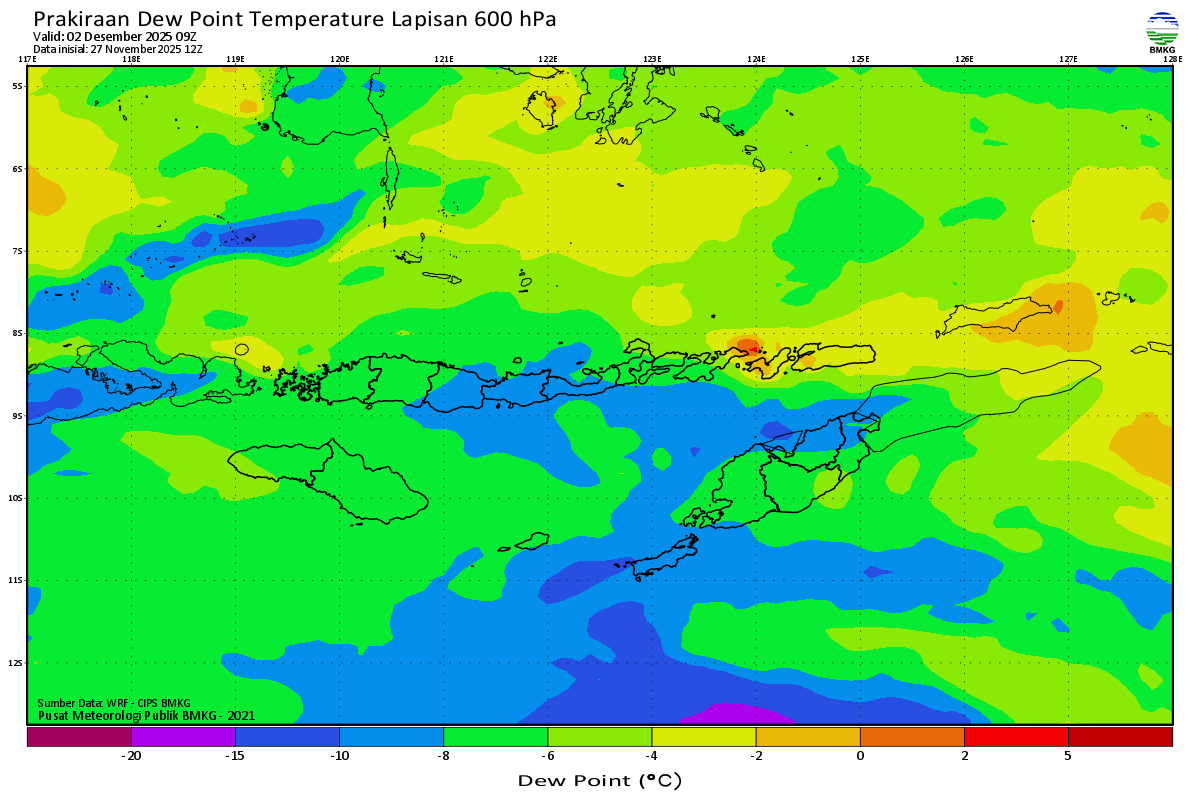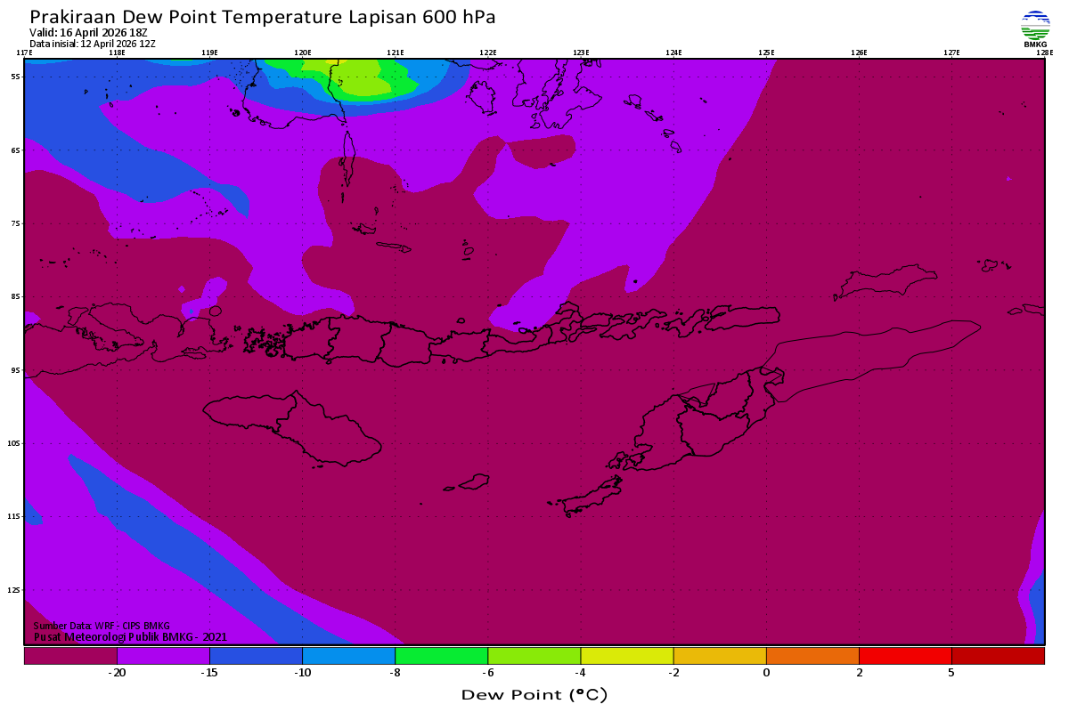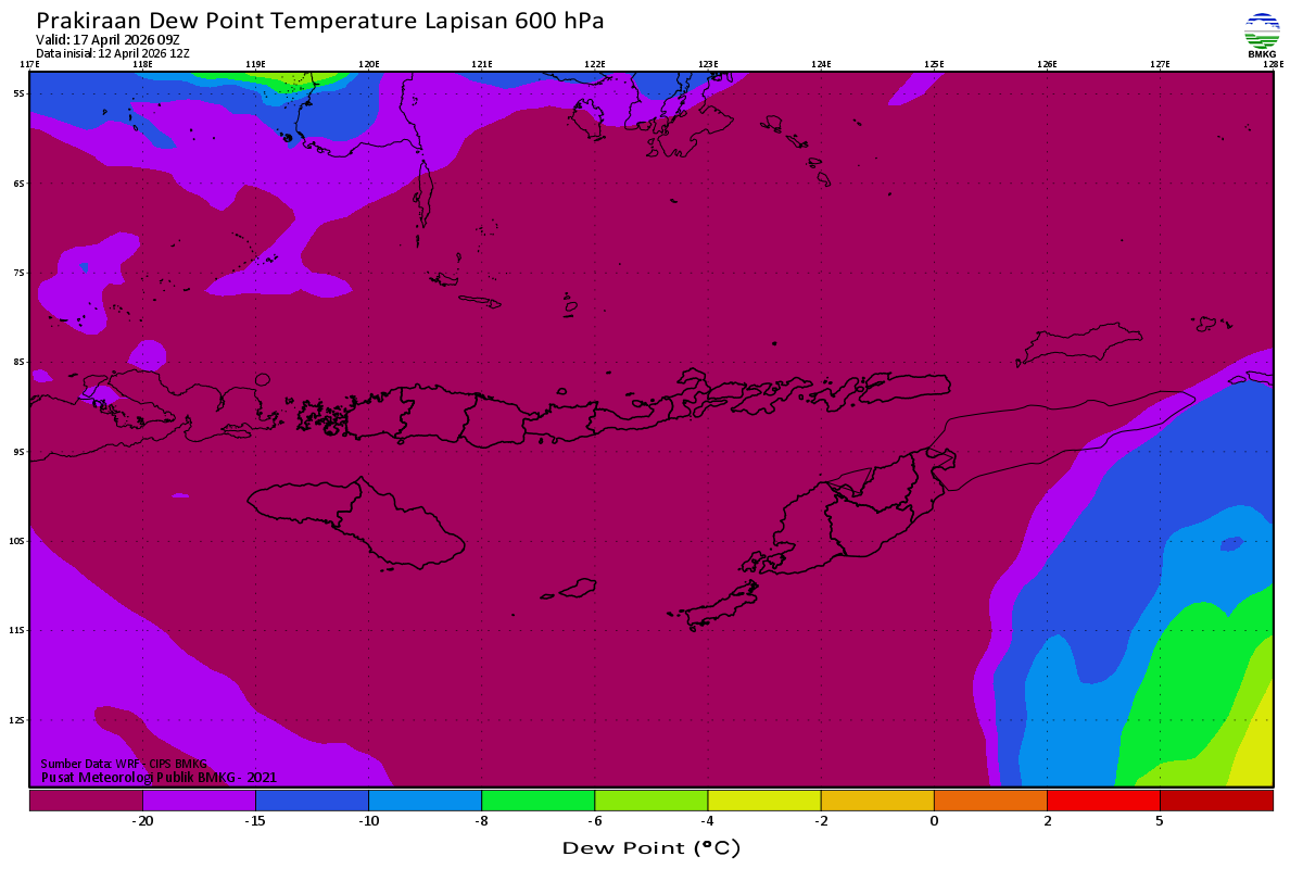Prediksi Suhu Titik Embun 600 hPa NTT