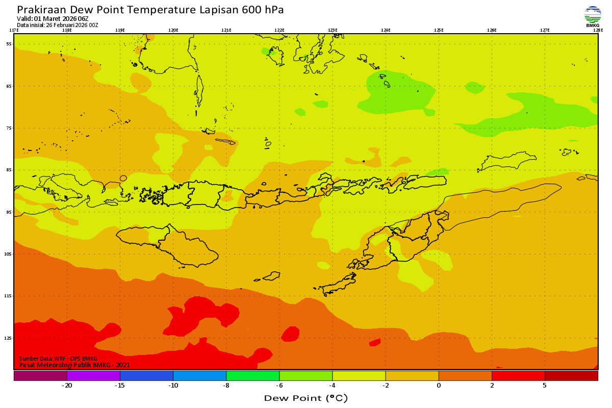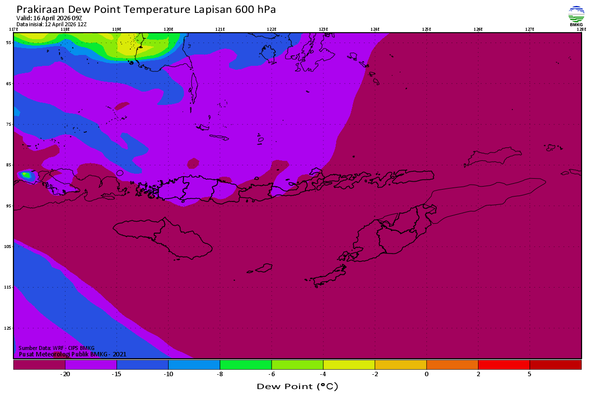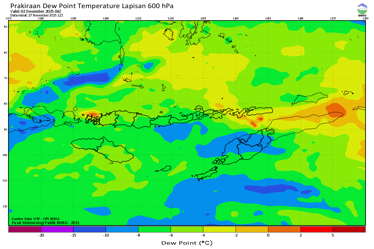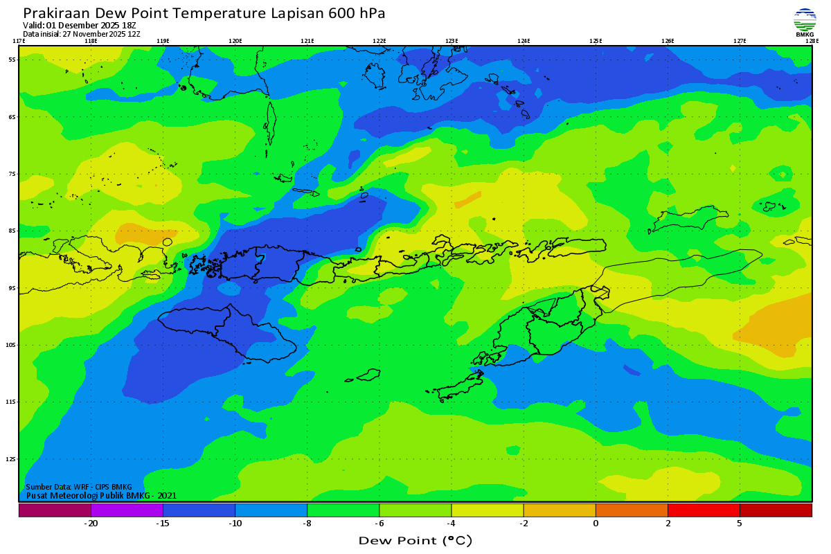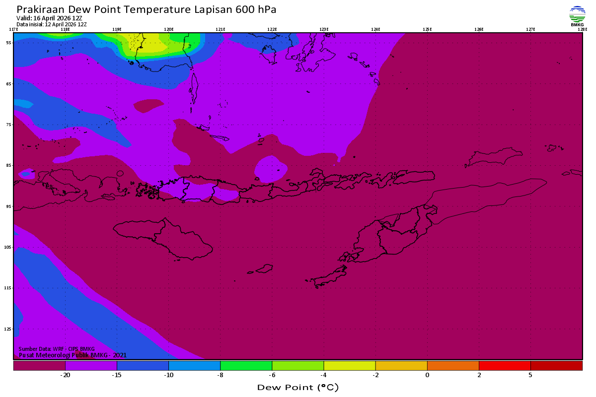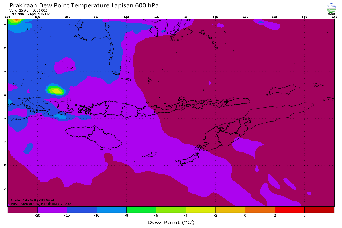 Prediksi Suhu Titik Embun 600 hPa NTT