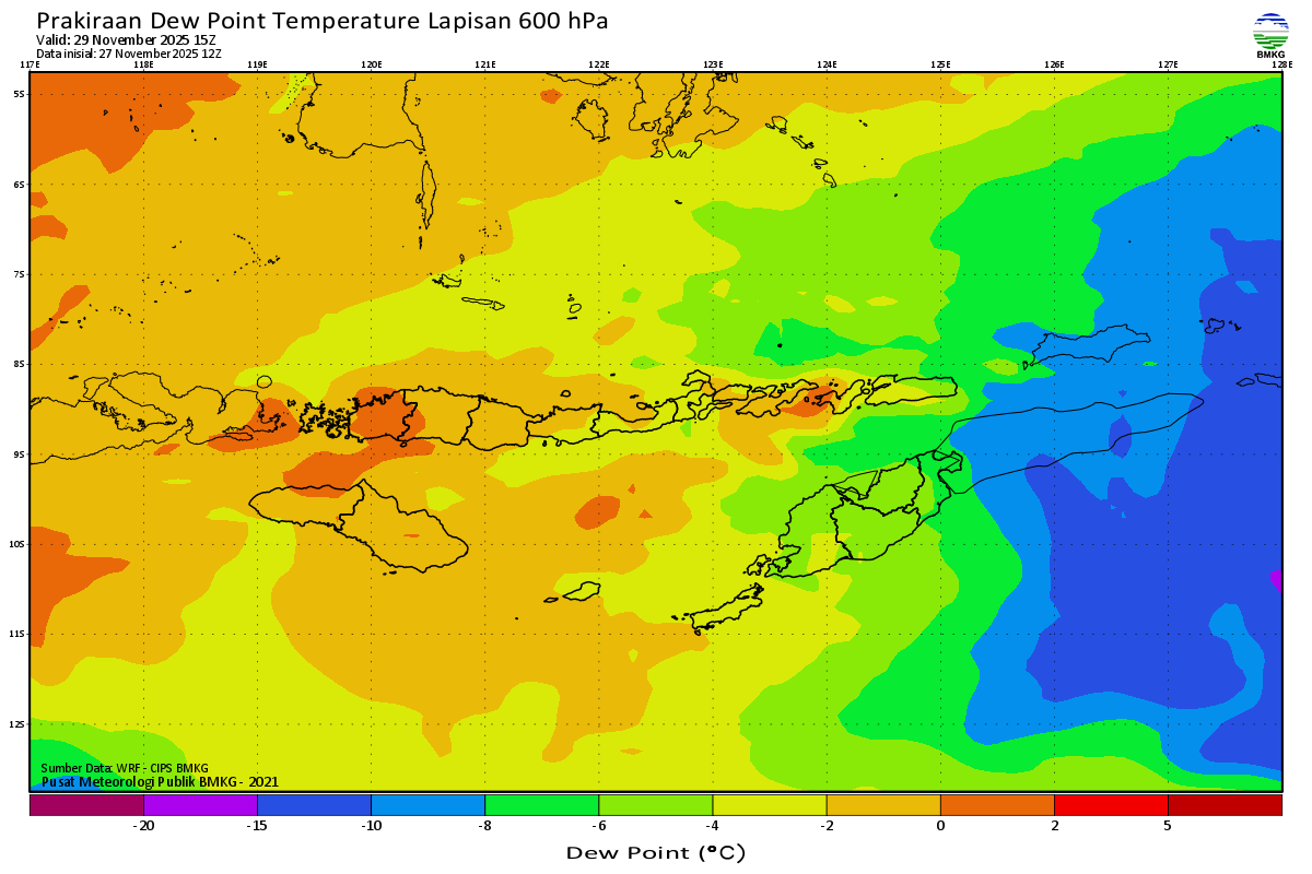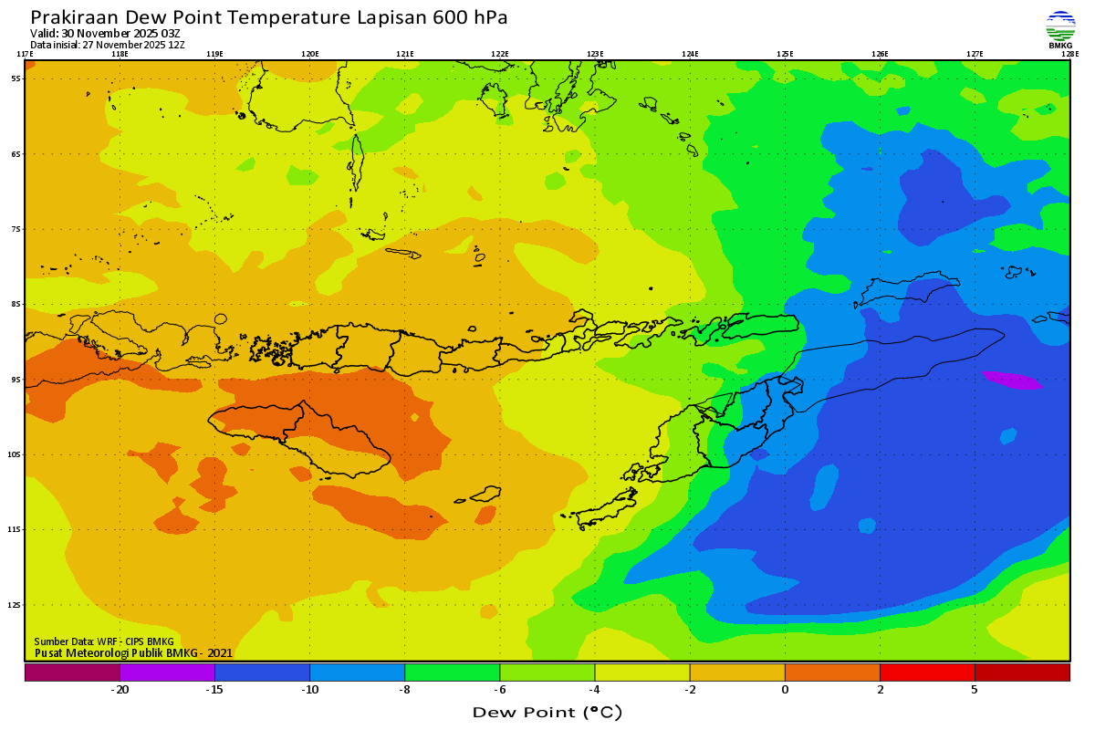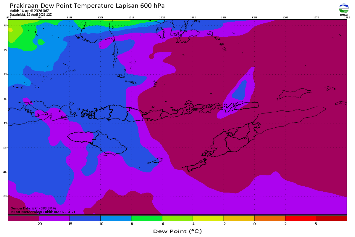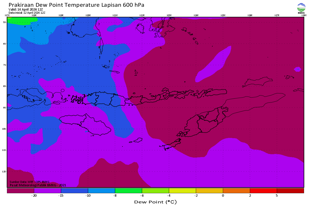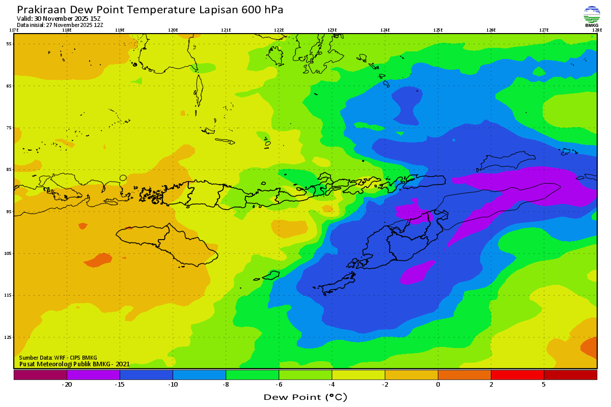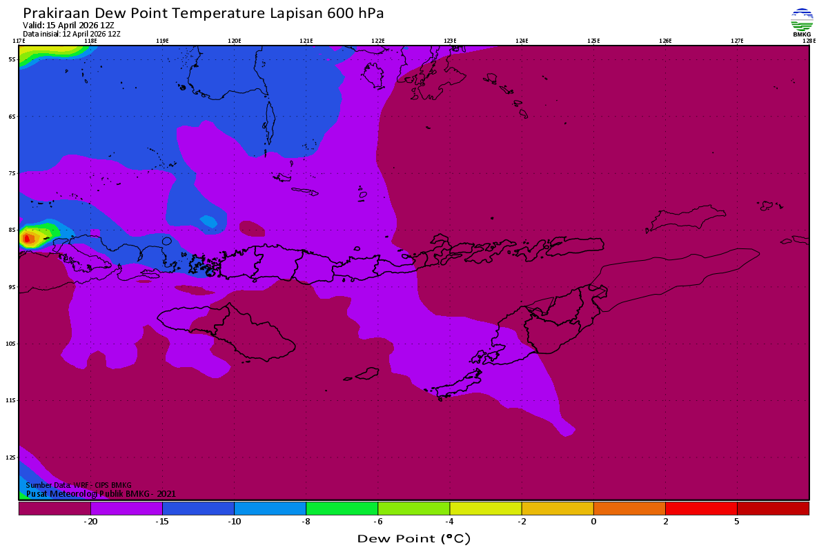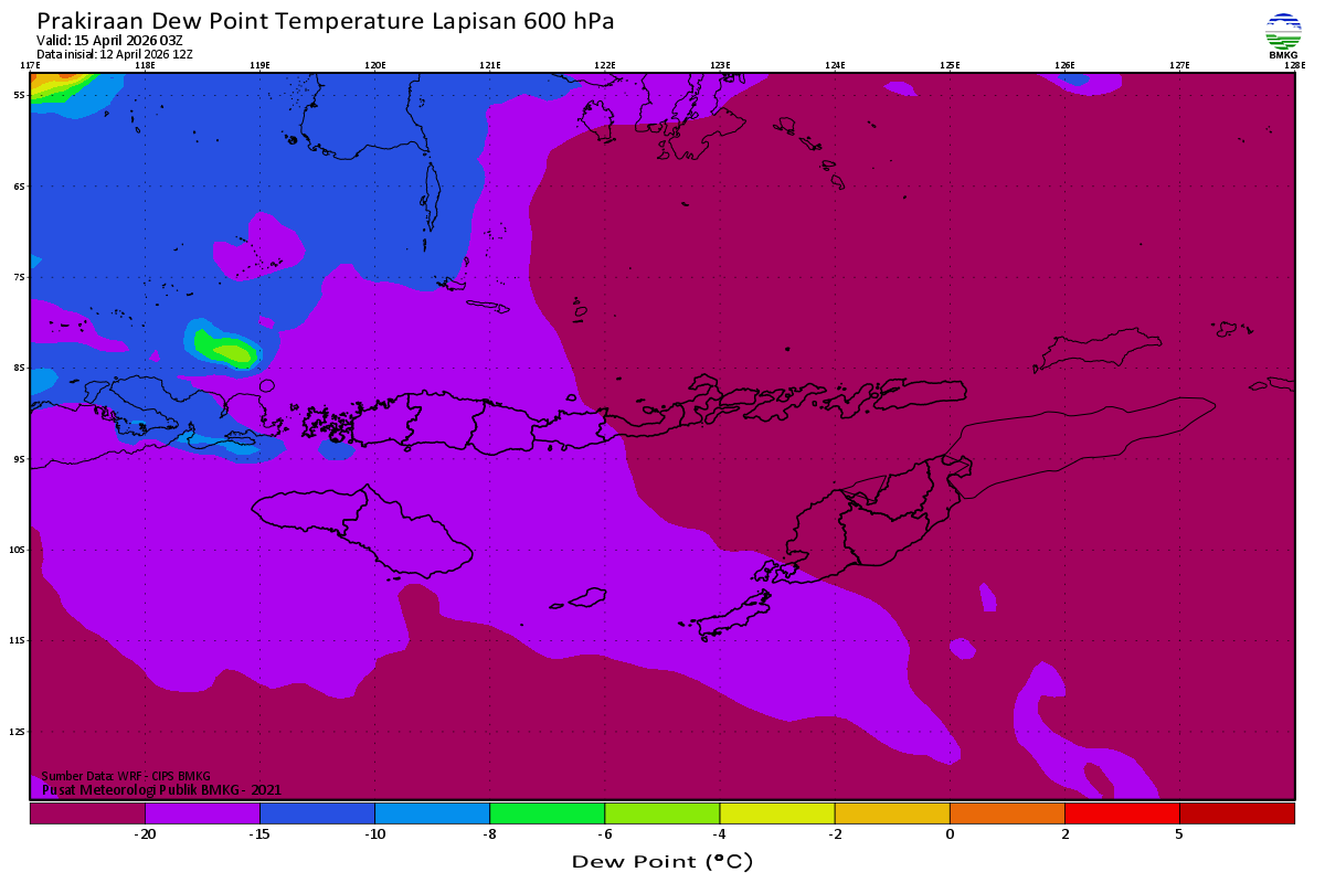 Prediksi Suhu Titik Embun 600 hPa NTT