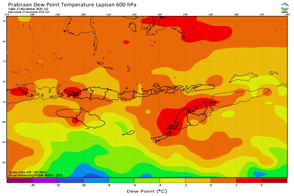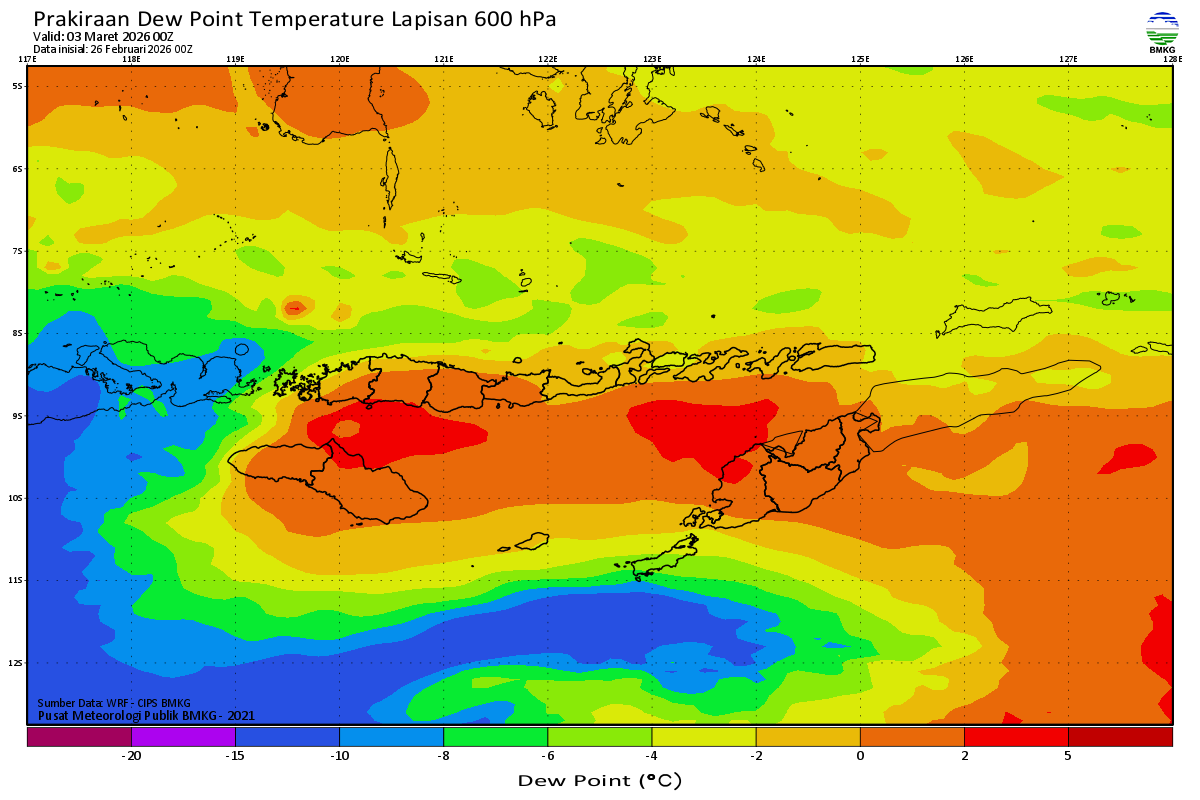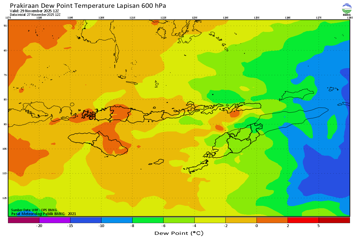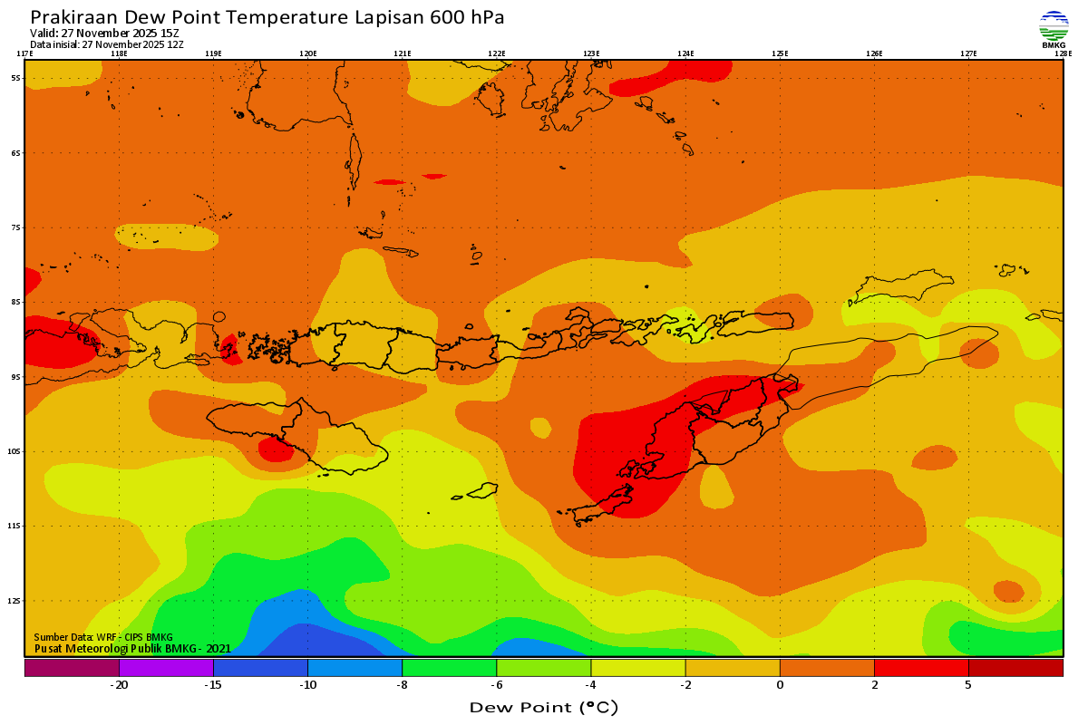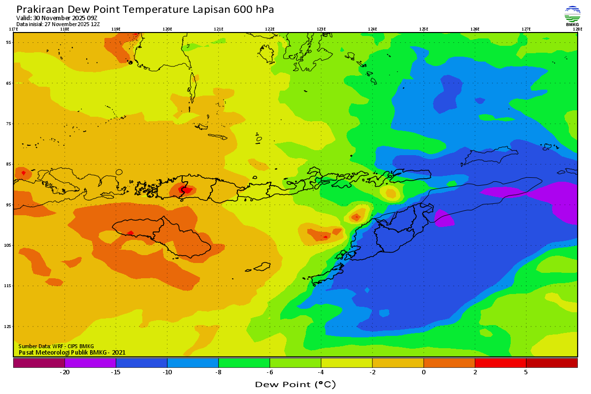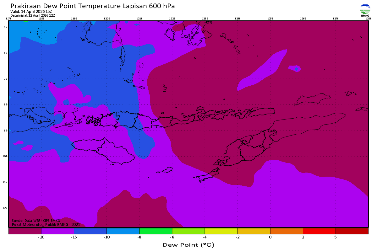 Prediksi Suhu Titik Embun 600 hPa NTT