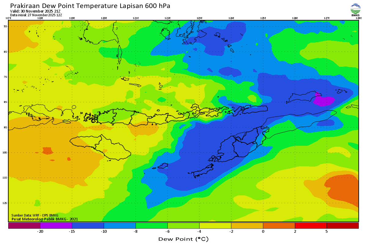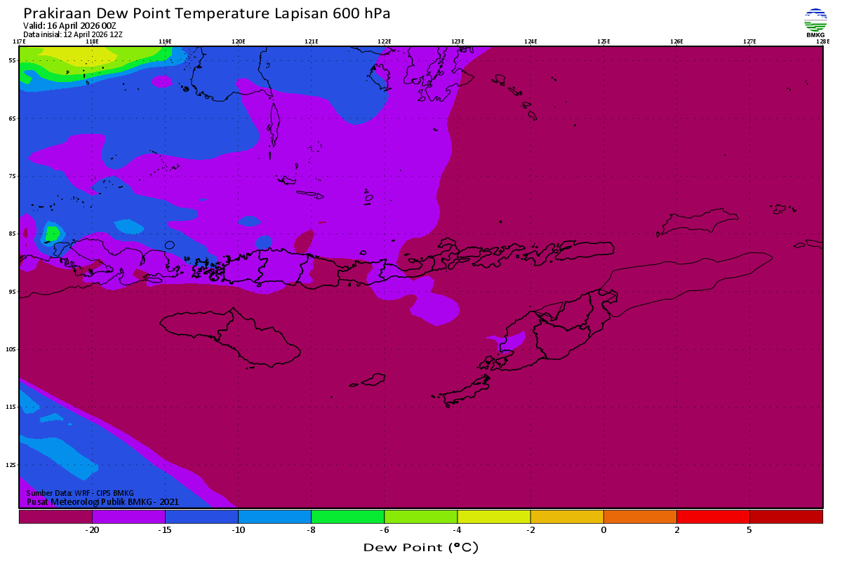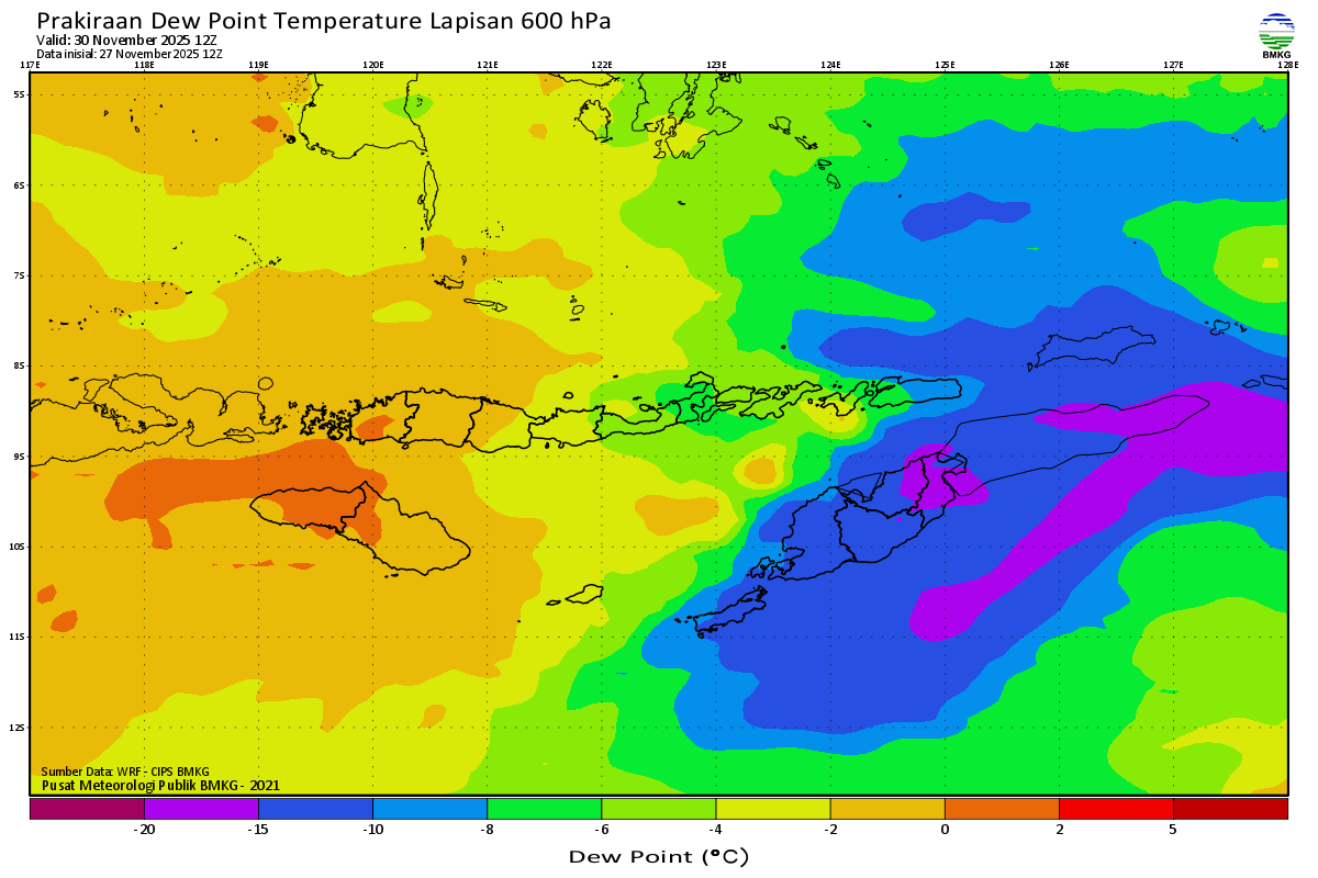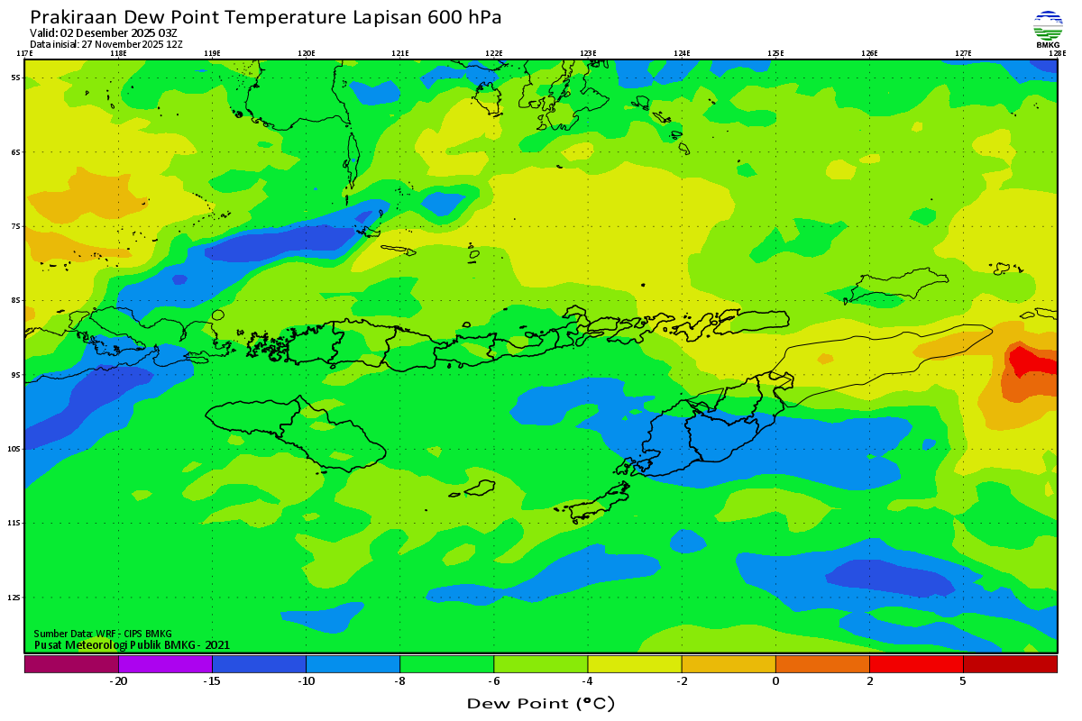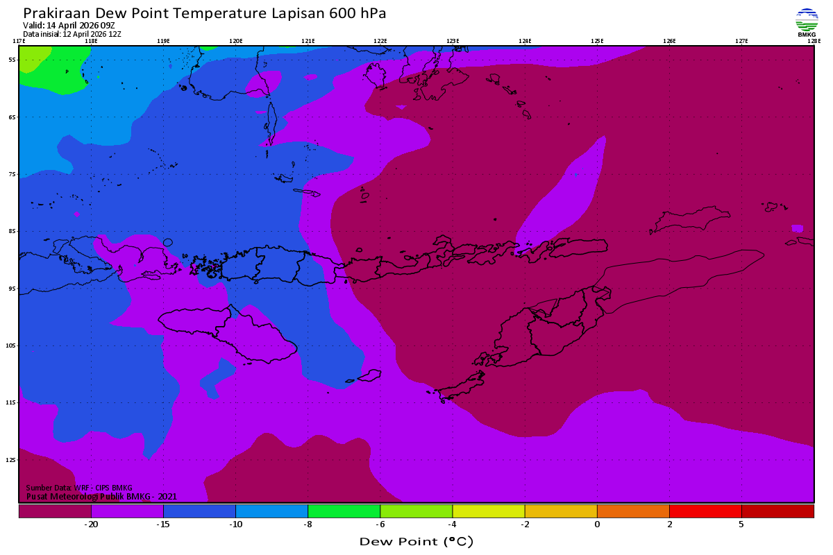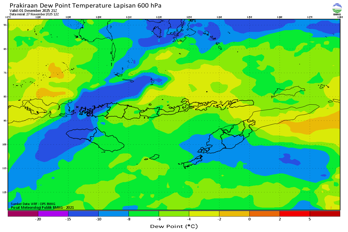 Prediksi Suhu Titik Embun 600 hPa NTT