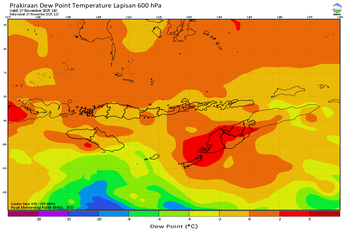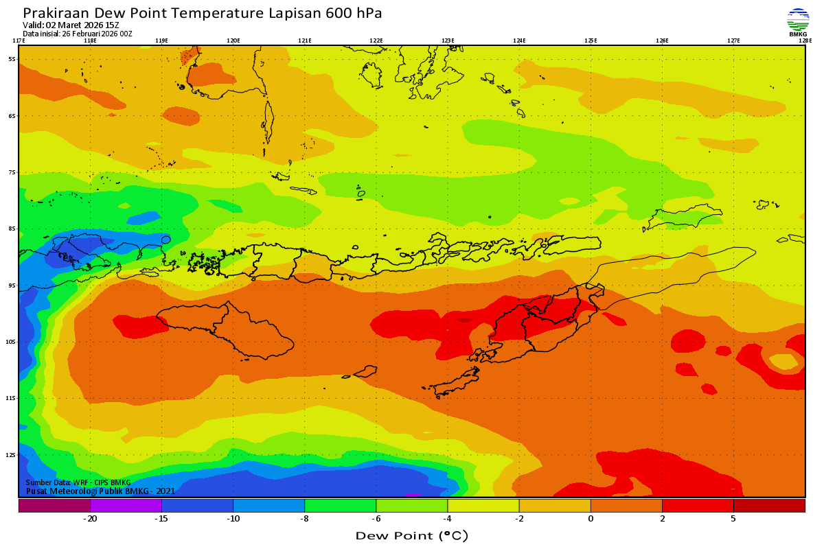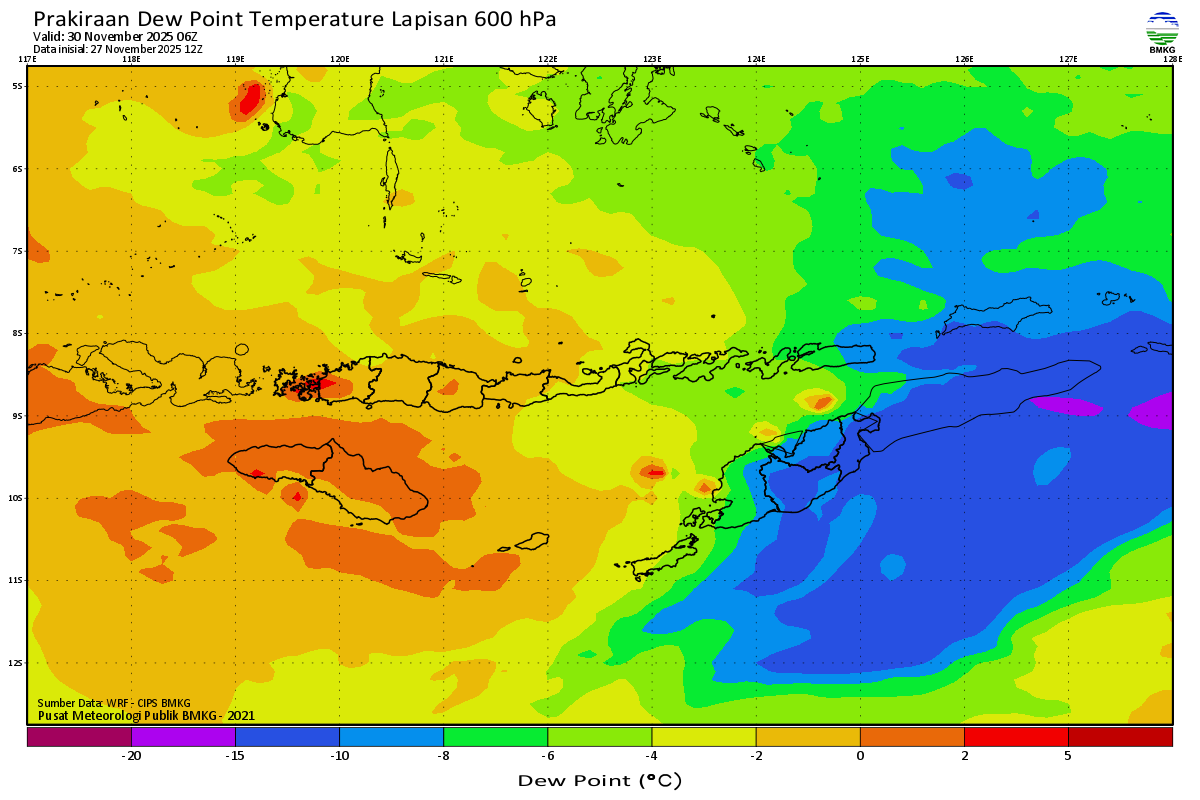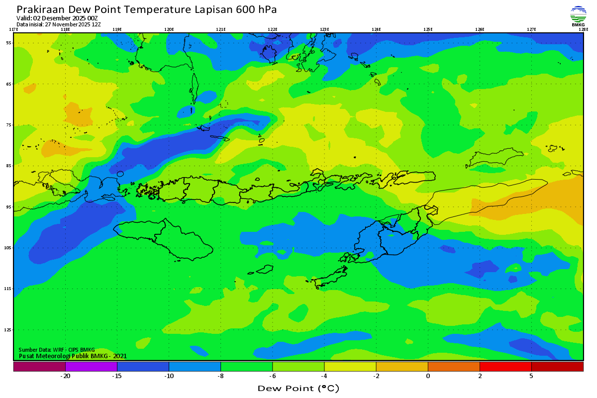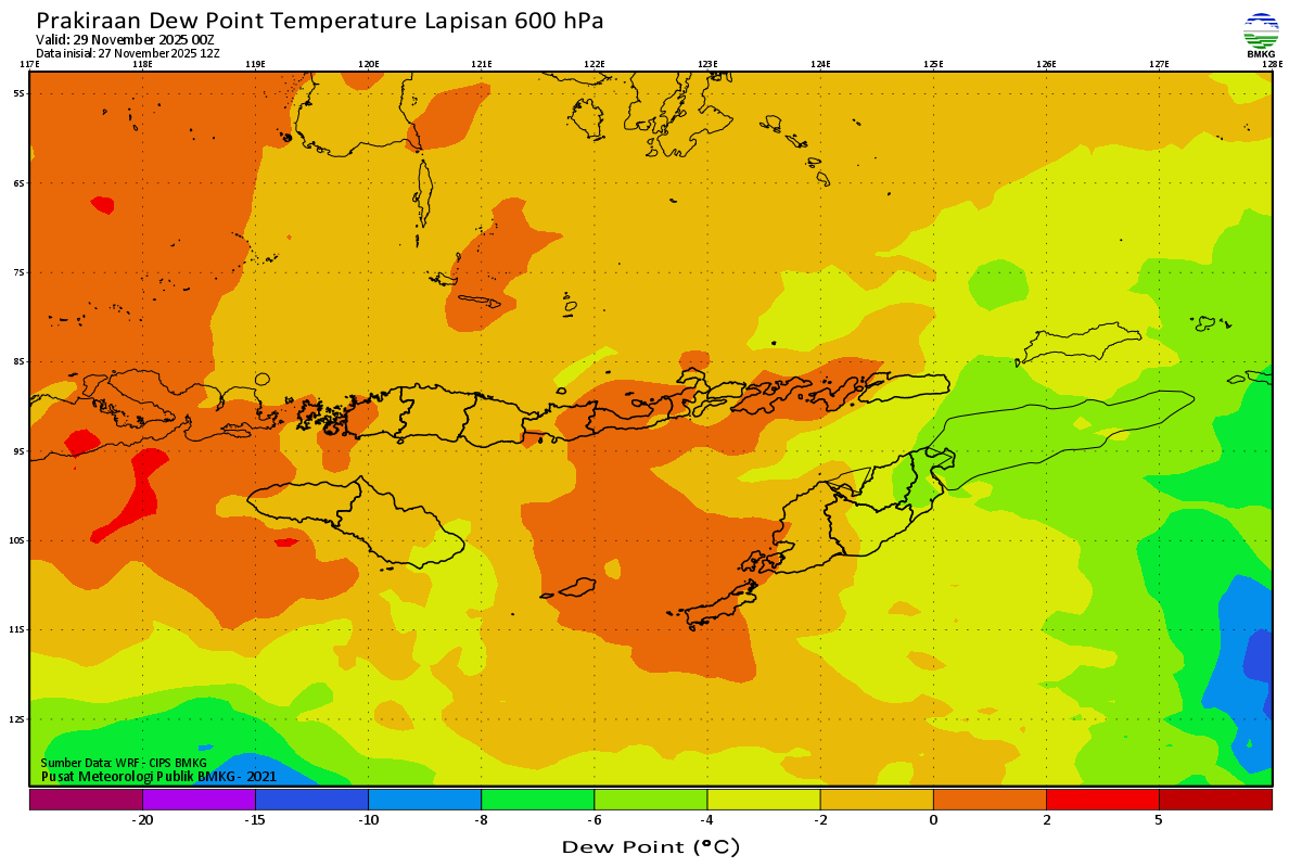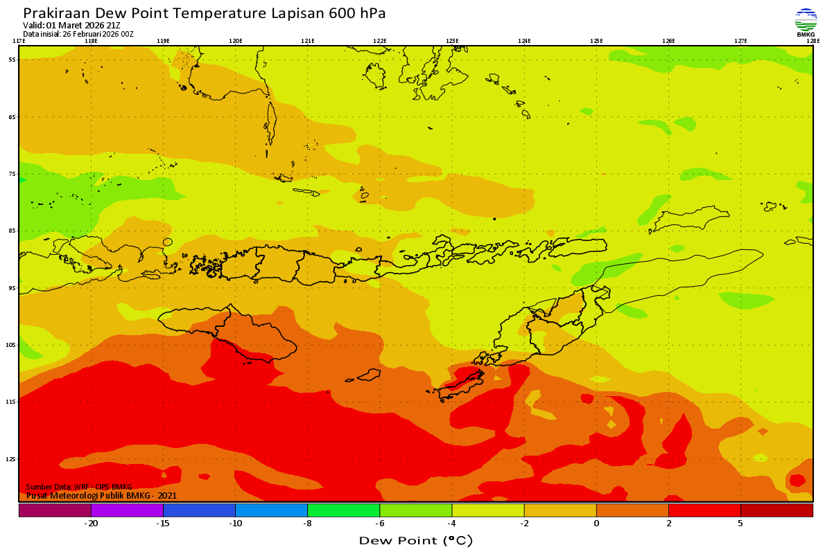 Prediksi Suhu Titik Embun 600 hPa NTT
