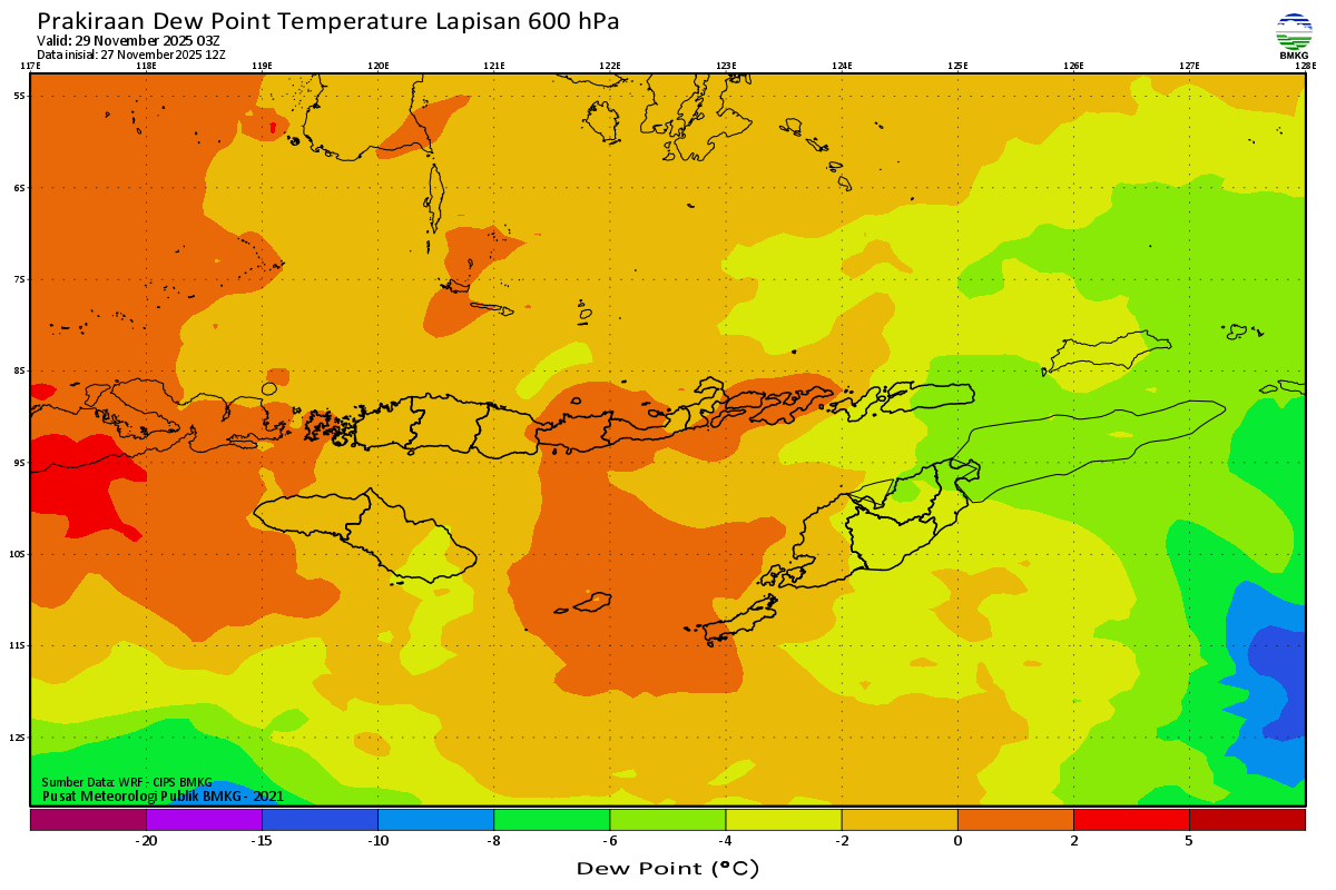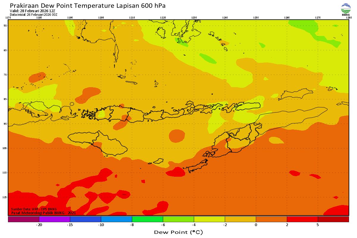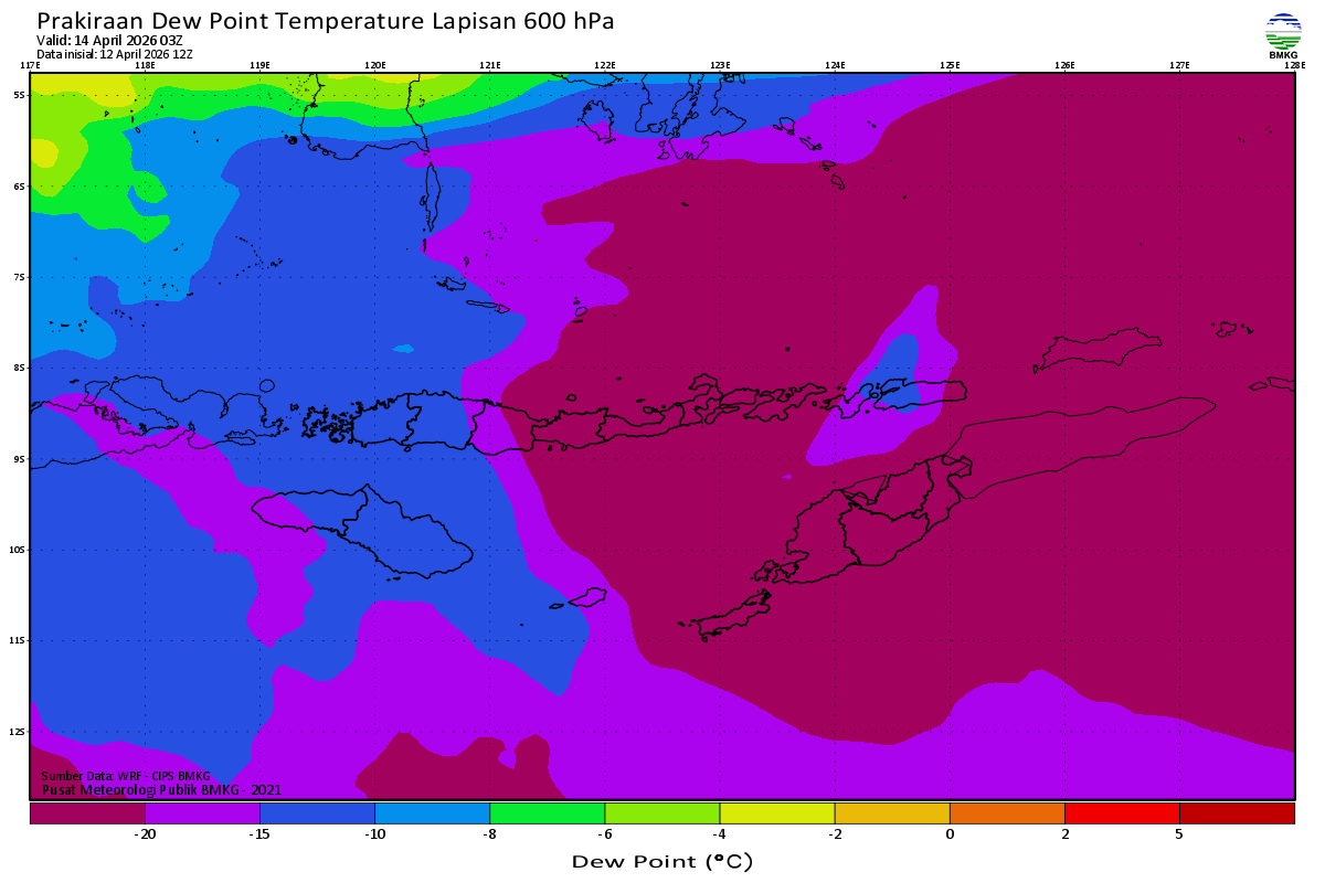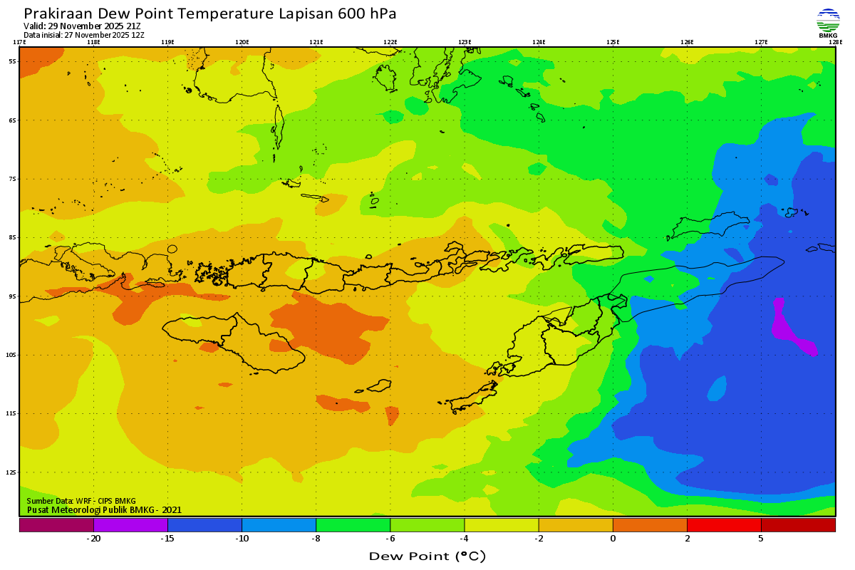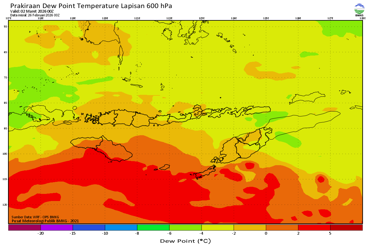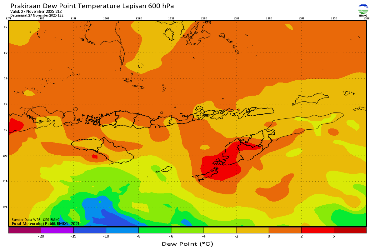 Prediksi Suhu Titik Embun 600 hPa NTT