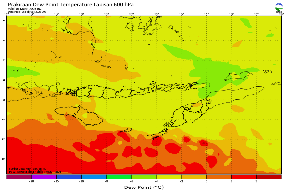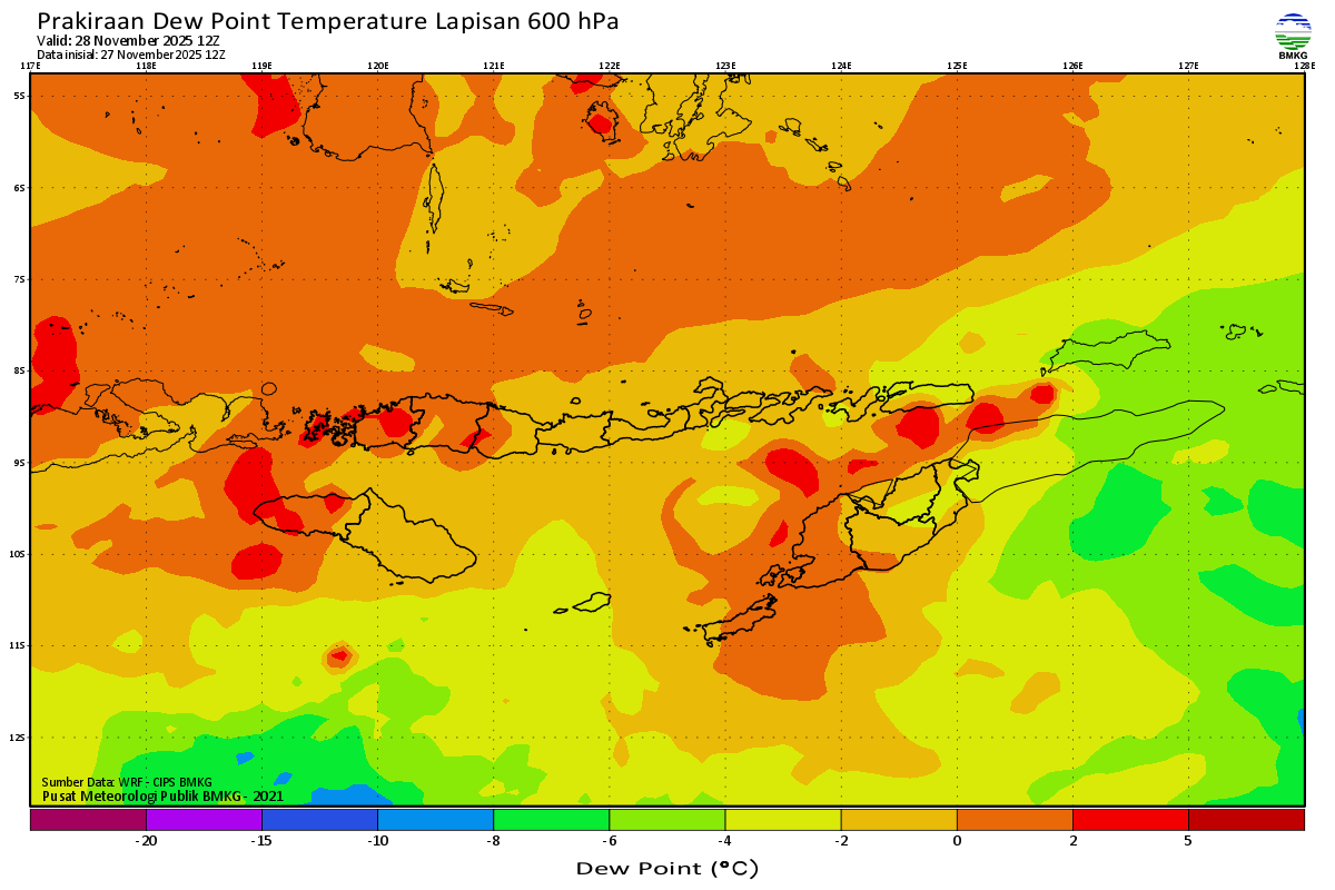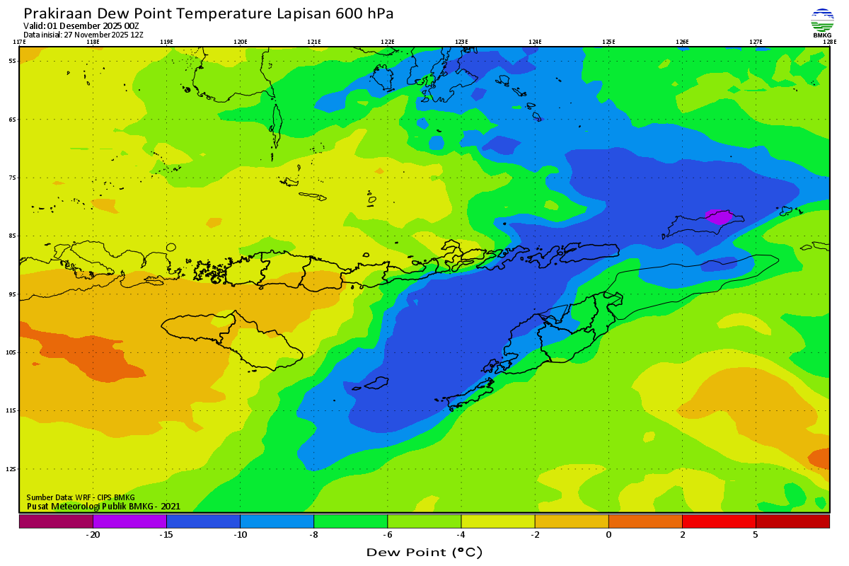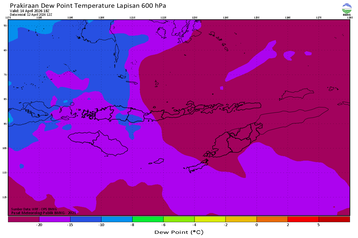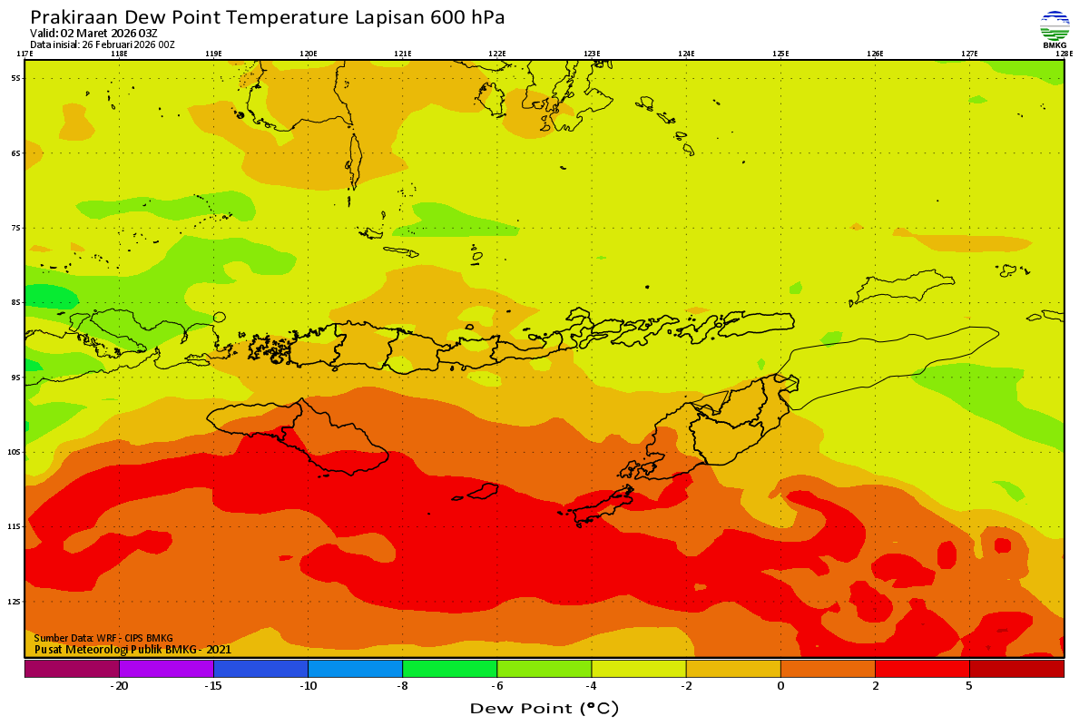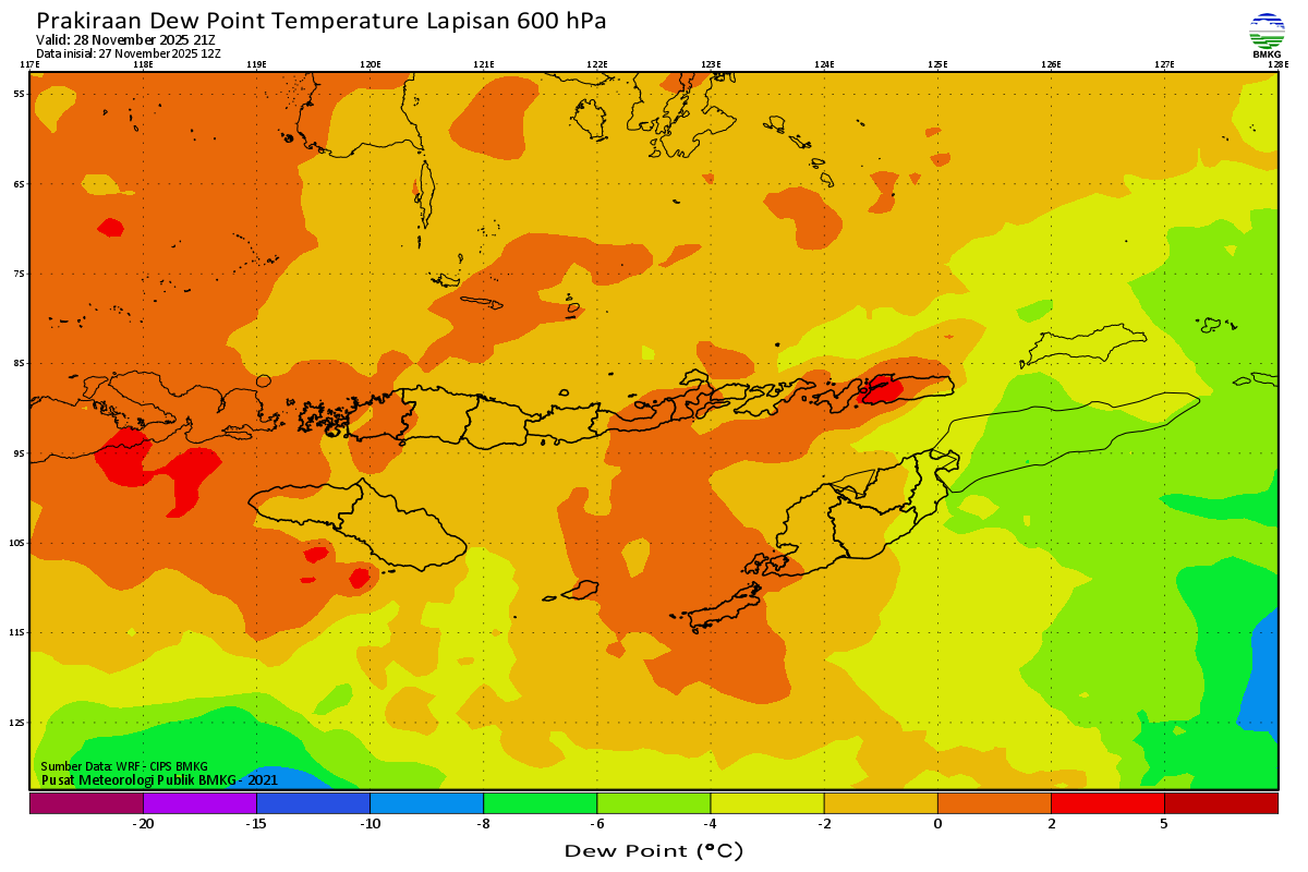 Prediksi Suhu Titik Embun 600 hPa NTT