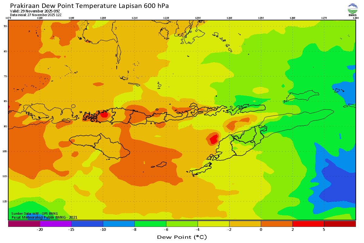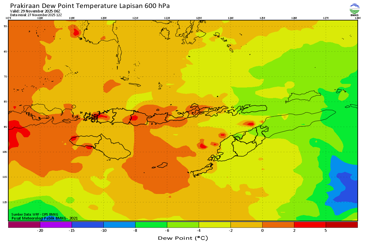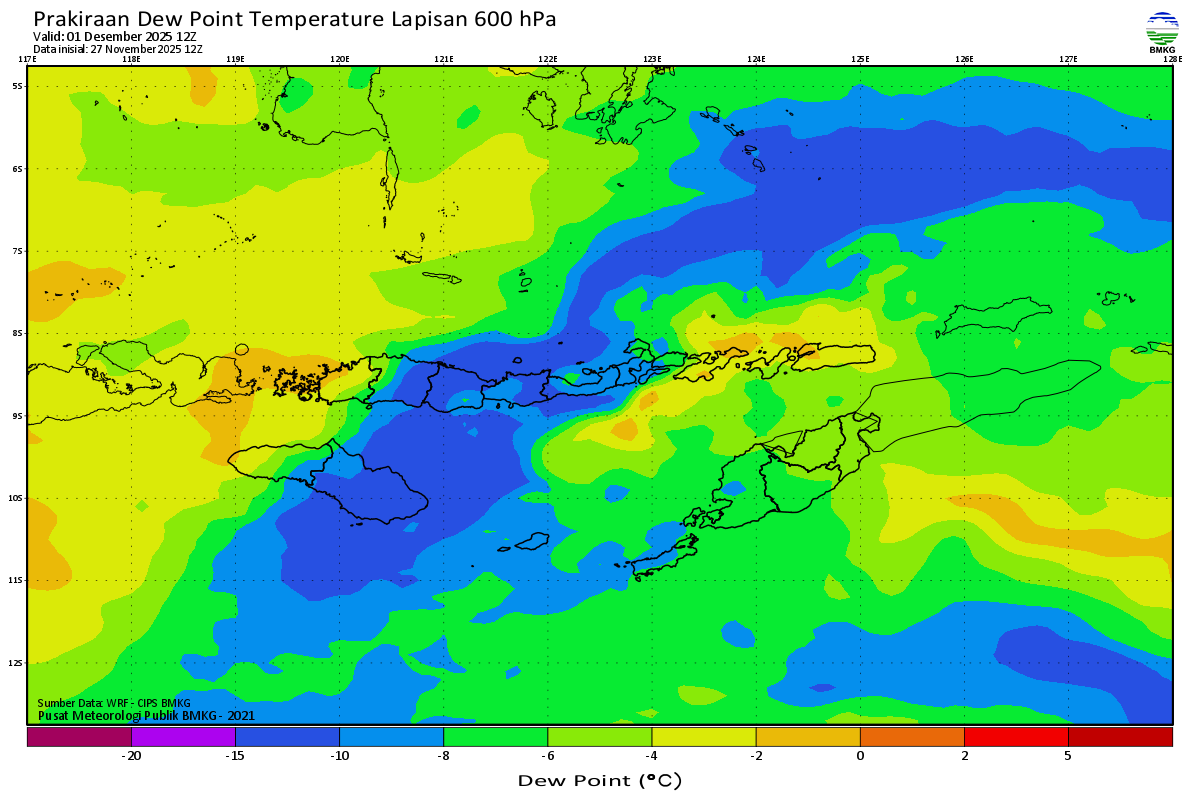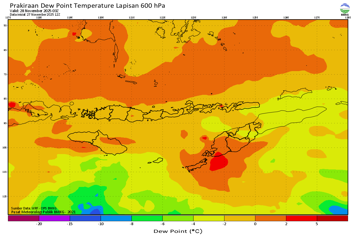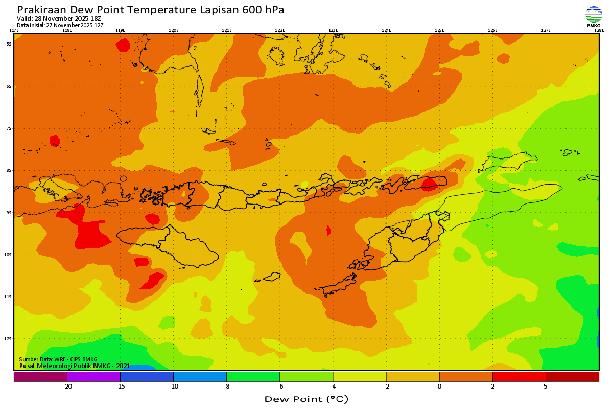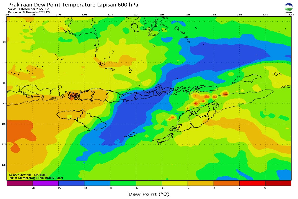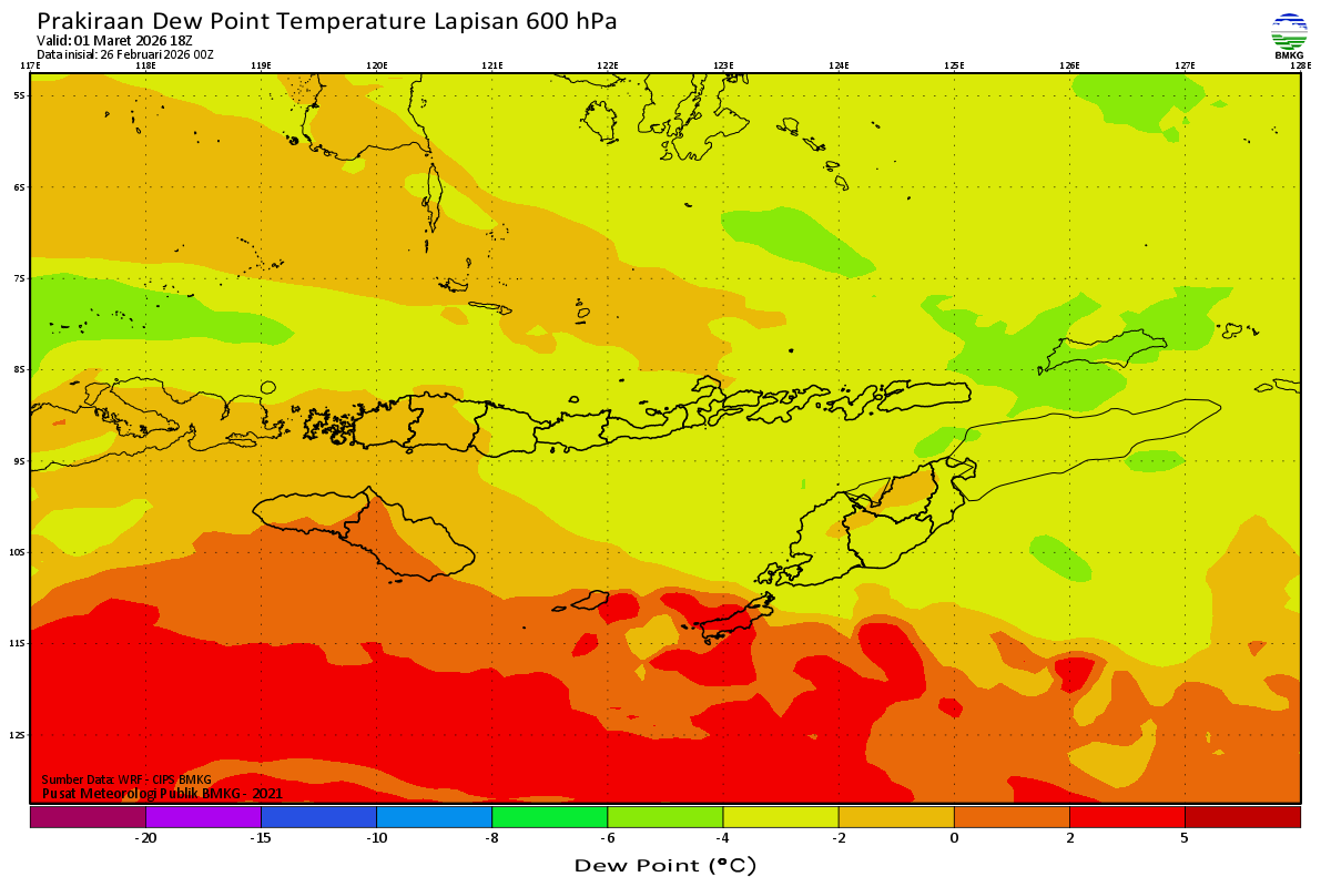 Prediksi Suhu Titik Embun 600 hPa NTT